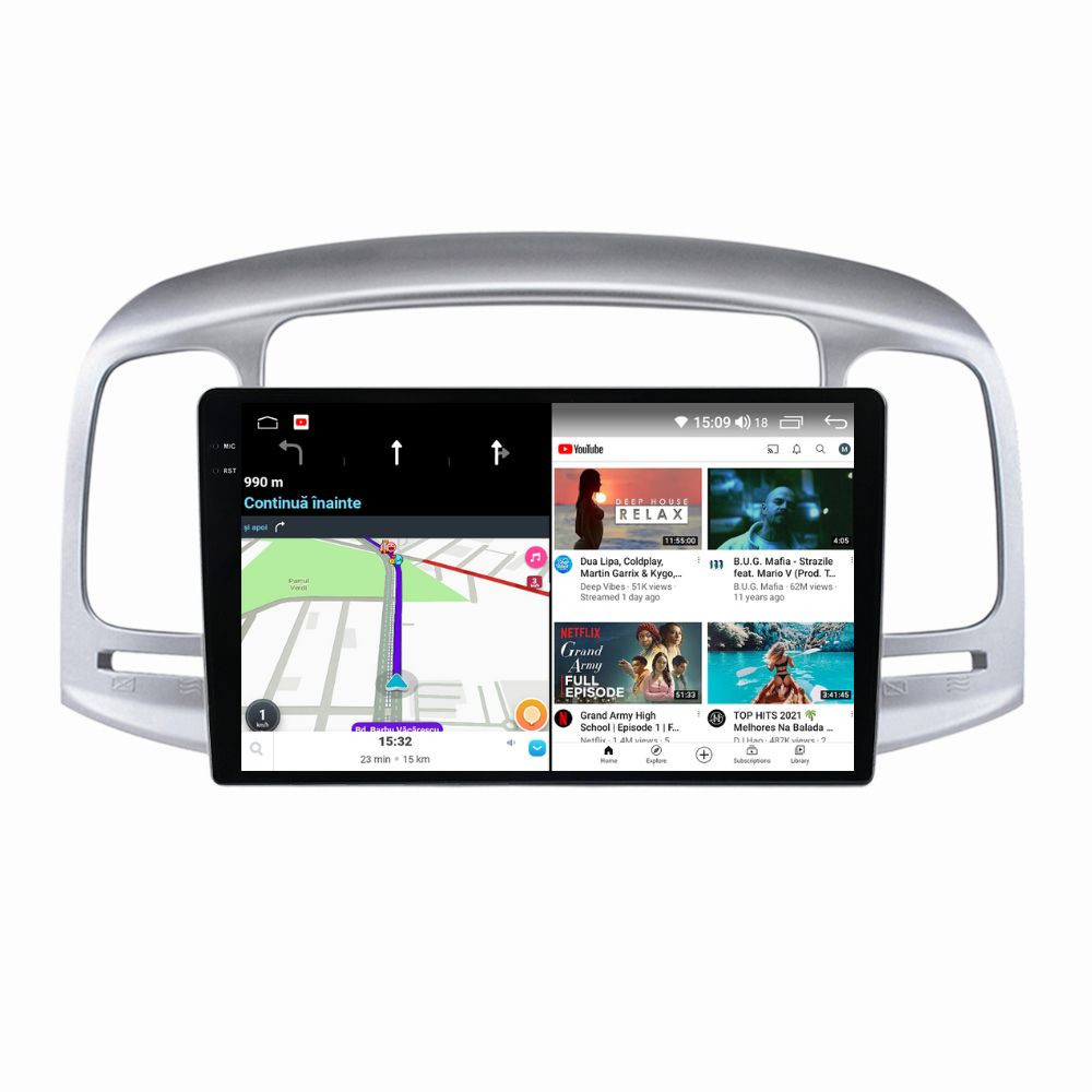 Navigatie dedicata cu Android Hyundai Accent III 2005 - 2010, 12GB RAM, Radio GPS Dual Zone, Display 2K QLED 9.5 Touchscreen, Internet Wi-Fi si slot SIM 4G, Bluetooth, MirrorLink, USB, Waze