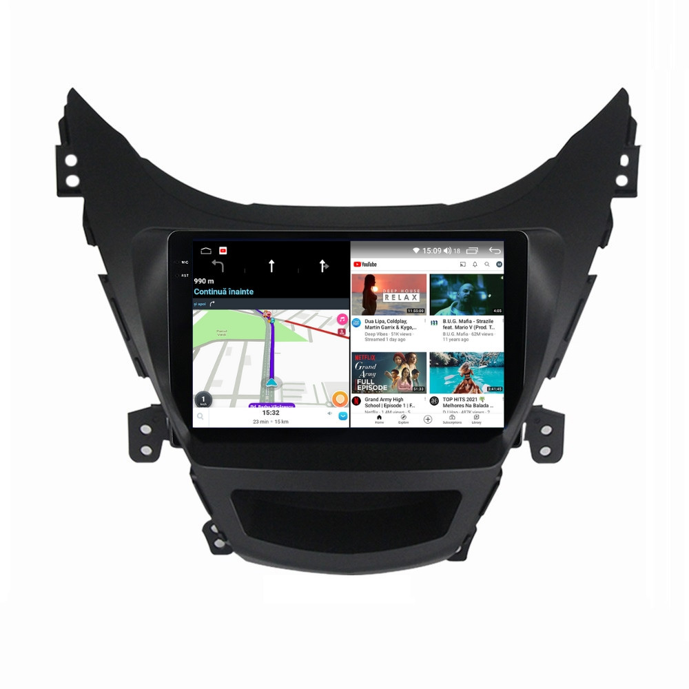 Navigatie dedicata cu Android Hyundai Elantra V 2010 - 2014, 8GB RAM, Radio GPS Dual Zone, Display 2K QLED 9.5 Touchscreen, Internet Wi-Fi si slot SIM 4G, Bluetooth, MirrorLink, USB, Waze