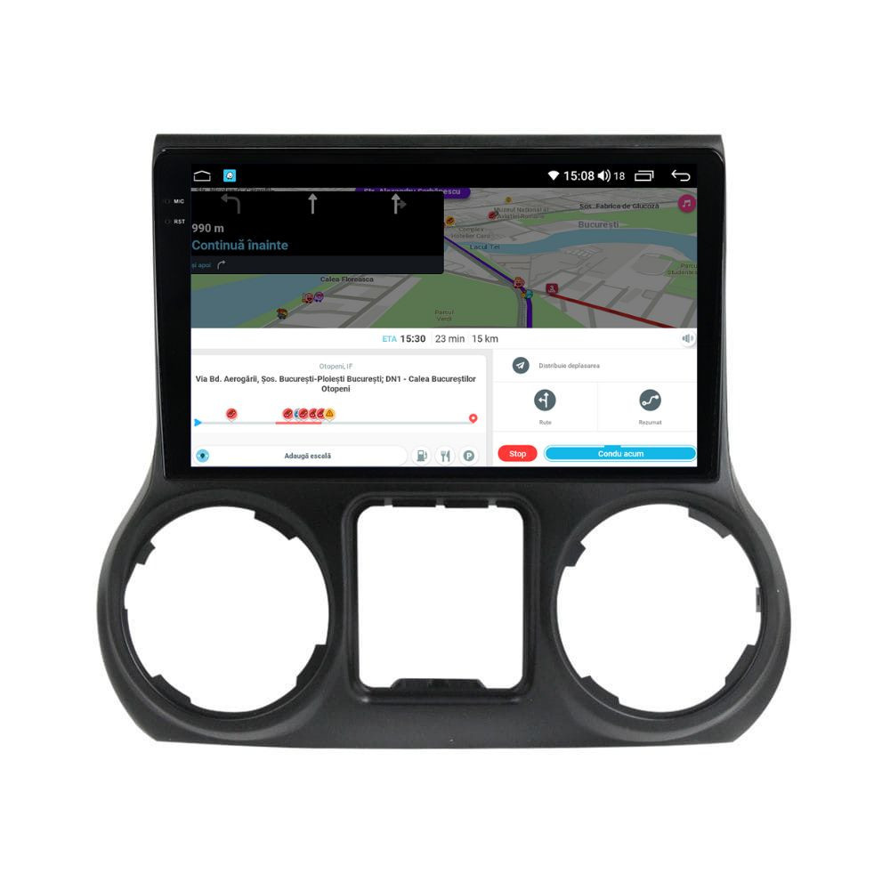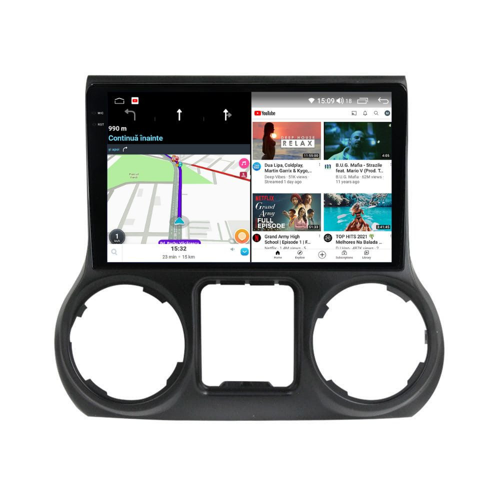 Navigatie dedicata cu Android Jeep Wrangler III (JK) 2015 - 2018, 4GB RAM, Radio GPS Dual Zone, Display 2K QLED 10.36 Touchscreen, Internet Wi-Fi si slot SIM 4G, Bluetooth, MirrorLink, USB, Waze