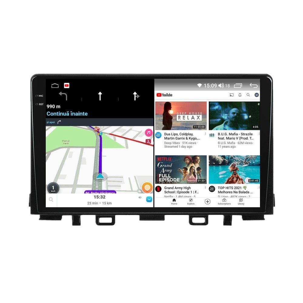 Sistem de operare: Car Android 14 cu meniu în peste 60 de limbi (inclusiv limba română) Procesor: Octa Core UIS7862S 2GHz Memorie internă: 4GB RAM + 32GB stocare (extensibilă prin 3 sloturi USB de maxim 64GB) Display: Touchscreen 9.5 inch QLED 2K 2000x1200, multi-touch, format 16:9, cu margini curbate și tehnologie 2.5D Chipset GPS: Samsung Sirf Star IV cu 48 de canale (antenă GPS inclusă) Fast Boot: Navigația pornește instant în momentul în care se pune contactul Conectivitate: Slot SIM 4G, Wi-Fi Dual Band 2.4Ghz si 5Ghz, Bluetooth, 3 x USB, RCA, AUX Plug & Play: Mufă dedicată, navigaţia preia comenzile de pe volanul maşinii şi nu descarcă bateria acesteia Cooler răcire activă: Ventilatorul integrat menține o temperatură optimă, asigurând astfel navigației o durată de viaţă mai mare Control prin gesturi: Glisezi cu 2 degete în sus sau în jos pentru a modifica volumul sau în lateral pentru schimbarea melodiei Audio: 4 x 45W + ieşire subwoofer, egalizator și procesor de sunet DSP Radio: FM (87.5 - 108.0 Mhz) şi AM (522 - 1620 Khz) cu funcție RDS Dual Zone: Poţi asculta muzică şi folosi aplicaţia preferată de navigare (iGO, Waze, Maps etc.) în acelaşi timp PLUG & PLAY Navigația se potrivește perfect în bord, iar mufa este identică cu cea a maşinii. Nu ai nevoie de altă ramă şi nu trebuie să modifici instalaţia electrică. Comenzile de pe volan rămân funcţionale, iar navigaţia se va opri când iei contactul şi nu va descărca bateria maşinii. În pachet sunt incluse toate cablurile necesare montării navigaţiei, precum şi cele auxiliare (RCA, USB etc.). UNIVERSUL ANDROID ÎN CONFORTUL MAŞINII TALE Aplicaţiile preferate vin acum pe ecranul navigaţiei tale. Poţi instala orice aplicaţie din magazinul Google Play: Waze, Google Maps, YouTube, Spotify, Google Chrome, Instagram, Facebook, WhatsApp etc. Fără a mai avea nevoie de telefon, te poţi strecura prin traficul aglomerat folosind Waze sau Google Maps şi în acelaşi timp poţi asculta muzica preferată sau viziona filmele și videoclipurile favorite pe YouTube, Spotify, Apple Music etc. GPS DUAL ZONE Navigaţia dispune de un modul şi o antenă GPS de calitate superioară, care te localizează cu precizie şi te ajută să ajungi la destinaţie în cel mai scurt timp, fără a avea nevoie de telefon. Dual zone: Poţi asculta muzică în timp ce foloseşti aplicaţia preferată de navigare, vocea aplicaţiei suprapunându-se, atunci când este cazul, peste muzică. COMPATIBILĂ CU ORICE TELEFON Deşi navigaţia dispune de propriul sistem de operare Android care funcţionează independent de telefon, la aceasta se poate conecta orice telefon cu Android sau iPhone prin Bluetooth sau Wi-Fi. Poţi folosi cu uşurinţă aplicațiile instalate pe telefon prin intermediul Android Auto sau Apple CarPlay şi primeşti toate notificările de pe telefon pe ecranul navigaţiei. SLOT SIM 4G, BLUETOOTH, WI-FI ŞI MIRRORLINK INTEGRATE Spune adio amenzilor pentru folosirea telefonului la volan. Poţi descărca agenda telefonică pe navigaţie şi poţi iniţia şi prelua apeluri de pe ecranul navigaţiei, precum şi asculta muzica preferată de pe telefon. Navigaţia se conectează rapid la orice reţea wireless, inclusiv la hotspot-ul telefonului, precum și la internet 4G, introducând o cartelă cu internet în slotul SIM. Cu ajutorul tehnologiei MirrorLink poţi beneficia de funcțiile Android Auto sau Apple CarPlay. MULTIPLE INTERFEȚE DISPONIBILE Interfața navigației se poate schimba cu ușurință, aceasta având 4 teme preinstalate, astfel încat să se plieze pe stilul și gustul tau. De asemenea, o poți personaliza foarte ușor cu alte teme disponibile în aplicații de tip Car Launcher. Nu trebuie să ştii engleză pentru a putea folosi navigaţia. Poţi afişa meniul în peste 60 de limbi, inclusiv română, engleză, spaniolă sau franceză. SUPORT DVR, CAMERĂ MARȘARIER ȘI SENZORI PARCARE AFTERMARKET Niciodată nu a fost atât de simplu să parchezi. Când schimbătorul ajunge în marșarier, pe ecranul navigației se va afișa automat imaginea video din spatele mașinii, împreună cu liniile de ghidaj. Senzorii de parcare, fiind de asemenea afişaţi pe navigaţie, te vor avertiza atât vizual, cât şi acustic. Înregistrarea video realizată de camera de bord DVR te poate scăpa de amenzi sau alte situaţii neplăcute, fiind martorul tău de încredere în cazul producerii unui eveniment nedorit în trafic. SUPORT INTERFAȚĂ OBDII Un adaptor Bluetooth OBDII este de un real ajutor atunci când o eroare apare în bordul maşinii. Cu ajutorul lui poţi citi, interpreta sau șterge eventualele coduri de eroare şi îţi poţi da seama cu uşurinţă ce nu este în regulă cu maşina ta. În plus, poți afișa pe ecranul navigației informații în timp real despre starea mașinii cu ajutorul unor aplicații dedicate precum Torque sau Car Scanner. NAVIGAȚIE CU ANDROID - SISTEMUL COMPLET DE INFOTAINMENT DIN MAȘINA TA