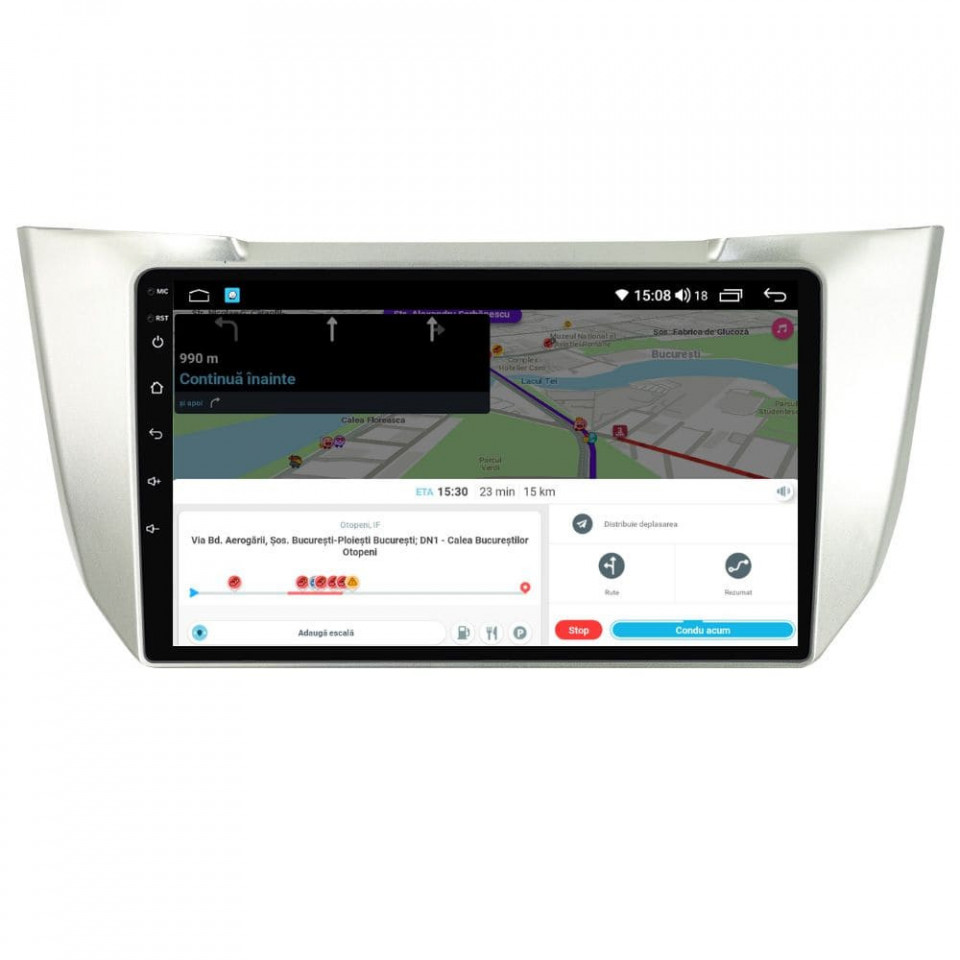 Navigatie dedicata cu Android Lexus RX 2003 - 2009, 4GB RAM, Radio GPS Dual Zone, Display HD QLED 9 Touchscreen, Internet Wi-Fi si slot SIM 4G, Bluetooth, MirrorLink, USB, Waze