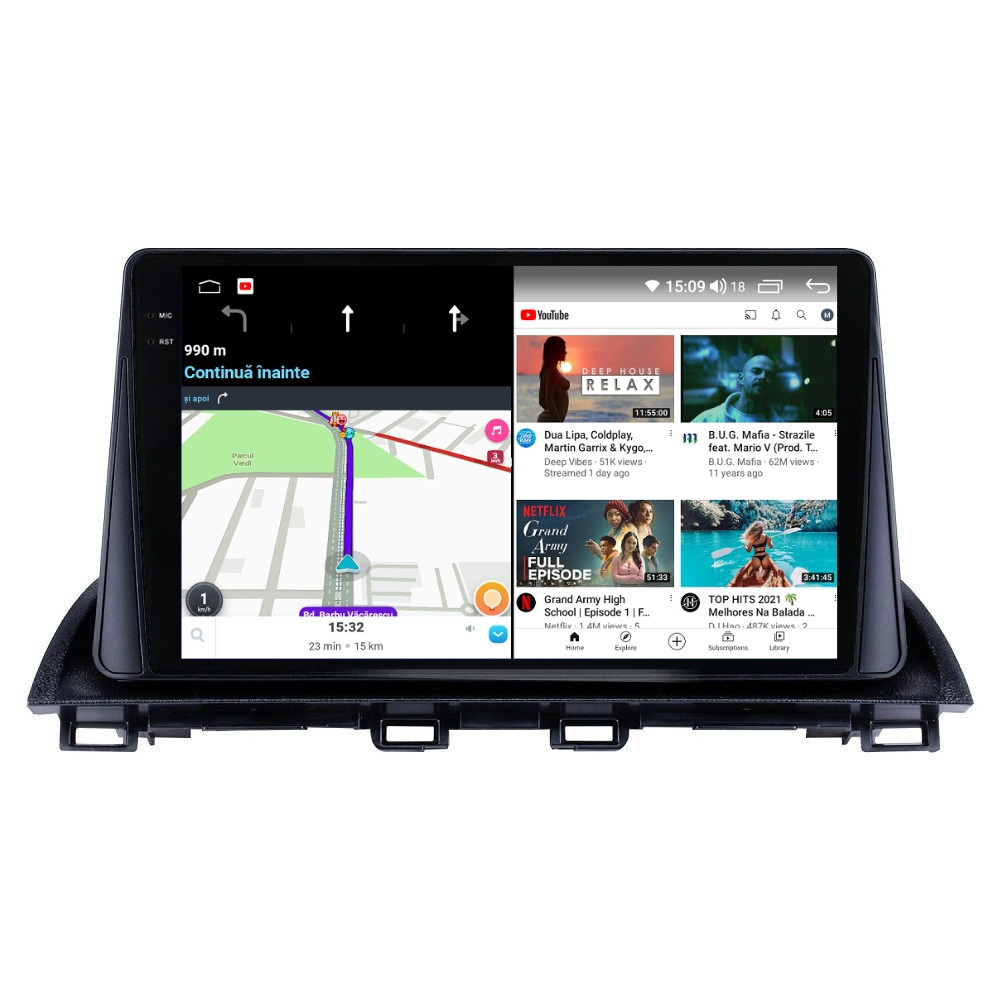 Sistem de operare: Car Android 14 cu meniu în peste 60 de limbi (inclusiv limba română) Procesor: Octa Core UIS7862S 2GHz Memorie internă: 4GB RAM + 32GB stocare (extensibilă prin 3 sloturi USB de maxim 64GB) Display: Touchscreen 9.5 inch QLED 2K 2000x1200, multi-touch, format 16:9, cu margini curbate și tehnologie 2.5D Chipset GPS: Samsung Sirf Star IV cu 48 de canale (antenă GPS inclusă) Fast Boot: Navigația pornește instant în momentul în care se pune contactul Conectivitate: Slot SIM 4G, Wi-Fi Dual Band 2.4Ghz si 5Ghz, Bluetooth, 3 x USB, RCA, AUX Plug & Play: Mufă dedicată, navigaţia preia comenzile de pe volanul maşinii şi nu descarcă bateria acesteia Cooler răcire activă: Ventilatorul integrat menține o temperatură optimă, asigurând astfel navigației o durată de viaţă mai mare Control prin gesturi: Glisezi cu 2 degete în sus sau în jos pentru a modifica volumul sau în lateral pentru schimbarea melodiei Audio: 4 x 45W + ieşire subwoofer, egalizator și procesor de sunet DSP Radio: FM (87.5 - 108.0 Mhz) şi AM (522 - 1620 Khz) cu funcție RDS Dual Zone: Poţi asculta muzică şi folosi aplicaţia preferată de navigare (iGO, Waze, Maps etc.) în acelaşi timp PLUG & PLAY Navigația se potrivește perfect în bord, iar mufa este identică cu cea a maşinii. Nu ai nevoie de altă ramă şi nu trebuie să modifici instalaţia electrică. Comenzile de pe volan rămân funcţionale, iar navigaţia se va opri când iei contactul şi nu va descărca bateria maşinii. În pachet sunt incluse toate cablurile necesare montării navigaţiei, precum şi cele auxiliare (RCA, USB etc.). UNIVERSUL ANDROID ÎN CONFORTUL MAŞINII TALE Aplicaţiile preferate vin acum pe ecranul navigaţiei tale. Poţi instala orice aplicaţie din magazinul Google Play: Waze, Google Maps, YouTube, Spotify, Google Chrome, Instagram, Facebook, WhatsApp etc. Fără a mai avea nevoie de telefon, te poţi strecura prin traficul aglomerat folosind Waze sau Google Maps şi în acelaşi timp poţi asculta muzica preferată sau viziona filmele și videoclipurile favorite pe YouTube, Spotify, Apple Music etc. GPS DUAL ZONE Navigaţia dispune de un modul şi o antenă GPS de calitate superioară, care te localizează cu precizie şi te ajută să ajungi la destinaţie în cel mai scurt timp, fără a avea nevoie de telefon. Dual zone: Poţi asculta muzică în timp ce foloseşti aplicaţia preferată de navigare, vocea aplicaţiei suprapunându-se, atunci când este cazul, peste muzică. COMPATIBILĂ CU ORICE TELEFON Deşi navigaţia dispune de propriul sistem de operare Android care funcţionează independent de telefon, la aceasta se poate conecta orice telefon cu Android sau iPhone prin Bluetooth sau Wi-Fi. Poţi folosi cu uşurinţă aplicațiile instalate pe telefon prin intermediul Android Auto sau Apple CarPlay şi primeşti toate notificările de pe telefon pe ecranul navigaţiei. SLOT SIM 4G, BLUETOOTH, WI-FI ŞI MIRRORLINK INTEGRATE Spune adio amenzilor pentru folosirea telefonului la volan. Poţi descărca agenda telefonică pe navigaţie şi poţi iniţia şi prelua apeluri de pe ecranul navigaţiei, precum şi asculta muzica preferată de pe telefon. Navigaţia se conectează rapid la orice reţea wireless, inclusiv la hotspot-ul telefonului, precum și la internet 4G, introducând o cartelă cu internet în slotul SIM. Cu ajutorul tehnologiei MirrorLink poţi beneficia de funcțiile Android Auto sau Apple CarPlay. MULTIPLE INTERFEȚE DISPONIBILE Interfața navigației se poate schimba cu ușurință, aceasta având 4 teme preinstalate, astfel încat să se plieze pe stilul și gustul tau. De asemenea, o poți personaliza foarte ușor cu alte teme disponibile în aplicații de tip Car Launcher. Nu trebuie să ştii engleză pentru a putea folosi navigaţia. Poţi afişa meniul în peste 60 de limbi, inclusiv română, engleză, spaniolă sau franceză. SUPORT DVR, CAMERĂ MARȘARIER ȘI SENZORI PARCARE AFTERMARKET Niciodată nu a fost atât de simplu să parchezi. Când schimbătorul ajunge în marșarier, pe ecranul navigației se va afișa automat imaginea video din spatele mașinii, împreună cu liniile de ghidaj. Senzorii de parcare, fiind de asemenea afişaţi pe navigaţie, te vor avertiza atât vizual, cât şi acustic. Înregistrarea video realizată de camera de bord DVR te poate scăpa de amenzi sau alte situaţii neplăcute, fiind martorul tău de încredere în cazul producerii unui eveniment nedorit în trafic. SUPORT INTERFAȚĂ OBDII Un adaptor Bluetooth OBDII este de un real ajutor atunci când o eroare apare în bordul maşinii. Cu ajutorul lui poţi citi, interpreta sau șterge eventualele coduri de eroare şi îţi poţi da seama cu uşurinţă ce nu este în regulă cu maşina ta. În plus, poți afișa pe ecranul navigației informații în timp real despre starea mașinii cu ajutorul unor aplicații dedicate precum Torque sau Car Scanner. NAVIGAȚIE CU ANDROID - SISTEMUL COMPLET DE INFOTAINMENT DIN MAȘINA TA