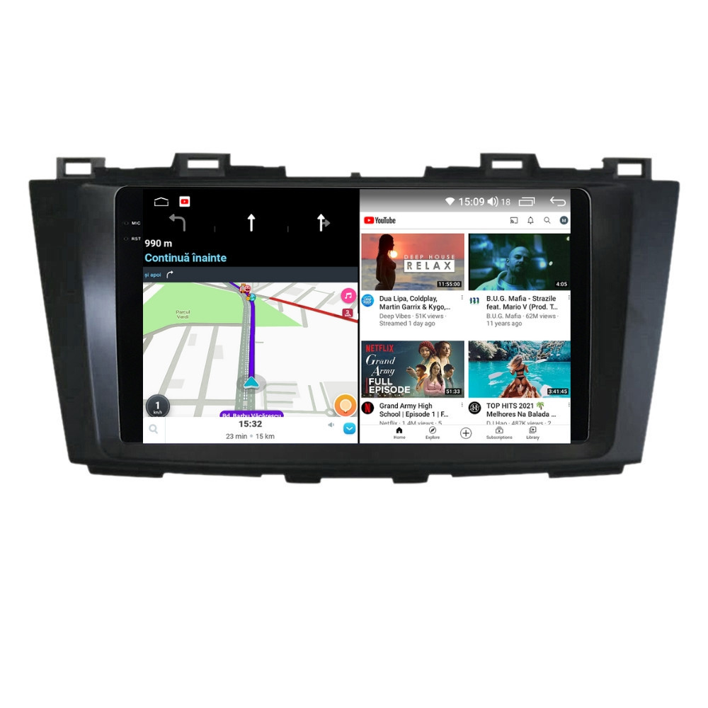 Sistem de operare: Car Android 14 cu meniu în peste 60 de limbi (inclusiv limba română) Procesor: Octa Core UIS7862S 2GHz Memorie internă: 4GB RAM + 32GB stocare (extensibilă prin 3 sloturi USB de maxim 64GB) Display: Touchscreen 9.5 inch QLED 2K 2000x1200, multi-touch, format 16:9, cu margini curbate și tehnologie 2.5D Chipset GPS: Samsung Sirf Star IV cu 48 de canale (antenă GPS inclusă) Fast Boot: Navigația pornește instant în momentul în care se pune contactul Conectivitate: Slot SIM 4G, Wi-Fi Dual Band 2.4Ghz si 5Ghz, Bluetooth, 3 x USB, RCA, AUX Plug & Play: Mufă dedicată, navigaţia preia comenzile de pe volanul maşinii şi nu descarcă bateria acesteia Cooler răcire activă: Ventilatorul integrat menține o temperatură optimă, asigurând astfel navigației o durată de viaţă mai mare Control prin gesturi: Glisezi cu 2 degete în sus sau în jos pentru a modifica volumul sau în lateral pentru schimbarea melodiei Audio: 4 x 45W + ieşire subwoofer, egalizator și procesor de sunet DSP Radio: FM (87.5 - 108.0 Mhz) şi AM (522 - 1620 Khz) cu funcție RDS Dual Zone: Poţi asculta muzică şi folosi aplicaţia preferată de navigare (iGO, Waze, Maps etc.) în acelaşi timp PLUG & PLAY Navigația se potrivește perfect în bord, iar mufa de alimentare este identică cu cea a maşinii. Nu ai nevoie de ramă adaptoare şi nici nu trebuie să modifici instalaţia electrică. Comenzile de pe volan rămân funcţionale, iar navigaţia se va opri când iei contactul şi nu va descărca bateria maşinii. În pachet sunt incluse toate cablurile necesare montării navigaţiei, precum şi cele auxiliare (RCA, USB etc.). UNIVERSUL ANDROID ÎN CONFORTUL MAŞINII TALE Aplicaţiile preferate vin acum pe ecranul navigaţiei tale. Poţi instala orice aplicaţie din magazinul Google Play: Waze, Google Maps, YouTube, Spotify, Google Chrome, Instagram, Facebook, WhatsApp etc. Fără a mai avea nevoie de telefon, te poţi strecura prin traficul aglomerat folosind Waze sau Google Maps şi în acelaşi timp poţi asculta muzica preferată sau viziona filmele și videoclipurile favorite pe YouTube, Spotify, Apple Music etc. GPS DUAL ZONE Navigaţia dispune de un modul şi o antenă GPS de calitate superioară, care te localizează cu precizie şi te ajută să ajungi la destinaţie în cel mai scurt timp, fără a avea nevoie de telefon. Dual zone: Poţi asculta muzică în timp ce foloseşti aplicaţia preferată de navigare, vocea aplicaţiei suprapunându-se, atunci când este cazul, peste muzică. COMPATIBILĂ CU ORICE TELEFON Deşi navigaţia dispune de propriul sistem de operare Android care funcţionează independent de telefon, la aceasta se poate conecta orice telefon cu Android sau iPhone prin Bluetooth sau Wi-Fi. Poţi folosi cu uşurinţă aplicațiile instalate pe telefon prin intermediul Android Auto sau Apple CarPlay şi primeşti toate notificările de pe telefon pe ecranul navigaţiei. SLOT SIM 4G, BLUETOOTH, WI-FI ŞI MIRRORLINK INTEGRATE Spune adio amenzilor pentru folosirea telefonului la volan. Poţi descărca agenda telefonică pe navigaţie şi poţi iniţia şi prelua apeluri de pe ecranul navigaţiei, precum şi asculta muzica preferată de pe telefon. Navigaţia se conectează rapid la orice reţea wireless, inclusiv la hotspot-ul telefonului, precum și la internet 4G, introducând o cartelă cu internet în slotul SIM. Cu ajutorul tehnologiei MirrorLink poţi beneficia de funcțiile Android Auto sau Apple CarPlay. MULTIPLE INTERFEȚE DISPONIBILE Interfața navigației se poate schimba cu ușurință, aceasta având 4 teme preinstalate, astfel încat să se plieze pe stilul și gustul tau. De asemenea, o poți personaliza foarte ușor cu alte teme disponibile în aplicații de tip Car Launcher. Nu trebuie să ştii engleză pentru a putea folosi navigaţia. Poţi afişa meniul în peste 60 de limbi, inclusiv română, engleză, spaniolă sau franceză. SUPORT DVR, CAMERĂ MARȘARIER ȘI SENZORI PARCARE AFTERMARKET Niciodată nu a fost atât de simplu să parchezi. Când schimbătorul ajunge în marșarier, pe ecranul navigației se va afișa automat imaginea video din spatele mașinii, împreună cu liniile de ghidaj. Senzorii de parcare, fiind de asemenea afişaţi pe navigaţie, te vor avertiza atât vizual, cât şi acustic. Înregistrarea video realizată de camera de bord DVR te poate scăpa de amenzi sau alte situaţii neplăcute, fiind martorul tău de încredere în cazul producerii unui eveniment nedorit în trafic. SUPORT INTERFAȚĂ OBDII Un adaptor Bluetooth OBDII este de un real ajutor atunci când o eroare apare în bordul maşinii. Cu ajutorul lui poţi citi, interpreta sau șterge eventualele coduri de eroare şi îţi poţi da seama cu uşurinţă ce nu este în regulă cu maşina ta. În plus, poți afișa pe ecranul navigației informații în timp real despre starea mașinii cu ajutorul unor aplicații dedicate precum Torque sau Car Scanner. NAVIGAȚIE CU ANDROID - SISTEMUL COMPLET DE INFOTAINMENT DIN MAȘINA TA