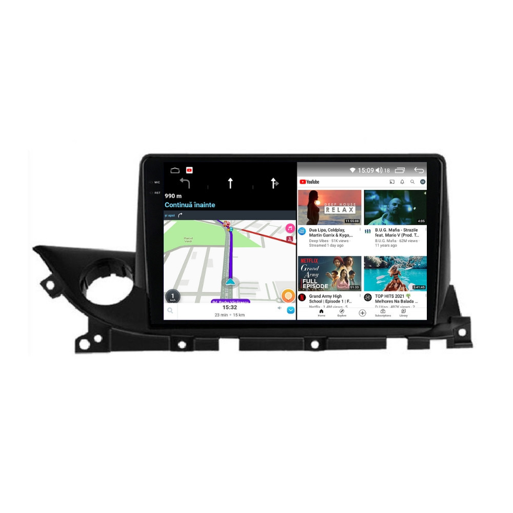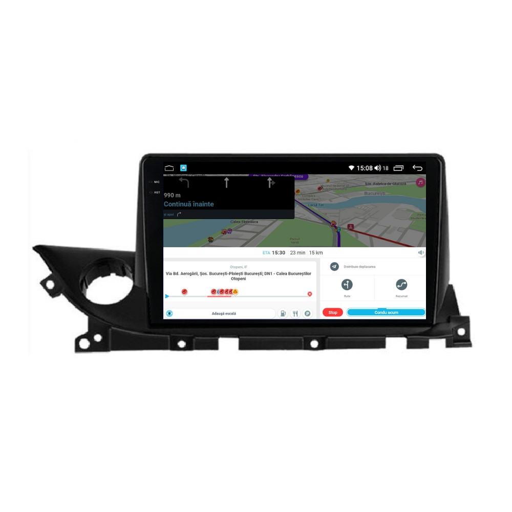 Navigatie dedicata cu Android Mazda 6 dupa 2018, 8GB RAM, Radio GPS Dual Zone, Display 2K QLED 9.5 Touchscreen, Internet Wi-Fi si slot SIM 4G, Bluetooth, MirrorLink, USB, Waze