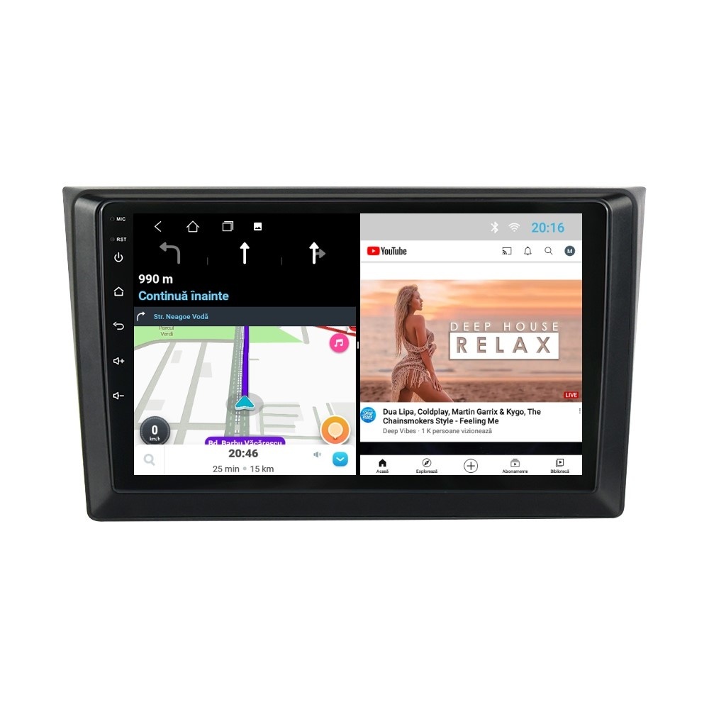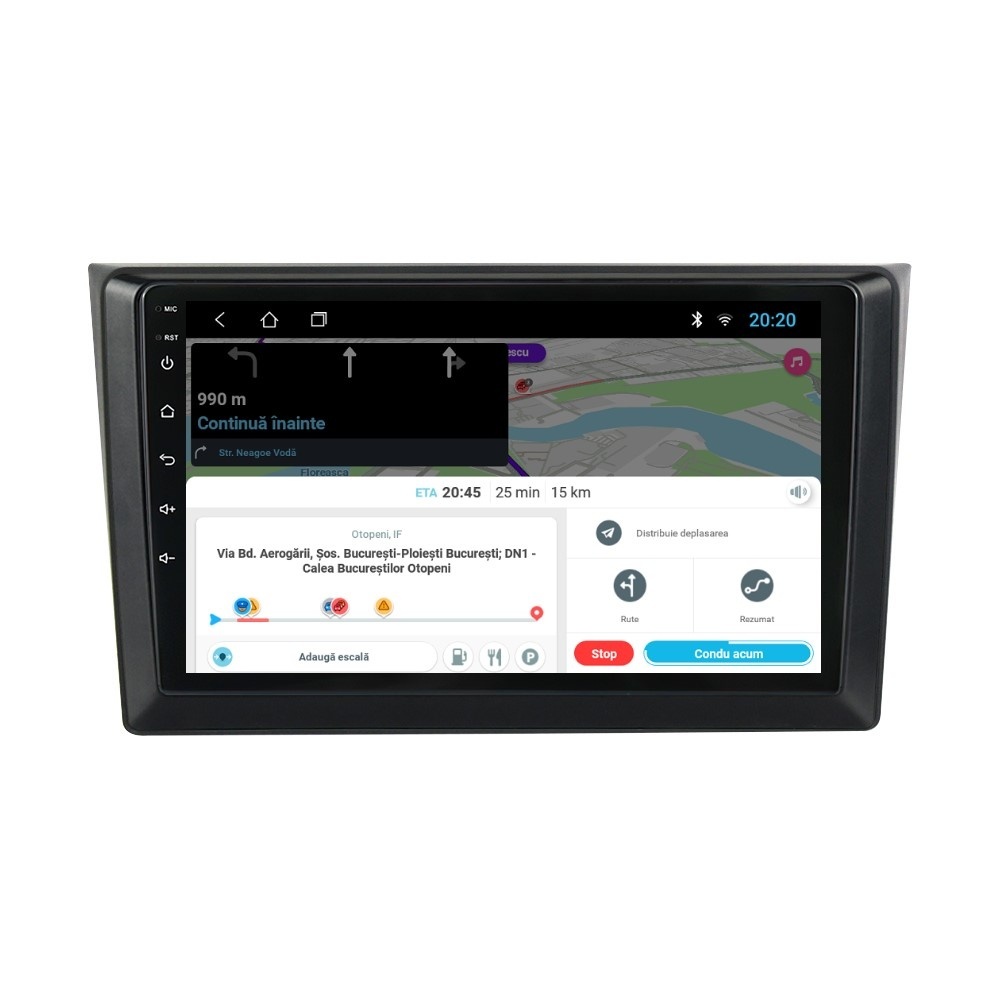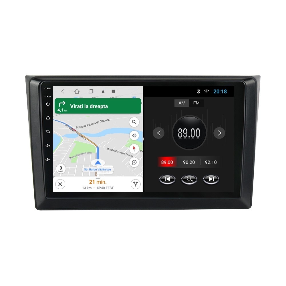 Sistem de operare: Car Android 14 cu meniu în peste 60 de limbi (inclusiv limba română) Procesor: Quad Core ARM Cortex-A7 1.3Ghz Memorie internă: 1GB RAM + 32GB stocare (extensibilă prin 2 sloturi USB de maxim 64GB) Display: Touchscreen 10 inch IPS HD 1280x720, multi-touch, format 16:9, cu margini curbate și tehnologie 2.5D Chipset GPS: Samsung Sirf Star IV cu 48 de canale (antenă GPS inclusă) Conectivitate: Wi-Fi, Bluetooth, 2 x USB, RCA, AUX Plug & Play: Mufă dedicată, navigaţia preia comenzile de pe volanul maşinii şi nu descarcă bateria acesteia Cooler răcire activă: Ventilatorul integrat menține o temperatură optimă, asigurând astfel navigației o durată de viaţă mai mare Audio: 4 x 45W + ieşire subwoofer Radio: FM 87.5 - 108.0 Mhz Dual Zone: Poţi asculta muzică şi folosi aplicaţia preferată de navigare (iGO, Waze, Maps etc.) în acelaşi timp PLUG & PLAY Navigația se potrivește perfect în bord, iar mufa este identică cu cea a maşinii. Nu ai nevoie de altă ramă şi nu trebuie să modifici instalaţia electrică. Comenzile de pe volan rămân funcţionale, iar navigaţia se va opri când iei contactul şi nu va descărca bateria maşinii. În pachet sunt incluse toate cablurile necesare montării navigaţiei, precum şi cele auxiliare (RCA, USB etc.). UNIVERSUL ANDROID ÎN CONFORTUL MAŞINII TALE Aplicaţiile preferate vin acum pe ecranul navigaţiei tale. Poţi instala orice aplicaţie din magazinul Google Play: Waze, Google Maps, YouTube, Spotify, Google Chrome, Instagram, Facebook, WhatsApp etc. Fără a mai avea nevoie de telefon, te poţi strecura prin traficul aglomerat folosind Waze sau Google Maps şi în acelaşi timp poţi asculta muzica preferată sau viziona filmele și videoclipurile favorite pe YouTube, Spotify, Apple Music etc. GPS DUAL ZONE Navigaţia dispune de un modul şi o antenă GPS de calitate superioară, care te localizează cu precizie şi te ajută să ajungi la destinaţie în cel mai scurt timp, fără a avea nevoie de telefon. Dual zone: Poţi asculta muzică în timp ce foloseşti aplicaţia preferată de navigare, vocea aplicaţiei suprapunându-se, atunci când este cazul, peste muzică. COMPATIBILĂ CU ORICE TELEFON Deşi navigaţia dispune de propriul sistem de operare Android care funcţionează independent de telefon, la aceasta se poate conecta orice telefon cu Android sau iPhone prin Bluetooth sau Wi-Fi. Poţi folosi cu uşurinţă orice aplicaţie instalată pe telefon fără a o instala şi pe navigaţie şi primeşti toate notificările de pe telefon direct pe ecranul navigaţiei. BLUETOOTH, WI-FI ŞI MIRRORLINK INTEGRATE Spune adio amenzilor pentru folosirea telefonului la volan. Poţi descărca contactele din telefon pe navigaţie şi poţi iniţia şi prelua apeluri direct de pe ecranul navigaţiei, precum şi asculta muzica preferată de pe telefon. Navigaţia se conectează rapid la orice reţea wireless, inclusiv la hotspot-ul telefonului, iar cu ajutorul tehnologiei MirrorLink poţi oglindi imaginea telefonului pe navigaţie. MULTIPLE INTERFEȚE DISPONIBILE Interfața navigației se poate schimba cu ușurință, aceasta având 4 teme preinstalate, astfel încat să se plieze pe stilul și gustul tau. De asemenea, o poți personaliza foarte ușor cu alte teme disponibile în aplicații de tip Car Launcher. Nu trebuie să ştii engleză pentru a putea folosi navigaţia. Poţi afişa meniul în peste 60 de limbi, inclusiv română, engleză, spaniolă sau franceză. SUPORT DVR, CAMERĂ MARȘARIER ȘI SENZORI PARCARE AFTERMARKET Niciodată nu a fost atât de simplu să parchezi. Când schimbătorul ajunge în marșarier, pe ecranul navigației se va afișa automat imaginea video din spatele mașinii, împreună cu liniile de ghidaj. Senzorii de parcare, fiind de asemenea afişaţi pe navigaţie, te vor avertiza atât vizual, cât şi acustic. Înregistrarea video realizată de camera de bord DVR te poate scăpa de amenzi sau alte situaţii neplăcute, fiind martorul tău de încredere în cazul producerii unui eveniment nedorit în trafic. SUPORT INTERFAȚĂ OBDII Un adaptor Bluetooth OBDII este de un real ajutor atunci când o eroare apare în bordul maşinii. Cu ajutorul lui poţi citi, interpreta sau șterge eventualele coduri de eroare şi îţi poţi da seama cu uşurinţă ce nu este în regulă cu maşina ta. În plus, poți afișa pe ecranul navigației informații în timp real despre starea mașinii cu ajutorul unor aplicații dedicate precum Torque sau Car Scanner. NAVIGAȚIE CU ANDROID - SISTEMUL COMPLET DE INFOTAINMENT DIN MAȘINA TA