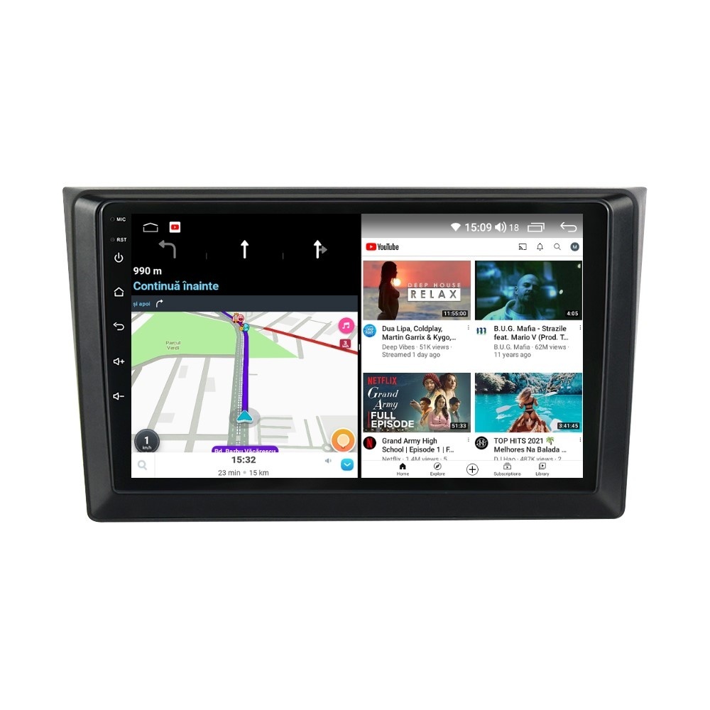 Sistem de operare: Car Android 14 cu meniu în peste 60 de limbi (inclusiv limba română) Procesor: Octa Core ARM Cortex A55 1.6GHz Memorie internă: 2GB RAM + 32GB stocare (extensibilă prin 2 sloturi USB de maxim 64GB) Display: Touchscreen 10 inch QLED HD 1280x720, multi-touch, format 16:9, cu margini curbate și tehnologie 2.5D Chipset GPS: Samsung Sirf Star IV cu 48 de canale (antenă GPS inclusă) Fast Boot: Navigația pornește instant în momentul în care se pune contactul Conectivitate: Slot SIM 4G, Wi-Fi, Bluetooth, 2 x USB, RCA, AUX Plug & Play: Mufă dedicată, navigaţia preia comenzile de pe volanul maşinii şi nu descarcă bateria acesteia Cooler răcire activă: Ventilatorul integrat menține o temperatură optimă, asigurând astfel navigației o durată de viaţă mai mare Audio: 4 x 45W + ieşire subwoofer, egalizator și procesor de sunet DSP Radio: FM (87.5 - 108.0 Mhz) şi AM (522 - 1620 Khz) cu funcție RDS Dual Zone: Poţi asculta muzică şi folosi aplicaţia preferată de navigare (iGO, Waze, Maps etc.) în acelaşi timp PLUG & PLAY Navigația se potrivește perfect în bord, iar mufa este identică cu cea a maşinii. Nu ai nevoie de altă ramă şi nu trebuie să modifici instalaţia electrică. Comenzile de pe volan rămân funcţionale, iar navigaţia se va opri când iei contactul şi nu va descărca bateria maşinii. În pachet sunt incluse toate cablurile necesare montării navigaţiei, precum şi cele auxiliare (RCA, USB etc.). UNIVERSUL ANDROID ÎN CONFORTUL MAŞINII TALE Aplicaţiile preferate vin acum pe ecranul navigaţiei tale. Poţi instala orice aplicaţie din magazinul Google Play: Waze, Google Maps, YouTube, Spotify, Google Chrome, Instagram, Facebook, WhatsApp etc. Fără a mai avea nevoie de telefon, te poţi strecura prin traficul aglomerat folosind Waze sau Google Maps şi în acelaşi timp poţi asculta muzica preferată sau viziona filmele și videoclipurile favorite pe YouTube, Spotify, Apple Music etc. GPS DUAL ZONE Navigaţia dispune de un modul şi o antenă GPS de calitate superioară, care te localizează cu precizie şi te ajută să ajungi la destinaţie în cel mai scurt timp, fără a avea nevoie de telefon. Dual zone: Poţi asculta muzică în timp ce foloseşti aplicaţia preferată de navigare, vocea aplicaţiei suprapunându-se, atunci când este cazul, peste muzică. COMPATIBILĂ CU ORICE TELEFON Deşi navigaţia dispune de propriul sistem de operare Android care funcţionează independent de telefon, la aceasta se poate conecta orice telefon cu Android sau iPhone prin Bluetooth sau Wi-Fi. Poţi folosi cu uşurinţă aplicațiile instalate pe telefon prin intermediul Android Auto sau Apple CarPlay şi primeşti toate notificările de pe telefon pe ecranul navigaţiei. SLOT SIM 4G, BLUETOOTH, WI-FI ŞI MIRRORLINK INTEGRATE Spune adio amenzilor pentru folosirea telefonului la volan. Poţi descărca agenda telefonică pe navigaţie şi poţi iniţia şi prelua apeluri de pe ecranul navigaţiei, precum şi asculta muzica preferată de pe telefon. Navigaţia se conectează rapid la orice reţea wireless, inclusiv la hotspot-ul telefonului, precum și la internet 4G, introducând o cartelă cu internet în slotul SIM. Cu ajutorul tehnologiei MirrorLink poţi beneficia de funcțiile Android Auto sau Apple CarPlay. MULTIPLE INTERFEȚE DISPONIBILE Interfața navigației se poate schimba cu ușurință, aceasta având 4 teme preinstalate, astfel încat să se plieze pe stilul și gustul tau. De asemenea, o poți personaliza foarte ușor cu alte teme disponibile în aplicații de tip Car Launcher. Nu trebuie să ştii engleză pentru a putea folosi navigaţia. Poţi afişa meniul în peste 60 de limbi, inclusiv română, engleză, spaniolă sau franceză. SUPORT DVR, CAMERĂ MARȘARIER ȘI SENZORI PARCARE AFTERMARKET Niciodată nu a fost atât de simplu să parchezi. Când schimbătorul ajunge în marșarier, pe ecranul navigației se va afișa automat imaginea video din spatele mașinii, împreună cu liniile de ghidaj. Senzorii de parcare, fiind de asemenea afişaţi pe navigaţie, te vor avertiza atât vizual, cât şi acustic. Înregistrarea video realizată de camera de bord DVR te poate scăpa de amenzi sau alte situaţii neplăcute, fiind martorul tău de încredere în cazul producerii unui eveniment nedorit în trafic. SUPORT INTERFAȚĂ OBDII Un adaptor Bluetooth OBDII este de un real ajutor atunci când o eroare apare în bordul maşinii. Cu ajutorul lui poţi citi, interpreta sau șterge eventualele coduri de eroare şi îţi poţi da seama cu uşurinţă ce nu este în regulă cu maşina ta. În plus, poți afișa pe ecranul navigației informații în timp real despre starea mașinii cu ajutorul unor aplicații dedicate precum Torque sau Car Scanner. NAVIGAȚIE CU ANDROID - SISTEMUL COMPLET DE INFOTAINMENT DIN MAȘINA TA