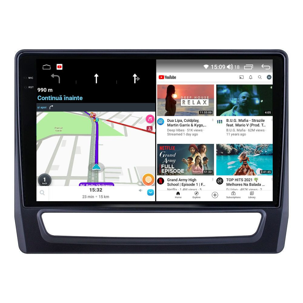 Sistem de operare: Car Android 13 cu meniu în peste 60 de limbi (inclusiv limba română) Procesor: Octa Core UIS7870S 2.7Ghz Memorie internă: 12GB RAM + 256GB stocare (extensibilă prin 3 sloturi USB de maxim 64GB) Display: Touchscreen 10.36 inch QLED 2K 2000x1200, multi-touch, format 16:9, cu margini curbate și tehnologie 2.5D Chipset GPS: Samsung Sirf Star IV cu 48 de canale (antenă GPS inclusă) Fast Boot: Navigația pornește instant în momentul în care se pune contactul Conectivitate: Slot SIM 4G, Wi-Fi Dual Band 2.4Ghz si 5Ghz, Bluetooth, 3 x USB, RCA, AUX Plug & Play: Mufă dedicată, navigaţia preia comenzile de pe volanul maşinii şi nu descarcă bateria acesteia Cooler răcire activă: Ventilatorul integrat menține o temperatură optimă, asigurând astfel navigației o durată de viaţă mai mare Control prin gesturi: Glisezi cu 2 degete în sus sau în jos pentru a modifica volumul sau în lateral pentru schimbarea melodiei Asistent virtual: Poţi controla cu ușurință navigația prin comenzi vocale cu ajutorul asistentului virtual integrat Audio: 4 x 45W + ieşire subwoofer, DTS 4.1 & 5.1, egalizator și procesor de sunet DSP Radio: FM (87.5 - 108.0 Mhz) şi AM (522 - 1620 Khz) cu funcție RDS Dual Zone: Poţi asculta muzică şi folosi aplicaţia preferată de navigare (iGO, Waze, Maps etc.) în acelaşi timp PLUG & PLAY Navigația se potrivește perfect în bord, iar mufa este identică cu cea a maşinii. Nu ai nevoie de altă ramă şi nu trebuie să modifici instalaţia electrică. Comenzile de pe volan rămân funcţionale, iar navigaţia se va opri când iei contactul şi nu va descărca bateria maşinii. În pachet sunt incluse toate cablurile necesare montării navigaţiei, precum şi cele auxiliare (RCA, USB etc.). UNIVERSUL ANDROID ÎN CONFORTUL MAŞINII TALE Aplicaţiile preferate vin acum pe ecranul navigaţiei tale. Poţi instala orice aplicaţie din magazinul Google Play: Waze, Google Maps, YouTube, Spotify, Google Chrome, Instagram, Facebook, WhatsApp etc. Fără a mai avea nevoie de telefon, te poţi strecura prin traficul aglomerat folosind Waze sau Google Maps şi în acelaşi timp poţi asculta muzica preferată sau viziona filmele și videoclipurile favorite pe YouTube, Spotify, Apple Music etc. GPS DUAL ZONE Navigaţia dispune de un modul şi o antenă GPS de calitate superioară, care te localizează cu precizie şi te ajută să ajungi la destinaţie în cel mai scurt timp, fără a avea nevoie de telefon. Dual zone: Poţi asculta muzică în timp ce foloseşti aplicaţia preferată de navigare, vocea aplicaţiei suprapunându-se, atunci când este cazul, peste muzică. COMPATIBILĂ CU ORICE TELEFON Deşi navigaţia dispune de propriul sistem de operare Android care funcţionează independent de telefon, la aceasta se poate conecta orice telefon cu Android sau iPhone prin Bluetooth sau Wi-Fi. Poţi folosi cu uşurinţă aplicațiile instalate pe telefon prin intermediul Android Auto sau Apple CarPlay şi primeşti toate notificările de pe telefon pe ecranul navigaţiei. SLOT SIM 4G, BLUETOOTH, WI-FI ŞI MIRRORLINK INTEGRATE Spune adio amenzilor pentru folosirea telefonului la volan. Poţi descărca agenda telefonică pe navigaţie şi poţi iniţia şi prelua apeluri de pe ecranul navigaţiei, precum şi asculta muzica preferată de pe telefon. Navigaţia se conectează rapid la orice reţea wireless, inclusiv la hotspot-ul telefonului, precum și la internet 4G, introducând o cartelă cu internet în slotul SIM. Cu ajutorul tehnologiei MirrorLink poţi beneficia de funcțiile Android Auto sau Apple CarPlay. MULTIPLE INTERFEȚE DISPONIBILE Interfața navigației se poate schimba cu ușurință, aceasta având 4 teme preinstalate, astfel încat să se plieze pe stilul și gustul tau. De asemenea, o poți personaliza foarte ușor cu alte teme disponibile în aplicații de tip Car Launcher. Nu trebuie să ştii engleză pentru a putea folosi navigaţia. Poţi afişa meniul în peste 60 de limbi, inclusiv română, engleză, spaniolă sau franceză. SUPORT DVR, CAMERĂ MARȘARIER ȘI SENZORI PARCARE AFTERMARKET Niciodată nu a fost atât de simplu să parchezi. Când schimbătorul ajunge în marșarier, pe ecranul navigației se va afișa automat imaginea video din spatele mașinii, împreună cu liniile de ghidaj. Senzorii de parcare, fiind de asemenea afişaţi pe navigaţie, te vor avertiza atât vizual, cât şi acustic. Înregistrarea video realizată de camera de bord DVR te poate scăpa de amenzi sau alte situaţii neplăcute, fiind martorul tău de încredere în cazul producerii unui eveniment nedorit în trafic. SUPORT INTERFAȚĂ OBDII Un adaptor Bluetooth OBDII este de un real ajutor atunci când o eroare apare în bordul maşinii. Cu ajutorul lui poţi citi, interpreta sau șterge eventualele coduri de eroare şi îţi poţi da seama cu uşurinţă ce nu este în regulă cu maşina ta. În plus, poți afișa pe ecranul navigației informații în timp real despre starea mașinii cu ajutorul unor aplicații dedicate precum Torque sau Car Scanner. NAVIGAȚIE CU ANDROID - SISTEMUL COMPLET DE INFOTAINMENT DIN MAȘINA TA