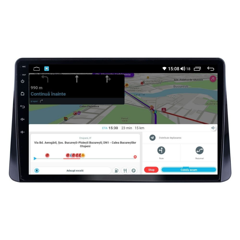 Sistem de operare: Car Android 14 cu meniu în peste 60 de limbi (inclusiv limba română) Procesor: Octa Core ARM Cortex A55 1.6GHz Memorie internă: 3GB RAM + 32GB stocare (extensibilă prin 2 sloturi USB de maxim 64GB) Display: Touchscreen 10 inch QLED HD 1280x720, multi-touch, format 16:9, cu margini curbate și tehnologie 2.5D Chipset GPS: Samsung Sirf Star IV cu 48 de canale (antenă GPS inclusă) Fast Boot: Navigația pornește instant în momentul în care se pune contactul Conectivitate: Slot SIM 4G, Wi-Fi, Bluetooth, 2 x USB, RCA, AUX Plug & Play: Mufă dedicată, navigaţia preia comenzile de pe volanul maşinii şi nu descarcă bateria acesteia Cooler răcire activă: Ventilatorul integrat menține o temperatură optimă, asigurând astfel navigației o durată de viaţă mai mare Audio: 4 x 45W + ieşire subwoofer, egalizator și procesor de sunet DSP Radio: FM (87.5 - 108.0 Mhz) şi AM (522 - 1620 Khz) cu funcție RDS Dual Zone: Poţi asculta muzică şi folosi aplicaţia preferată de navigare (iGO, Waze, Maps etc.) în acelaşi timp PLUG & PLAY Navigația se potrivește perfect în bord, iar mufa este identică cu cea a maşinii. Nu ai nevoie de altă ramă şi nu trebuie să modifici instalaţia electrică. Comenzile de pe volan rămân funcţionale, iar navigaţia se va opri când iei contactul şi nu va descărca bateria maşinii. În pachet sunt incluse toate cablurile necesare montării navigaţiei, precum şi cele auxiliare (RCA, USB etc.). UNIVERSUL ANDROID ÎN CONFORTUL MAŞINII TALE Aplicaţiile preferate vin acum pe ecranul navigaţiei tale. Poţi instala orice aplicaţie din magazinul Google Play: Waze, Google Maps, YouTube, Spotify, Google Chrome, Instagram, Facebook, WhatsApp etc. Fără a mai avea nevoie de telefon, te poţi strecura prin traficul aglomerat folosind Waze sau Google Maps şi în acelaşi timp poţi asculta muzica preferată sau viziona filmele și videoclipurile favorite pe YouTube, Spotify, Apple Music etc. GPS DUAL ZONE Navigaţia dispune de un modul şi o antenă GPS de calitate superioară, care te localizează cu precizie şi te ajută să ajungi la destinaţie în cel mai scurt timp, fără a avea nevoie de telefon. Dual zone: Poţi asculta muzică în timp ce foloseşti aplicaţia preferată de navigare, vocea aplicaţiei suprapunându-se, atunci când este cazul, peste muzică. COMPATIBILĂ CU ORICE TELEFON Deşi navigaţia dispune de propriul sistem de operare Android care funcţionează independent de telefon, la aceasta se poate conecta orice telefon cu Android sau iPhone prin Bluetooth sau Wi-Fi. Poţi folosi cu uşurinţă aplicațiile instalate pe telefon prin intermediul Android Auto sau Apple CarPlay şi primeşti toate notificările de pe telefon pe ecranul navigaţiei. SLOT SIM 4G, BLUETOOTH, WI-FI ŞI MIRRORLINK INTEGRATE Spune adio amenzilor pentru folosirea telefonului la volan. Poţi descărca agenda telefonică pe navigaţie şi poţi iniţia şi prelua apeluri de pe ecranul navigaţiei, precum şi asculta muzica preferată de pe telefon. Navigaţia se conectează rapid la orice reţea wireless, inclusiv la hotspot-ul telefonului, precum și la internet 4G, introducând o cartelă cu internet în slotul SIM. Cu ajutorul tehnologiei MirrorLink poţi beneficia de funcțiile Android Auto sau Apple CarPlay. MULTIPLE INTERFEȚE DISPONIBILE Interfața navigației se poate schimba cu ușurință, aceasta având 4 teme preinstalate, astfel încat să se plieze pe stilul și gustul tau. De asemenea, o poți personaliza foarte ușor cu alte teme disponibile în aplicații de tip Car Launcher. Nu trebuie să ştii engleză pentru a putea folosi navigaţia. Poţi afişa meniul în peste 60 de limbi, inclusiv română, engleză, spaniolă sau franceză. SUPORT DVR, CAMERĂ MARȘARIER ȘI SENZORI PARCARE AFTERMARKET Niciodată nu a fost atât de simplu să parchezi. Când schimbătorul ajunge în marșarier, pe ecranul navigației se va afișa automat imaginea video din spatele mașinii, împreună cu liniile de ghidaj. Senzorii de parcare, fiind de asemenea afişaţi pe navigaţie, te vor avertiza atât vizual, cât şi acustic. Înregistrarea video realizată de camera de bord DVR te poate scăpa de amenzi sau alte situaţii neplăcute, fiind martorul tău de încredere în cazul producerii unui eveniment nedorit în trafic. SUPORT INTERFAȚĂ OBDII Un adaptor Bluetooth OBDII este de un real ajutor atunci când o eroare apare în bordul maşinii. Cu ajutorul lui poţi citi, interpreta sau șterge eventualele coduri de eroare şi îţi poţi da seama cu uşurinţă ce nu este în regulă cu maşina ta. În plus, poți afișa pe ecranul navigației informații în timp real despre starea mașinii cu ajutorul unor aplicații dedicate precum Torque sau Car Scanner. NAVIGAȚIE CU ANDROID - SISTEMUL COMPLET DE INFOTAINMENT DIN MAȘINA TA