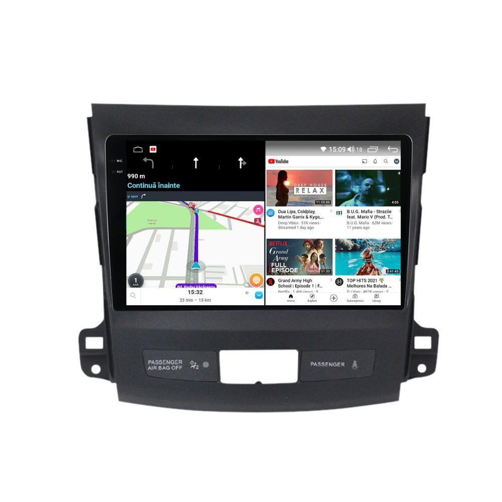 Navigatie dedicata cu Android Mitsubishi Outlander II 2006 - 2012, 12GB RAM, Radio GPS Dual Zone, Display 2K QLED 9.5 Touchscreen, Internet Wi-Fi si slot SIM 4G, Bluetooth, MirrorLink, USB, Waze