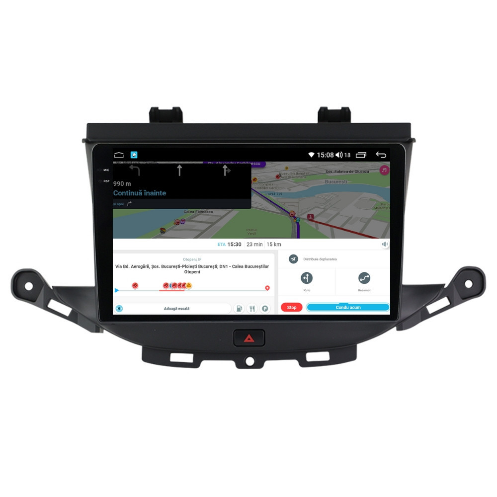 Navigatie dedicata cu Android Opel Astra K 2015 - 2021 hatchback, 4GB RAM, Radio GPS Dual Zone, Display 2K QLED 9.5 Touchscreen, Internet Wi-Fi si slot SIM 4G, Bluetooth, MirrorLink, USB, Waze