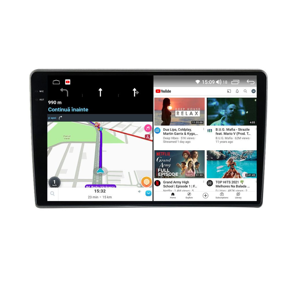 Sistem de operare: Car Android 14 cu meniu în peste 60 de limbi (inclusiv limba română) Procesor: Octa Core UIS7870S 2.7Ghz Memorie internă: 12GB RAM + 256GB stocare (extensibilă prin 3 sloturi USB de maxim 64GB) Display: Touchscreen 9.5 inch QLED 2K 2000x1200, multi-touch, format 16:9, cu margini curbate și tehnologie 2.5D Chipset GPS: Samsung Sirf Star IV cu 48 de canale (antenă GPS inclusă) Fast Boot: Navigația pornește instant în momentul în care se pune contactul Conectivitate: Slot SIM 4G, Wi-Fi Dual Band 2.4Ghz si 5Ghz, Bluetooth, 3 x USB, RCA, AUX Plug & Play: Mufă dedicată, navigaţia preia comenzile de pe volanul maşinii şi nu descarcă bateria acesteia Cooler răcire activă: Ventilatorul integrat menține o temperatură optimă, asigurând astfel navigației o durată de viaţă mai mare Control prin gesturi: Glisezi cu 2 degete în sus sau în jos pentru a modifica volumul sau în lateral pentru schimbarea melodiei Asistent virtual: Poţi controla cu ușurință navigația prin comenzi vocale cu ajutorul asistentului virtual integrat Audio: 4 x 45W + ieşire subwoofer, DTS 4.1 & 5.1, egalizator și procesor de sunet DSP Radio: FM (87.5 - 108.0 Mhz) şi AM (522 - 1620 Khz) cu funcție RDS Dual Zone: Poţi asculta muzică şi folosi aplicaţia preferată de navigare (iGO, Waze, Maps etc.) în acelaşi timp PLUG & PLAY Navigația se potrivește perfect în bord, iar mufa de alimentare este identică cu cea a maşinii. Nu ai nevoie de ramă adaptoare şi nici nu trebuie să modifici instalaţia electrică. Comenzile de pe volan rămân funcţionale, iar navigaţia se va opri când iei contactul şi nu va descărca bateria maşinii. În pachet sunt incluse toate cablurile necesare montării navigaţiei, precum şi cele auxiliare (RCA, USB etc.). UNIVERSUL ANDROID ÎN CONFORTUL MAŞINII TALE Aplicaţiile preferate vin acum pe ecranul navigaţiei tale. Poţi instala orice aplicaţie din magazinul Google Play: Waze, Google Maps, YouTube, Spotify, Google Chrome, Instagram, Facebook, WhatsApp etc. Fără a mai avea nevoie de telefon, te poţi strecura prin traficul aglomerat folosind Waze sau Google Maps şi în acelaşi timp poţi asculta muzica preferată sau viziona filmele și videoclipurile favorite pe YouTube, Spotify, Apple Music etc. GPS DUAL ZONE Navigaţia dispune de un modul şi o antenă GPS de calitate superioară, care te localizează cu precizie şi te ajută să ajungi la destinaţie în cel mai scurt timp, fără a avea nevoie de telefon. Dual zone: Poţi asculta muzică în timp ce foloseşti aplicaţia preferată de navigare, vocea aplicaţiei suprapunându-se, atunci când este cazul, peste muzică. COMPATIBILĂ CU ORICE TELEFON Deşi navigaţia dispune de propriul sistem de operare Android care funcţionează independent de telefon, la aceasta se poate conecta orice telefon cu Android sau iPhone prin Bluetooth sau Wi-Fi. Poţi folosi cu uşurinţă aplicațiile instalate pe telefon prin intermediul Android Auto sau Apple CarPlay şi primeşti toate notificările de pe telefon pe ecranul navigaţiei. SLOT SIM 4G, BLUETOOTH, WI-FI ŞI MIRRORLINK INTEGRATE Spune adio amenzilor pentru folosirea telefonului la volan. Poţi descărca agenda telefonică pe navigaţie şi poţi iniţia şi prelua apeluri de pe ecranul navigaţiei, precum şi asculta muzica preferată de pe telefon. Navigaţia se conectează rapid la orice reţea wireless, inclusiv la hotspot-ul telefonului, precum și la internet 4G, introducând o cartelă cu internet în slotul SIM. Cu ajutorul tehnologiei MirrorLink poţi beneficia de funcțiile Android Auto sau Apple CarPlay. MULTIPLE INTERFEȚE DISPONIBILE Interfața navigației se poate schimba cu ușurință, aceasta având 4 teme preinstalate, astfel încat să se plieze pe stilul și gustul tau. De asemenea, o poți personaliza foarte ușor cu alte teme disponibile în aplicații de tip Car Launcher. Nu trebuie să ştii engleză pentru a putea folosi navigaţia. Poţi afişa meniul în peste 60 de limbi, inclusiv română, engleză, spaniolă sau franceză. SUPORT DVR, CAMERĂ MARȘARIER ȘI SENZORI PARCARE AFTERMARKET Niciodată nu a fost atât de simplu să parchezi. Când schimbătorul ajunge în marșarier, pe ecranul navigației se va afișa automat imaginea video din spatele mașinii, împreună cu liniile de ghidaj. Senzorii de parcare, fiind de asemenea afişaţi pe navigaţie, te vor avertiza atât vizual, cât şi acustic. Înregistrarea video realizată de camera de bord DVR te poate scăpa de amenzi sau alte situaţii neplăcute, fiind martorul tău de încredere în cazul producerii unui eveniment nedorit în trafic. SUPORT INTERFAȚĂ OBDII Un adaptor Bluetooth OBDII este de un real ajutor atunci când o eroare apare în bordul maşinii. Cu ajutorul lui poţi citi, interpreta sau șterge eventualele coduri de eroare şi îţi poţi da seama cu uşurinţă ce nu este în regulă cu maşina ta. În plus, poți afișa pe ecranul navigației informații în timp real despre starea mașinii cu ajutorul unor aplicații dedicate precum Torque sau Car Scanner. NAVIGAȚIE CU ANDROID - SISTEMUL COMPLET DE INFOTAINMENT DIN MAȘINA TA