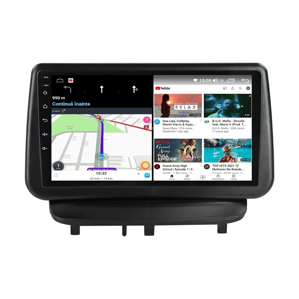 Sistem de operare: Car Android 14 cu meniu în peste 60 de limbi (inclusiv limba română) Procesor: Octa Core UIS7862S 2GHz Memorie internă: 4GB RAM + 32GB stocare (extensibilă prin 3 sloturi USB de maxim 64GB) Display: Touchscreen 9 inch QLED HD 1280x720, multi-touch, format 16:9, cu margini curbate și tehnologie 2.5D Chipset GPS: Samsung Sirf Star IV cu 48 de canale (antenă GPS inclusă) Fast Boot: Navigația pornește instant în momentul în care se pune contactul Conectivitate: Slot SIM 4G, Wi-Fi Dual Band 2.4Ghz si 5Ghz, Bluetooth, 3 x USB, RCA, AUX Plug & Play: Mufă dedicată, navigaţia preia comenzile de pe volanul maşinii şi nu descarcă bateria acesteia Cooler răcire activă: Ventilatorul integrat menține o temperatură optimă, asigurând astfel navigației o durată de viaţă mai mare Audio: 4 x 45W + ieşire subwoofer, egalizator și procesor de sunet DSP Radio: FM (87.5 - 108.0 Mhz) şi AM (522 - 1620 Khz) cu funcție RDS Dual Zone: Poţi asculta muzică şi folosi aplicaţia preferată de navigare (iGO, Waze, Maps etc.) în acelaşi timp PLUG & PLAY Navigația se potrivește perfect în bord, iar mufa este identică cu cea a maşinii. Nu ai nevoie de altă ramă şi nu trebuie să modifici instalaţia electrică. Comenzile de pe volan rămân funcţionale, iar navigaţia se va opri când iei contactul şi nu va descărca bateria maşinii. În pachet sunt incluse toate cablurile necesare montării navigaţiei, precum şi cele auxiliare (RCA, USB etc.). UNIVERSUL ANDROID ÎN CONFORTUL MAŞINII TALE Aplicaţiile preferate vin acum pe ecranul navigaţiei tale. Poţi instala orice aplicaţie din magazinul Google Play: Waze, Google Maps, YouTube, Spotify, Google Chrome, Instagram, Facebook, WhatsApp etc. Fără a mai avea nevoie de telefon, te poţi strecura prin traficul aglomerat folosind Waze sau Google Maps şi în acelaşi timp poţi asculta muzica preferată sau viziona filmele și videoclipurile favorite pe YouTube, Spotify, Apple Music etc. GPS DUAL ZONE Navigaţia dispune de un modul şi o antenă GPS de calitate superioară, care te localizează cu precizie şi te ajută să ajungi la destinaţie în cel mai scurt timp, fără a avea nevoie de telefon. Dual zone: Poţi asculta muzică în timp ce foloseşti aplicaţia preferată de navigare, vocea aplicaţiei suprapunându-se, atunci când este cazul, peste muzică. COMPATIBILĂ CU ORICE TELEFON Deşi navigaţia dispune de propriul sistem de operare Android care funcţionează independent de telefon, la aceasta se poate conecta orice telefon cu Android sau iPhone prin Bluetooth sau Wi-Fi. Poţi folosi cu uşurinţă aplicațiile instalate pe telefon prin intermediul Android Auto sau Apple CarPlay şi primeşti toate notificările de pe telefon pe ecranul navigaţiei. SLOT SIM 4G, BLUETOOTH, WI-FI ŞI MIRRORLINK INTEGRATE Spune adio amenzilor pentru folosirea telefonului la volan. Poţi descărca agenda telefonică pe navigaţie şi poţi iniţia şi prelua apeluri de pe ecranul navigaţiei, precum şi asculta muzica preferată de pe telefon. Navigaţia se conectează rapid la orice reţea wireless, inclusiv la hotspot-ul telefonului, precum și la internet 4G, introducând o cartelă cu internet în slotul SIM. Cu ajutorul tehnologiei MirrorLink poţi beneficia de funcțiile Android Auto sau Apple CarPlay. MULTIPLE INTERFEȚE DISPONIBILE Interfața navigației se poate schimba cu ușurință, aceasta având 4 teme preinstalate, astfel încat să se plieze pe stilul și gustul tau. De asemenea, o poți personaliza foarte ușor cu alte teme disponibile în aplicații de tip Car Launcher. Nu trebuie să ştii engleză pentru a putea folosi navigaţia. Poţi afişa meniul în peste 60 de limbi, inclusiv română, engleză, spaniolă sau franceză. SUPORT DVR, CAMERĂ MARȘARIER ȘI SENZORI PARCARE AFTERMARKET Niciodată nu a fost atât de simplu să parchezi. Când schimbătorul ajunge în marșarier, pe ecranul navigației se va afișa automat imaginea video din spatele mașinii, împreună cu liniile de ghidaj. Senzorii de parcare, fiind de asemenea afişaţi pe navigaţie, te vor avertiza atât vizual, cât şi acustic. Înregistrarea video realizată de camera de bord DVR te poate scăpa de amenzi sau alte situaţii neplăcute, fiind martorul tău de încredere în cazul producerii unui eveniment nedorit în trafic. SUPORT INTERFAȚĂ OBDII Un adaptor Bluetooth OBDII este de un real ajutor atunci când o eroare apare în bordul maşinii. Cu ajutorul lui poţi citi, interpreta sau șterge eventualele coduri de eroare şi îţi poţi da seama cu uşurinţă ce nu este în regulă cu maşina ta. În plus, poți afișa pe ecranul navigației informații în timp real despre starea mașinii cu ajutorul unor aplicații dedicate precum Torque sau Car Scanner. NAVIGAȚIE CU ANDROID - SISTEMUL COMPLET DE INFOTAINMENT DIN MAȘINA TA