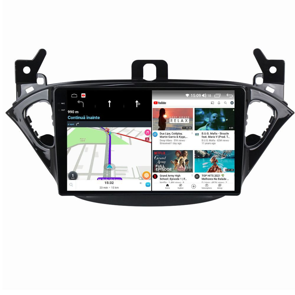 Navigatie dedicata cu Android Opel Corsa E 2014 - 2019, 12GB RAM, Radio GPS Dual Zone, Display 2K QLED 9.5 Touchscreen, Internet Wi-Fi si slot SIM 4G, Bluetooth, MirrorLink, USB, Waze
