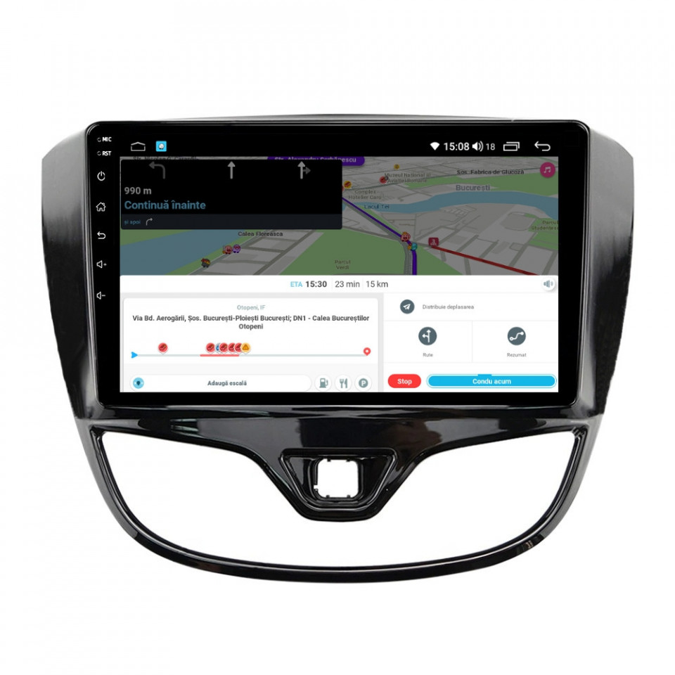 Navigatie dedicata cu Android Opel Karl 2015 - 2019, 4GB RAM, Radio GPS Dual Zone, Display HD QLED 9 Touchscreen, Internet Wi-Fi si slot SIM 4G, Bluetooth, MirrorLink, USB, Waze