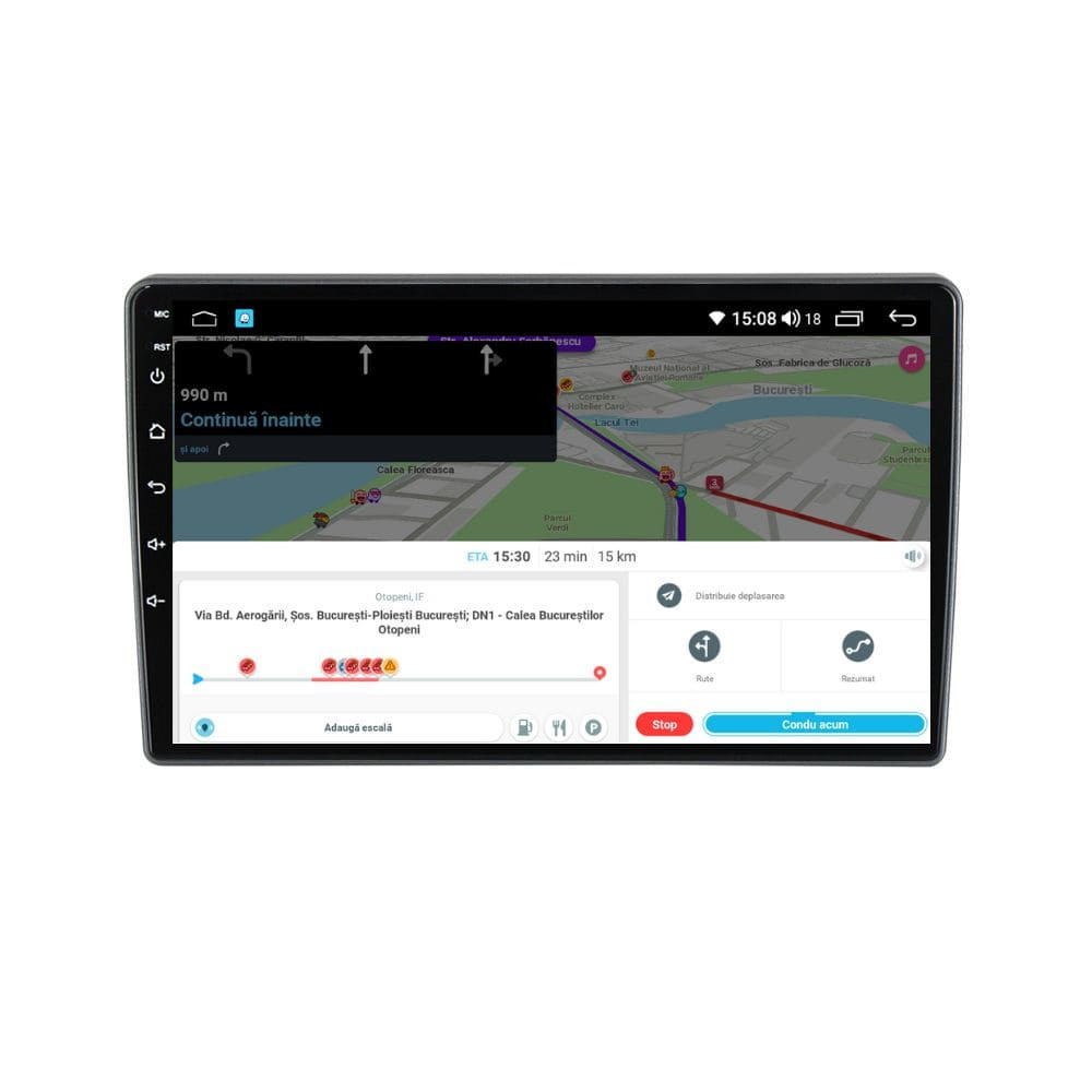 Sistem de operare: Car Android 14 cu meniu în peste 60 de limbi (inclusiv limba română) Procesor: Octa Core ARM Cortex A55 1.6GHz Memorie internă: 3GB RAM + 32GB stocare (extensibilă prin 2 sloturi USB de maxim 64GB) Display: Touchscreen 9 inch QLED HD 1280x720, multi-touch, format 16:9, cu margini curbate și tehnologie 2.5D Chipset GPS: Samsung Sirf Star IV cu 48 de canale (antenă GPS inclusă) Fast Boot: Navigația pornește instant în momentul în care se pune contactul Conectivitate: Slot SIM 4G, Wi-Fi, Bluetooth, 2 x USB, RCA, AUX Plug & Play: Mufă dedicată, navigaţia preia comenzile de pe volanul maşinii şi nu descarcă bateria acesteia Cooler răcire activă: Ventilatorul integrat menține o temperatură optimă, asigurând astfel navigației o durată de viaţă mai mare Audio: 4 x 45W + ieşire subwoofer, egalizator și procesor de sunet DSP Radio: FM (87.5 - 108.0 Mhz) şi AM (522 - 1620 Khz) cu funcție RDS Dual Zone: Poţi asculta muzică şi folosi aplicaţia preferată de navigare (iGO, Waze, Maps etc.) în acelaşi timp PLUG & PLAY Navigația se potrivește perfect în bord, iar mufa este identică cu cea a maşinii. Nu ai nevoie de altă ramă şi nu trebuie să modifici instalaţia electrică. Comenzile de pe volan rămân funcţionale, iar navigaţia se va opri când iei contactul şi nu va descărca bateria maşinii. În pachet sunt incluse toate cablurile necesare montării navigaţiei, precum şi cele auxiliare (RCA, USB etc.). UNIVERSUL ANDROID ÎN CONFORTUL MAŞINII TALE Aplicaţiile preferate vin acum pe ecranul navigaţiei tale. Poţi instala orice aplicaţie din magazinul Google Play: Waze, Google Maps, YouTube, Spotify, Google Chrome, Instagram, Facebook, WhatsApp etc. Fără a mai avea nevoie de telefon, te poţi strecura prin traficul aglomerat folosind Waze sau Google Maps şi în acelaşi timp poţi asculta muzica preferată sau viziona filmele și videoclipurile favorite pe YouTube, Spotify, Apple Music etc. GPS DUAL ZONE Navigaţia dispune de un modul şi o antenă GPS de calitate superioară, care te localizează cu precizie şi te ajută să ajungi la destinaţie în cel mai scurt timp, fără a avea nevoie de telefon. Dual zone: Poţi asculta muzică în timp ce foloseşti aplicaţia preferată de navigare, vocea aplicaţiei suprapunându-se, atunci când este cazul, peste muzică. COMPATIBILĂ CU ORICE TELEFON Deşi navigaţia dispune de propriul sistem de operare Android care funcţionează independent de telefon, la aceasta se poate conecta orice telefon cu Android sau iPhone prin Bluetooth sau Wi-Fi. Poţi folosi cu uşurinţă aplicațiile instalate pe telefon prin intermediul Android Auto sau Apple CarPlay şi primeşti toate notificările de pe telefon pe ecranul navigaţiei. SLOT SIM 4G, BLUETOOTH, WI-FI ŞI MIRRORLINK INTEGRATE Spune adio amenzilor pentru folosirea telefonului la volan. Poţi descărca agenda telefonică pe navigaţie şi poţi iniţia şi prelua apeluri de pe ecranul navigaţiei, precum şi asculta muzica preferată de pe telefon. Navigaţia se conectează rapid la orice reţea wireless, inclusiv la hotspot-ul telefonului, precum și la internet 4G, introducând o cartelă cu internet în slotul SIM. Cu ajutorul tehnologiei MirrorLink poţi beneficia de funcțiile Android Auto sau Apple CarPlay. MULTIPLE INTERFEȚE DISPONIBILE Interfața navigației se poate schimba cu ușurință, aceasta având 4 teme preinstalate, astfel încat să se plieze pe stilul și gustul tau. De asemenea, o poți personaliza foarte ușor cu alte teme disponibile în aplicații de tip Car Launcher. Nu trebuie să ştii engleză pentru a putea folosi navigaţia. Poţi afişa meniul în peste 60 de limbi, inclusiv română, engleză, spaniolă sau franceză. SUPORT DVR, CAMERĂ MARȘARIER ȘI SENZORI PARCARE AFTERMARKET Niciodată nu a fost atât de simplu să parchezi. Când schimbătorul ajunge în marșarier, pe ecranul navigației se va afișa automat imaginea video din spatele mașinii, împreună cu liniile de ghidaj. Senzorii de parcare, fiind de asemenea afişaţi pe navigaţie, te vor avertiza atât vizual, cât şi acustic. Înregistrarea video realizată de camera de bord DVR te poate scăpa de amenzi sau alte situaţii neplăcute, fiind martorul tău de încredere în cazul producerii unui eveniment nedorit în trafic. SUPORT INTERFAȚĂ OBDII Un adaptor Bluetooth OBDII este de un real ajutor atunci când o eroare apare în bordul maşinii. Cu ajutorul lui poţi citi, interpreta sau șterge eventualele coduri de eroare şi îţi poţi da seama cu uşurinţă ce nu este în regulă cu maşina ta. În plus, poți afișa pe ecranul navigației informații în timp real despre starea mașinii cu ajutorul unor aplicații dedicate precum Torque sau Car Scanner. NAVIGAȚIE CU ANDROID - SISTEMUL COMPLET DE INFOTAINMENT DIN MAȘINA TA