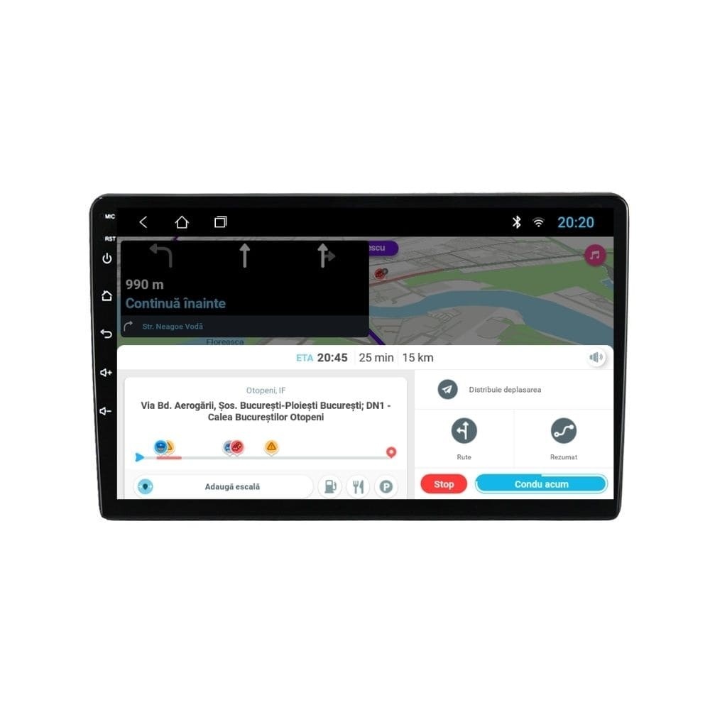 Sistem de operare: Car Android 14 cu meniu în peste 60 de limbi (inclusiv limba română) Procesor: Quad Core ARM Cortex-A7 1.3Ghz Memorie internă: 2GB RAM + 32GB stocare (extensibilă prin 2 sloturi USB de maxim 64GB) Display: Touchscreen 10 inch IPS HD 1280x720, multi-touch, format 16:9, cu margini curbate și tehnologie 2.5D Chipset GPS: Samsung Sirf Star IV cu 48 de canale (antenă GPS inclusă) Conectivitate: Wi-Fi, Bluetooth, 2 x USB, RCA, AUX Plug & Play: Mufă dedicată, navigaţia preia comenzile de pe volanul maşinii şi nu descarcă bateria acesteia Cooler răcire activă: Ventilatorul integrat menține o temperatură optimă, asigurând astfel navigației o durată de viaţă mai mare Audio: 4 x 45W + ieşire subwoofer Radio: FM 87.5 - 108.0 Mhz Dual Zone: Poţi asculta muzică şi folosi aplicaţia preferată de navigare (iGO, Waze, Maps etc.) în acelaşi timp PLUG & PLAY Navigația se potrivește perfect în bord, iar mufa este identică cu cea a maşinii. Nu ai nevoie de altă ramă şi nu trebuie să modifici instalaţia electrică. Comenzile de pe volan rămân funcţionale, iar navigaţia se va opri când iei contactul şi nu va descărca bateria maşinii. În pachet sunt incluse toate cablurile necesare montării navigaţiei, precum şi cele auxiliare (RCA, USB etc.). UNIVERSUL ANDROID ÎN CONFORTUL MAŞINII TALE Aplicaţiile preferate vin acum pe ecranul navigaţiei tale. Poţi instala orice aplicaţie din magazinul Google Play: Waze, Google Maps, YouTube, Spotify, Google Chrome, Instagram, Facebook, WhatsApp etc. Fără a mai avea nevoie de telefon, te poţi strecura prin traficul aglomerat folosind Waze sau Google Maps şi în acelaşi timp poţi asculta muzica preferată sau viziona filmele și videoclipurile favorite pe YouTube, Spotify, Apple Music etc. GPS DUAL ZONE Navigaţia dispune de un modul şi o antenă GPS de calitate superioară, care te localizează cu precizie şi te ajută să ajungi la destinaţie în cel mai scurt timp, fără a avea nevoie de telefon. Dual zone: Poţi asculta muzică în timp ce foloseşti aplicaţia preferată de navigare, vocea aplicaţiei suprapunându-se, atunci când este cazul, peste muzică. COMPATIBILĂ CU ORICE TELEFON Deşi navigaţia dispune de propriul sistem de operare Android care funcţionează independent de telefon, la aceasta se poate conecta orice telefon cu Android sau iPhone prin Bluetooth sau Wi-Fi. Poţi folosi cu uşurinţă orice aplicaţie instalată pe telefon fără a o instala şi pe navigaţie şi primeşti toate notificările de pe telefon direct pe ecranul navigaţiei. BLUETOOTH, WI-FI ŞI MIRRORLINK INTEGRATE Spune adio amenzilor pentru folosirea telefonului la volan. Poţi descărca contactele din telefon pe navigaţie şi poţi iniţia şi prelua apeluri direct de pe ecranul navigaţiei, precum şi asculta muzica preferată de pe telefon. Navigaţia se conectează rapid la orice reţea wireless, inclusiv la hotspot-ul telefonului, iar cu ajutorul tehnologiei MirrorLink poţi oglindi imaginea telefonului pe navigaţie. MULTIPLE INTERFEȚE DISPONIBILE Interfața navigației se poate schimba cu ușurință, aceasta având 4 teme preinstalate, astfel încat să se plieze pe stilul și gustul tau. De asemenea, o poți personaliza foarte ușor cu alte teme disponibile în aplicații de tip Car Launcher. Nu trebuie să ştii engleză pentru a putea folosi navigaţia. Poţi afişa meniul în peste 60 de limbi, inclusiv română, engleză, spaniolă sau franceză. SUPORT DVR, CAMERĂ MARȘARIER ȘI SENZORI PARCARE AFTERMARKET Niciodată nu a fost atât de simplu să parchezi. Când schimbătorul ajunge în marșarier, pe ecranul navigației se va afișa automat imaginea video din spatele mașinii, împreună cu liniile de ghidaj. Senzorii de parcare, fiind de asemenea afişaţi pe navigaţie, te vor avertiza atât vizual, cât şi acustic. Înregistrarea video realizată de camera de bord DVR te poate scăpa de amenzi sau alte situaţii neplăcute, fiind martorul tău de încredere în cazul producerii unui eveniment nedorit în trafic. SUPORT INTERFAȚĂ OBDII Un adaptor Bluetooth OBDII este de un real ajutor atunci când o eroare apare în bordul maşinii. Cu ajutorul lui poţi citi, interpreta sau șterge eventualele coduri de eroare şi îţi poţi da seama cu uşurinţă ce nu este în regulă cu maşina ta. În plus, poți afișa pe ecranul navigației informații în timp real despre starea mașinii cu ajutorul unor aplicații dedicate precum Torque sau Car Scanner. NAVIGAȚIE CU ANDROID - SISTEMUL COMPLET DE INFOTAINMENT DIN MAȘINA TA