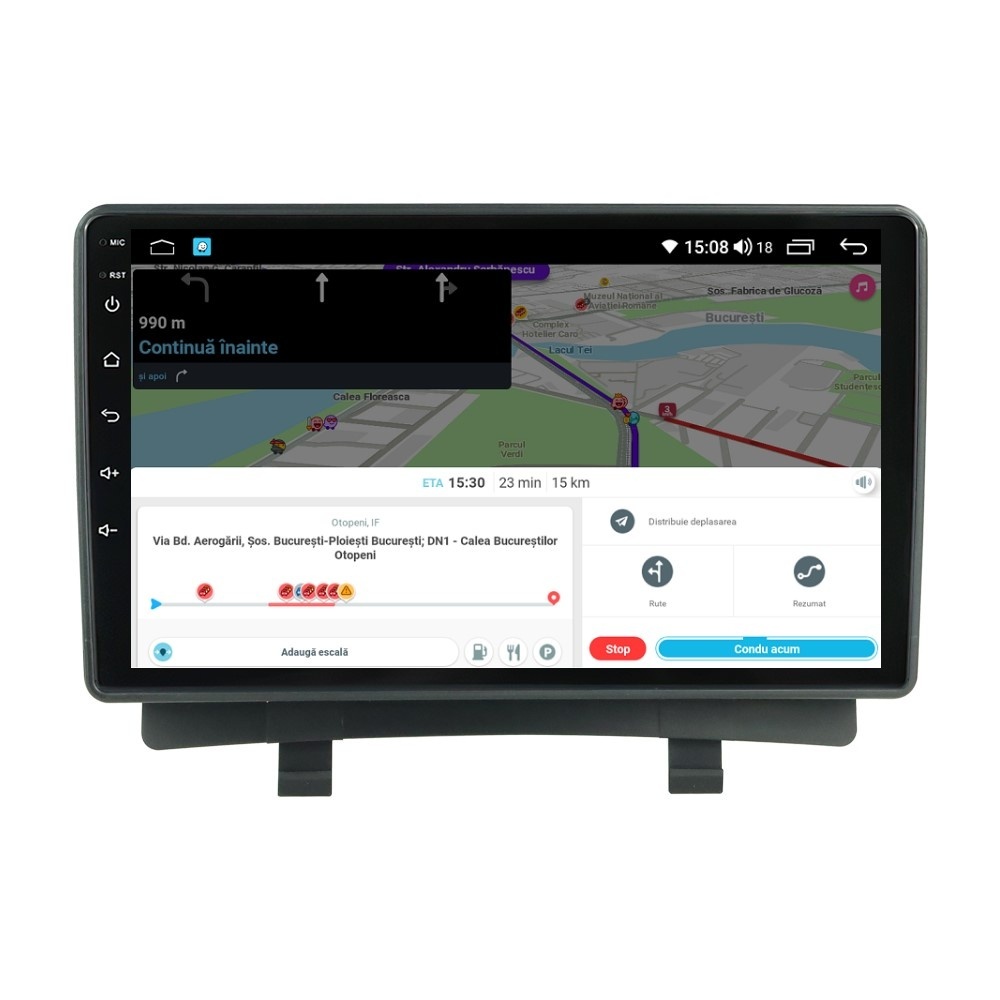 Sistem de operare: Car Android 14 cu meniu în peste 60 de limbi (inclusiv limba română) Procesor: Octa Core UIS7862S 2GHz Memorie internă: 4GB RAM + 32GB stocare (extensibilă prin 3 sloturi USB de maxim 64GB) Display: Touchscreen 9 inch QLED HD 1280x720, multi-touch, format 16:9, cu margini curbate și tehnologie 2.5D Chipset GPS: Samsung Sirf Star IV cu 48 de canale (antenă GPS inclusă) Fast Boot: Navigația pornește instant în momentul în care se pune contactul Conectivitate: Slot SIM 4G, Wi-Fi Dual Band 2.4Ghz si 5Ghz, Bluetooth, 3 x USB, RCA, AUX Plug & Play: Mufă dedicată, navigaţia preia comenzile de pe volanul maşinii şi nu descarcă bateria acesteia Cooler răcire activă: Ventilatorul integrat menține o temperatură optimă, asigurând astfel navigației o durată de viaţă mai mare Audio: 4 x 45W + ieşire subwoofer, egalizator și procesor de sunet DSP Radio: FM (87.5 - 108.0 Mhz) şi AM (522 - 1620 Khz) cu funcție RDS Dual Zone: Poţi asculta muzică şi folosi aplicaţia preferată de navigare (iGO, Waze, Maps etc.) în acelaşi timp PLUG & PLAY Navigația se potrivește perfect în bord, iar mufa este identică cu cea a maşinii. Nu ai nevoie de altă ramă şi nu trebuie să modifici instalaţia electrică. Comenzile de pe volan rămân funcţionale, iar navigaţia se va opri când iei contactul şi nu va descărca bateria maşinii. În pachet sunt incluse toate cablurile necesare montării navigaţiei, precum şi cele auxiliare (RCA, USB etc.). UNIVERSUL ANDROID ÎN CONFORTUL MAŞINII TALE Aplicaţiile preferate vin acum pe ecranul navigaţiei tale. Poţi instala orice aplicaţie din magazinul Google Play: Waze, Google Maps, YouTube, Spotify, Google Chrome, Instagram, Facebook, WhatsApp etc. Fără a mai avea nevoie de telefon, te poţi strecura prin traficul aglomerat folosind Waze sau Google Maps şi în acelaşi timp poţi asculta muzica preferată sau viziona filmele și videoclipurile favorite pe YouTube, Spotify, Apple Music etc. GPS DUAL ZONE Navigaţia dispune de un modul şi o antenă GPS de calitate superioară, care te localizează cu precizie şi te ajută să ajungi la destinaţie în cel mai scurt timp, fără a avea nevoie de telefon. Dual zone: Poţi asculta muzică în timp ce foloseşti aplicaţia preferată de navigare, vocea aplicaţiei suprapunându-se, atunci când este cazul, peste muzică. COMPATIBILĂ CU ORICE TELEFON Deşi navigaţia dispune de propriul sistem de operare Android care funcţionează independent de telefon, la aceasta se poate conecta orice telefon cu Android sau iPhone prin Bluetooth sau Wi-Fi. Poţi folosi cu uşurinţă aplicațiile instalate pe telefon prin intermediul Android Auto sau Apple CarPlay şi primeşti toate notificările de pe telefon pe ecranul navigaţiei. SLOT SIM 4G, BLUETOOTH, WI-FI ŞI MIRRORLINK INTEGRATE Spune adio amenzilor pentru folosirea telefonului la volan. Poţi descărca agenda telefonică pe navigaţie şi poţi iniţia şi prelua apeluri de pe ecranul navigaţiei, precum şi asculta muzica preferată de pe telefon. Navigaţia se conectează rapid la orice reţea wireless, inclusiv la hotspot-ul telefonului, precum și la internet 4G, introducând o cartelă cu internet în slotul SIM. Cu ajutorul tehnologiei MirrorLink poţi beneficia de funcțiile Android Auto sau Apple CarPlay. MULTIPLE INTERFEȚE DISPONIBILE Interfața navigației se poate schimba cu ușurință, aceasta având 4 teme preinstalate, astfel încat să se plieze pe stilul și gustul tau. De asemenea, o poți personaliza foarte ușor cu alte teme disponibile în aplicații de tip Car Launcher. Nu trebuie să ştii engleză pentru a putea folosi navigaţia. Poţi afişa meniul în peste 60 de limbi, inclusiv română, engleză, spaniolă sau franceză. SUPORT DVR, CAMERĂ MARȘARIER ȘI SENZORI PARCARE AFTERMARKET Niciodată nu a fost atât de simplu să parchezi. Când schimbătorul ajunge în marșarier, pe ecranul navigației se va afișa automat imaginea video din spatele mașinii, împreună cu liniile de ghidaj. Senzorii de parcare, fiind de asemenea afişaţi pe navigaţie, te vor avertiza atât vizual, cât şi acustic. Înregistrarea video realizată de camera de bord DVR te poate scăpa de amenzi sau alte situaţii neplăcute, fiind martorul tău de încredere în cazul producerii unui eveniment nedorit în trafic. SUPORT INTERFAȚĂ OBDII Un adaptor Bluetooth OBDII este de un real ajutor atunci când o eroare apare în bordul maşinii. Cu ajutorul lui poţi citi, interpreta sau șterge eventualele coduri de eroare şi îţi poţi da seama cu uşurinţă ce nu este în regulă cu maşina ta. În plus, poți afișa pe ecranul navigației informații în timp real despre starea mașinii cu ajutorul unor aplicații dedicate precum Torque sau Car Scanner. NAVIGAȚIE CU ANDROID - SISTEMUL COMPLET DE INFOTAINMENT DIN MAȘINA TA