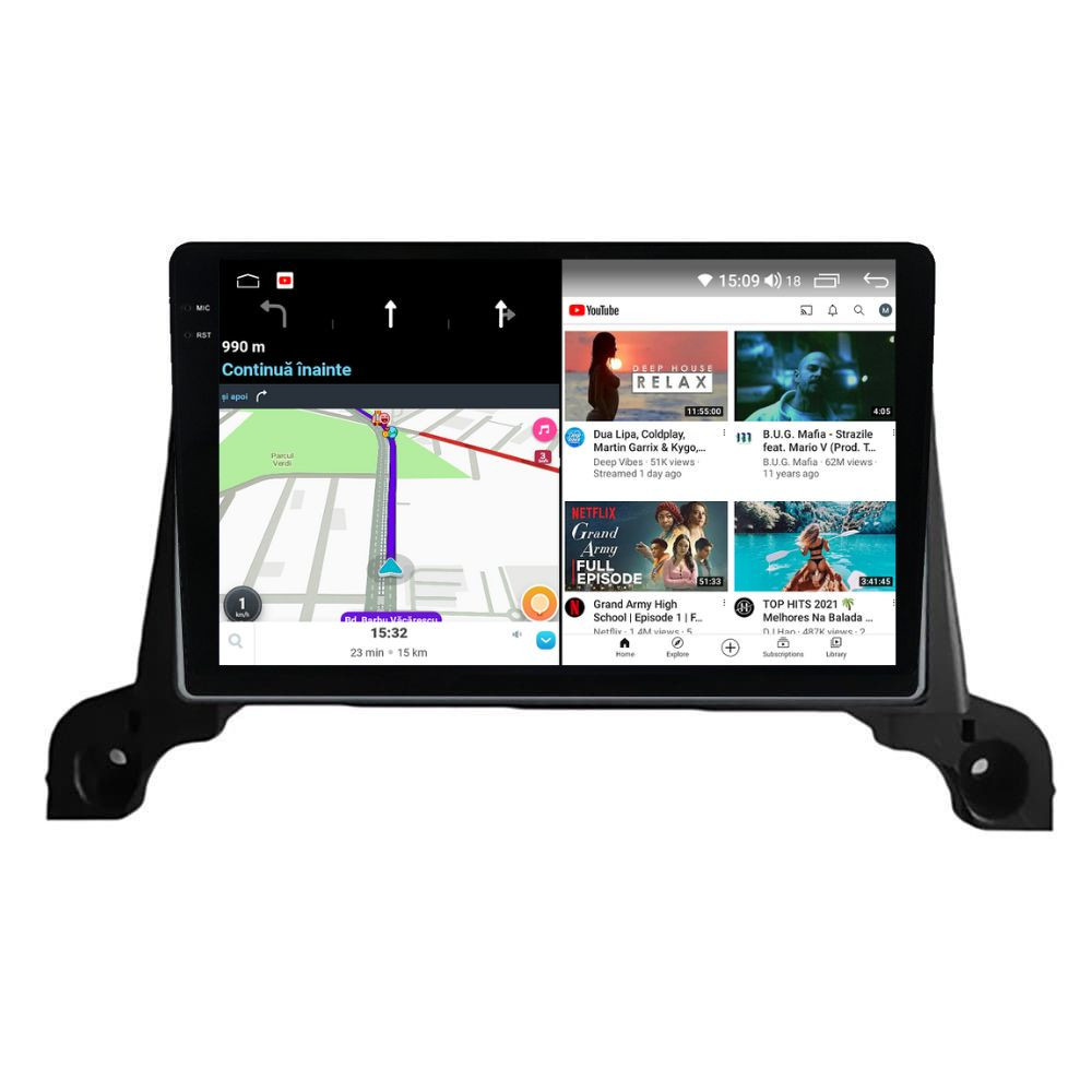 Sistem de operare: Car Android 14 cu meniu în peste 60 de limbi (inclusiv limba română) Procesor: Octa Core UIS7870S 2.7Ghz Memorie internă: 12GB RAM + 256GB stocare (extensibilă prin 3 sloturi USB de maxim 64GB) Display: Touchscreen 9.5 inch QLED 2K 2000x1200, multi-touch, format 16:9, cu margini curbate și tehnologie 2.5D Chipset GPS: Samsung Sirf Star IV cu 48 de canale (antenă GPS inclusă) Fast Boot: Navigația pornește instant în momentul în care se pune contactul Conectivitate: Slot SIM 4G, Wi-Fi Dual Band 2.4Ghz si 5Ghz, Bluetooth, 3 x USB, RCA, AUX Plug & Play: Mufă dedicată, navigaţia preia comenzile de pe volanul maşinii şi nu descarcă bateria acesteia Cooler răcire activă: Ventilatorul integrat menține o temperatură optimă, asigurând astfel navigației o durată de viaţă mai mare Control prin gesturi: Glisezi cu 2 degete în sus sau în jos pentru a modifica volumul sau în lateral pentru schimbarea melodiei Asistent virtual: Poţi controla cu ușurință navigația prin comenzi vocale cu ajutorul asistentului virtual integrat Audio: 4 x 45W + ieşire subwoofer, DTS 4.1 & 5.1, egalizator și procesor de sunet DSP Radio: FM (87.5 - 108.0 Mhz) şi AM (522 - 1620 Khz) cu funcție RDS Dual Zone: Poţi asculta muzică şi folosi aplicaţia preferată de navigare (iGO, Waze, Maps etc.) în acelaşi timp PLUG & PLAY Navigația se potrivește perfect în bord, iar mufa este identică cu cea a maşinii. Nu ai nevoie de altă ramă şi nu trebuie să modifici instalaţia electrică. Comenzile de pe volan rămân funcţionale, iar navigaţia se va opri când iei contactul şi nu va descărca bateria maşinii. În pachet sunt incluse toate cablurile necesare montării navigaţiei, precum şi cele auxiliare (RCA, USB etc.). UNIVERSUL ANDROID ÎN CONFORTUL MAŞINII TALE Aplicaţiile preferate vin acum pe ecranul navigaţiei tale. Poţi instala orice aplicaţie din magazinul Google Play: Waze, Google Maps, YouTube, Spotify, Google Chrome, Instagram, Facebook, WhatsApp etc. Fără a mai avea nevoie de telefon, te poţi strecura prin traficul aglomerat folosind Waze sau Google Maps şi în acelaşi timp poţi asculta muzica preferată sau viziona filmele și videoclipurile favorite pe YouTube, Spotify, Apple Music etc. GPS DUAL ZONE Navigaţia dispune de un modul şi o antenă GPS de calitate superioară, care te localizează cu precizie şi te ajută să ajungi la destinaţie în cel mai scurt timp, fără a avea nevoie de telefon. Dual zone: Poţi asculta muzică în timp ce foloseşti aplicaţia preferată de navigare, vocea aplicaţiei suprapunându-se, atunci când este cazul, peste muzică. COMPATIBILĂ CU ORICE TELEFON Deşi navigaţia dispune de propriul sistem de operare Android care funcţionează independent de telefon, la aceasta se poate conecta orice telefon cu Android sau iPhone prin Bluetooth sau Wi-Fi. Poţi folosi cu uşurinţă aplicațiile instalate pe telefon prin intermediul Android Auto sau Apple CarPlay şi primeşti toate notificările de pe telefon pe ecranul navigaţiei. SLOT SIM 4G, BLUETOOTH, WI-FI ŞI MIRRORLINK INTEGRATE Spune adio amenzilor pentru folosirea telefonului la volan. Poţi descărca agenda telefonică pe navigaţie şi poţi iniţia şi prelua apeluri de pe ecranul navigaţiei, precum şi asculta muzica preferată de pe telefon. Navigaţia se conectează rapid la orice reţea wireless, inclusiv la hotspot-ul telefonului, precum și la internet 4G, introducând o cartelă cu internet în slotul SIM. Cu ajutorul tehnologiei MirrorLink poţi beneficia de funcțiile Android Auto sau Apple CarPlay. MULTIPLE INTERFEȚE DISPONIBILE Interfața navigației se poate schimba cu ușurință, aceasta având 4 teme preinstalate, astfel încat să se plieze pe stilul și gustul tau. De asemenea, o poți personaliza foarte ușor cu alte teme disponibile în aplicații de tip Car Launcher. Nu trebuie să ştii engleză pentru a putea folosi navigaţia. Poţi afişa meniul în peste 60 de limbi, inclusiv română, engleză, spaniolă sau franceză. SUPORT DVR, CAMERĂ MARȘARIER ȘI SENZORI PARCARE AFTERMARKET Niciodată nu a fost atât de simplu să parchezi. Când schimbătorul ajunge în marșarier, pe ecranul navigației se va afișa automat imaginea video din spatele mașinii, împreună cu liniile de ghidaj. Senzorii de parcare, fiind de asemenea afişaţi pe navigaţie, te vor avertiza atât vizual, cât şi acustic. Înregistrarea video realizată de camera de bord DVR te poate scăpa de amenzi sau alte situaţii neplăcute, fiind martorul tău de încredere în cazul producerii unui eveniment nedorit în trafic. SUPORT INTERFAȚĂ OBDII Un adaptor Bluetooth OBDII este de un real ajutor atunci când o eroare apare în bordul maşinii. Cu ajutorul lui poţi citi, interpreta sau șterge eventualele coduri de eroare şi îţi poţi da seama cu uşurinţă ce nu este în regulă cu maşina ta. În plus, poți afișa pe ecranul navigației informații în timp real despre starea mașinii cu ajutorul unor aplicații dedicate precum Torque sau Car Scanner. NAVIGAȚIE CU ANDROID - SISTEMUL COMPLET DE INFOTAINMENT DIN MAȘINA TA