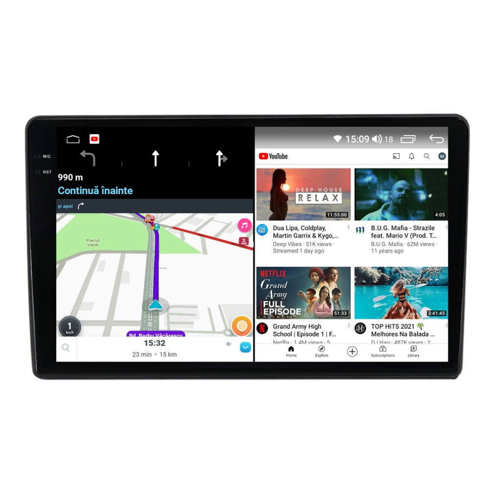 Sistem de operare: Car Android 13 cu meniu în peste 60 de limbi (inclusiv limba română) Procesor: Octa Core UIS7870S 2.7Ghz Memorie internă: 12GB RAM + 256GB stocare (extensibilă prin 3 sloturi USB de maxim 64GB) Display: Touchscreen 10.36 inch QLED 2K 2000x1200, multi-touch, format 16:9, cu margini curbate și tehnologie 2.5D Chipset GPS: Samsung Sirf Star IV cu 48 de canale (antenă GPS inclusă) Fast Boot: Navigația pornește instant în momentul în care se pune contactul Conectivitate: Slot SIM 4G, Wi-Fi Dual Band 2.4Ghz si 5Ghz, Bluetooth, 3 x USB, RCA, AUX Plug & Play: Mufă dedicată, navigaţia preia comenzile de pe volanul maşinii şi nu descarcă bateria acesteia Cooler răcire activă: Ventilatorul integrat menține o temperatură optimă, asigurând astfel navigației o durată de viaţă mai mare Control prin gesturi: Glisezi cu 2 degete în sus sau în jos pentru a modifica volumul sau în lateral pentru schimbarea melodiei Asistent virtual: Poţi controla cu ușurință navigația prin comenzi vocale cu ajutorul asistentului virtual integrat Audio: 4 x 45W + ieşire subwoofer, DTS 4.1 & 5.1, egalizator și procesor de sunet DSP Radio: FM (87.5 - 108.0 Mhz) şi AM (522 - 1620 Khz) cu funcție RDS Dual Zone: Poţi asculta muzică şi folosi aplicaţia preferată de navigare (iGO, Waze, Maps etc.) în acelaşi timp PLUG & PLAY Navigația se potrivește perfect în bord, iar mufa este identică cu cea a maşinii. Nu ai nevoie de altă ramă şi nu trebuie să modifici instalaţia electrică. Comenzile de pe volan rămân funcţionale, iar navigaţia se va opri când iei contactul şi nu va descărca bateria maşinii. În pachet sunt incluse toate cablurile necesare montării navigaţiei, precum şi cele auxiliare (RCA, USB etc.). UNIVERSUL ANDROID ÎN CONFORTUL MAŞINII TALE Aplicaţiile preferate vin acum pe ecranul navigaţiei tale. Poţi instala orice aplicaţie din magazinul Google Play: Waze, Google Maps, YouTube, Spotify, Google Chrome, Instagram, Facebook, WhatsApp etc. Fără a mai avea nevoie de telefon, te poţi strecura prin traficul aglomerat folosind Waze sau Google Maps şi în acelaşi timp poţi asculta muzica preferată sau viziona filmele și videoclipurile favorite pe YouTube, Spotify, Apple Music etc. GPS DUAL ZONE Navigaţia dispune de un modul şi o antenă GPS de calitate superioară, care te localizează cu precizie şi te ajută să ajungi la destinaţie în cel mai scurt timp, fără a avea nevoie de telefon. Dual zone: Poţi asculta muzică în timp ce foloseşti aplicaţia preferată de navigare, vocea aplicaţiei suprapunându-se, atunci când este cazul, peste muzică. COMPATIBILĂ CU ORICE TELEFON Deşi navigaţia dispune de propriul sistem de operare Android care funcţionează independent de telefon, la aceasta se poate conecta orice telefon cu Android sau iPhone prin Bluetooth sau Wi-Fi. Poţi folosi cu uşurinţă aplicațiile instalate pe telefon prin intermediul Android Auto sau Apple CarPlay şi primeşti toate notificările de pe telefon pe ecranul navigaţiei. SLOT SIM 4G, BLUETOOTH, WI-FI ŞI MIRRORLINK INTEGRATE Spune adio amenzilor pentru folosirea telefonului la volan. Poţi descărca agenda telefonică pe navigaţie şi poţi iniţia şi prelua apeluri de pe ecranul navigaţiei, precum şi asculta muzica preferată de pe telefon. Navigaţia se conectează rapid la orice reţea wireless, inclusiv la hotspot-ul telefonului, precum și la internet 4G, introducând o cartelă cu internet în slotul SIM. Cu ajutorul tehnologiei MirrorLink poţi beneficia de funcțiile Android Auto sau Apple CarPlay. MULTIPLE INTERFEȚE DISPONIBILE Interfața navigației se poate schimba cu ușurință, aceasta având 4 teme preinstalate, astfel încat să se plieze pe stilul și gustul tau. De asemenea, o poți personaliza foarte ușor cu alte teme disponibile în aplicații de tip Car Launcher. Nu trebuie să ştii engleză pentru a putea folosi navigaţia. Poţi afişa meniul în peste 60 de limbi, inclusiv română, engleză, spaniolă sau franceză. SUPORT DVR, CAMERĂ MARȘARIER ȘI SENZORI PARCARE AFTERMARKET Niciodată nu a fost atât de simplu să parchezi. Când schimbătorul ajunge în marșarier, pe ecranul navigației se va afișa automat imaginea video din spatele mașinii, împreună cu liniile de ghidaj. Senzorii de parcare, fiind de asemenea afişaţi pe navigaţie, te vor avertiza atât vizual, cât şi acustic. Înregistrarea video realizată de camera de bord DVR te poate scăpa de amenzi sau alte situaţii neplăcute, fiind martorul tău de încredere în cazul producerii unui eveniment nedorit în trafic. SUPORT INTERFAȚĂ OBDII Un adaptor Bluetooth OBDII este de un real ajutor atunci când o eroare apare în bordul maşinii. Cu ajutorul lui poţi citi, interpreta sau șterge eventualele coduri de eroare şi îţi poţi da seama cu uşurinţă ce nu este în regulă cu maşina ta. În plus, poți afișa pe ecranul navigației informații în timp real despre starea mașinii cu ajutorul unor aplicații dedicate precum Torque sau Car Scanner. NAVIGAȚIE CU ANDROID - SISTEMUL COMPLET DE INFOTAINMENT DIN MAȘINA TA