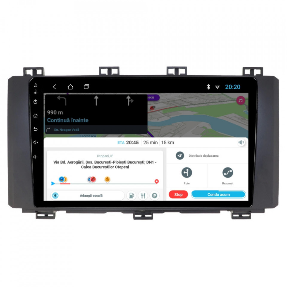 Sistem de operare: Car Android 14 cu meniu în peste 60 de limbi (inclusiv limba română) Procesor: Quad Core ARM Cortex-A7 1.3Ghz Memorie internă: 2GB RAM + 32GB stocare (extensibilă prin 2 sloturi USB de maxim 64GB) Display: Touchscreen 9 inch IPS HD 1280x720, multi-touch, format 16:9, cu margini curbate și tehnologie 2.5D Chipset GPS: Samsung Sirf Star IV cu 48 de canale (antenă GPS inclusă) Conectivitate: Wi-Fi, Bluetooth, 2 x USB, RCA, AUX Plug & Play: Mufă dedicată, navigaţia preia comenzile de pe volanul maşinii şi nu descarcă bateria acesteia Cooler răcire activă: Ventilatorul integrat menține o temperatură optimă, asigurând astfel navigației o durată de viaţă mai mare Audio: 4 x 45W + ieşire subwoofer Radio: FM 87.5 - 108.0 Mhz Dual Zone: Poţi asculta muzică şi folosi aplicaţia preferată de navigare (iGO, Waze, Maps etc.) în acelaşi timp PLUG & PLAY Navigația se potrivește perfect în bord, iar mufa este identică cu cea a maşinii. Nu ai nevoie de altă ramă şi nu trebuie să modifici instalaţia electrică. Comenzile de pe volan rămân funcţionale, iar navigaţia se va opri când iei contactul şi nu va descărca bateria maşinii. În pachet sunt incluse toate cablurile necesare montării navigaţiei, precum şi cele auxiliare (RCA, USB etc.). UNIVERSUL ANDROID ÎN CONFORTUL MAŞINII TALE Aplicaţiile preferate vin acum pe ecranul navigaţiei tale. Poţi instala orice aplicaţie din magazinul Google Play: Waze, Google Maps, YouTube, Spotify, Google Chrome, Instagram, Facebook, WhatsApp etc. Fără a mai avea nevoie de telefon, te poţi strecura prin traficul aglomerat folosind Waze sau Google Maps şi în acelaşi timp poţi asculta muzica preferată sau viziona filmele și videoclipurile favorite pe YouTube, Spotify, Apple Music etc. GPS DUAL ZONE Navigaţia dispune de un modul şi o antenă GPS de calitate superioară, care te localizează cu precizie şi te ajută să ajungi la destinaţie în cel mai scurt timp, fără a avea nevoie de telefon. Dual zone: Poţi asculta muzică în timp ce foloseşti aplicaţia preferată de navigare, vocea aplicaţiei suprapunându-se, atunci când este cazul, peste muzică. COMPATIBILĂ CU ORICE TELEFON Deşi navigaţia dispune de propriul sistem de operare Android care funcţionează independent de telefon, la aceasta se poate conecta orice telefon cu Android sau iPhone prin Bluetooth sau Wi-Fi. Poţi folosi cu uşurinţă orice aplicaţie instalată pe telefon fără a o instala şi pe navigaţie şi primeşti toate notificările de pe telefon direct pe ecranul navigaţiei. BLUETOOTH, WI-FI ŞI MIRRORLINK INTEGRATE Spune adio amenzilor pentru folosirea telefonului la volan. Poţi descărca contactele din telefon pe navigaţie şi poţi iniţia şi prelua apeluri direct de pe ecranul navigaţiei, precum şi asculta muzica preferată de pe telefon. Navigaţia se conectează rapid la orice reţea wireless, inclusiv la hotspot-ul telefonului, iar cu ajutorul tehnologiei MirrorLink poţi oglindi imaginea telefonului pe navigaţie. MULTIPLE INTERFEȚE DISPONIBILE Interfața navigației se poate schimba cu ușurință, aceasta având 4 teme preinstalate, astfel încat să se plieze pe stilul și gustul tau. De asemenea, o poți personaliza foarte ușor cu alte teme disponibile în aplicații de tip Car Launcher. Nu trebuie să ştii engleză pentru a putea folosi navigaţia. Poţi afişa meniul în peste 60 de limbi, inclusiv română, engleză, spaniolă sau franceză. SUPORT DVR, CAMERĂ MARȘARIER ȘI SENZORI PARCARE AFTERMARKET Niciodată nu a fost atât de simplu să parchezi. Când schimbătorul ajunge în marșarier, pe ecranul navigației se va afișa automat imaginea video din spatele mașinii, împreună cu liniile de ghidaj. Senzorii de parcare, fiind de asemenea afişaţi pe navigaţie, te vor avertiza atât vizual, cât şi acustic. Înregistrarea video realizată de camera de bord DVR te poate scăpa de amenzi sau alte situaţii neplăcute, fiind martorul tău de încredere în cazul producerii unui eveniment nedorit în trafic. SUPORT INTERFAȚĂ OBDII Un adaptor Bluetooth OBDII este de un real ajutor atunci când o eroare apare în bordul maşinii. Cu ajutorul lui poţi citi, interpreta sau șterge eventualele coduri de eroare şi îţi poţi da seama cu uşurinţă ce nu este în regulă cu maşina ta. În plus, poți afișa pe ecranul navigației informații în timp real despre starea mașinii cu ajutorul unor aplicații dedicate precum Torque sau Car Scanner. NAVIGAȚIE CU ANDROID - SISTEMUL COMPLET DE INFOTAINMENT DIN MAȘINA TA