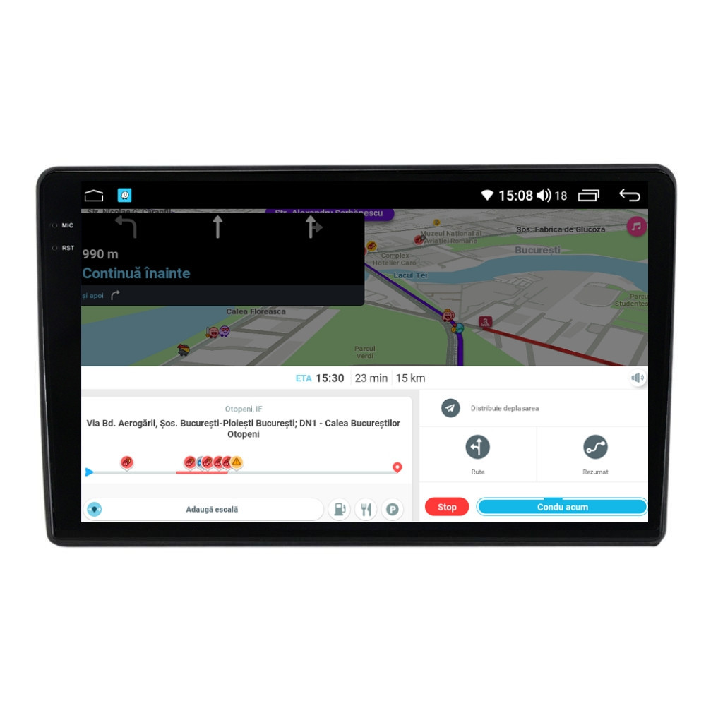 Sistem de operare: Car Android 13 cu meniu în peste 60 de limbi (inclusiv limba română) Procesor: Octa Core UIS7862S 2GHz Memorie internă: 8GB RAM + 128GB stocare (extensibilă prin 3 sloturi USB de maxim 64GB) Display: Touchscreen 10.36 inch QLED 2K 2000x1200, multi-touch, format 16:9, cu margini curbate și tehnologie 2.5D Chipset GPS: Samsung Sirf Star IV cu 48 de canale (antenă GPS inclusă) Fast Boot: Navigația pornește instant în momentul în care se pune contactul Conectivitate: Slot SIM 4G, Wi-Fi Dual Band 2.4Ghz si 5Ghz, Bluetooth, 3 x USB, RCA, AUX Plug & Play: Mufă dedicată, navigaţia preia comenzile de pe volanul maşinii şi nu descarcă bateria acesteia Cooler răcire activă: Ventilatorul integrat menține o temperatură optimă, asigurând astfel navigației o durată de viaţă mai mare Control prin gesturi: Glisezi cu 2 degete în sus sau în jos pentru a modifica volumul sau în lateral pentru schimbarea melodiei Asistent virtual: Poţi controla cu ușurință navigația prin comenzi vocale cu ajutorul asistentului virtual integrat Audio: 4 x 45W + ieşire subwoofer, DTS 4.1 & 5.1, egalizator și procesor de sunet DSP Radio: FM (87.5 - 108.0 Mhz) şi AM (522 - 1620 Khz) cu funcție RDS Dual Zone: Poţi asculta muzică şi folosi aplicaţia preferată de navigare (iGO, Waze, Maps etc.) în acelaşi timp PLUG & PLAY Navigația se potrivește perfect în bord, iar mufa este identică cu cea a maşinii. Nu ai nevoie de altă ramă şi nu trebuie să modifici instalaţia electrică. Comenzile de pe volan rămân funcţionale, iar navigaţia se va opri când iei contactul şi nu va descărca bateria maşinii. În pachet sunt incluse toate cablurile necesare montării navigaţiei, precum şi cele auxiliare (RCA, USB etc.). UNIVERSUL ANDROID ÎN CONFORTUL MAŞINII TALE Aplicaţiile preferate vin acum pe ecranul navigaţiei tale. Poţi instala orice aplicaţie din magazinul Google Play: Waze, Google Maps, YouTube, Spotify, Google Chrome, Instagram, Facebook, WhatsApp etc. Fără a mai avea nevoie de telefon, te poţi strecura prin traficul aglomerat folosind Waze sau Google Maps şi în acelaşi timp poţi asculta muzica preferată sau viziona filmele și videoclipurile favorite pe YouTube, Spotify, Apple Music etc. GPS DUAL ZONE Navigaţia dispune de un modul şi o antenă GPS de calitate superioară, care te localizează cu precizie şi te ajută să ajungi la destinaţie în cel mai scurt timp, fără a avea nevoie de telefon. Dual zone: Poţi asculta muzică în timp ce foloseşti aplicaţia preferată de navigare, vocea aplicaţiei suprapunându-se, atunci când este cazul, peste muzică. COMPATIBILĂ CU ORICE TELEFON Deşi navigaţia dispune de propriul sistem de operare Android care funcţionează independent de telefon, la aceasta se poate conecta orice telefon cu Android sau iPhone prin Bluetooth sau Wi-Fi. Poţi folosi cu uşurinţă aplicațiile instalate pe telefon prin intermediul Android Auto sau Apple CarPlay şi primeşti toate notificările de pe telefon pe ecranul navigaţiei. SLOT SIM 4G, BLUETOOTH, WI-FI ŞI MIRRORLINK INTEGRATE Spune adio amenzilor pentru folosirea telefonului la volan. Poţi descărca agenda telefonică pe navigaţie şi poţi iniţia şi prelua apeluri de pe ecranul navigaţiei, precum şi asculta muzica preferată de pe telefon. Navigaţia se conectează rapid la orice reţea wireless, inclusiv la hotspot-ul telefonului, precum și la internet 4G, introducând o cartelă cu internet în slotul SIM. Cu ajutorul tehnologiei MirrorLink poţi beneficia de funcțiile Android Auto sau Apple CarPlay. MULTIPLE INTERFEȚE DISPONIBILE Interfața navigației se poate schimba cu ușurință, aceasta având 4 teme preinstalate, astfel încat să se plieze pe stilul și gustul tau. De asemenea, o poți personaliza foarte ușor cu alte teme disponibile în aplicații de tip Car Launcher. Nu trebuie să ştii engleză pentru a putea folosi navigaţia. Poţi afişa meniul în peste 60 de limbi, inclusiv română, engleză, spaniolă sau franceză. SUPORT DVR, CAMERĂ MARȘARIER ȘI SENZORI PARCARE AFTERMARKET Niciodată nu a fost atât de simplu să parchezi. Când schimbătorul ajunge în marșarier, pe ecranul navigației se va afișa automat imaginea video din spatele mașinii, împreună cu liniile de ghidaj. Senzorii de parcare, fiind de asemenea afişaţi pe navigaţie, te vor avertiza atât vizual, cât şi acustic. Înregistrarea video realizată de camera de bord DVR te poate scăpa de amenzi sau alte situaţii neplăcute, fiind martorul tău de încredere în cazul producerii unui eveniment nedorit în trafic. SUPORT INTERFAȚĂ OBDII Un adaptor Bluetooth OBDII este de un real ajutor atunci când o eroare apare în bordul maşinii. Cu ajutorul lui poţi citi, interpreta sau șterge eventualele coduri de eroare şi îţi poţi da seama cu uşurinţă ce nu este în regulă cu maşina ta. În plus, poți afișa pe ecranul navigației informații în timp real despre starea mașinii cu ajutorul unor aplicații dedicate precum Torque sau Car Scanner. NAVIGAȚIE CU ANDROID - SISTEMUL COMPLET DE INFOTAINMENT DIN MAȘINA TA
