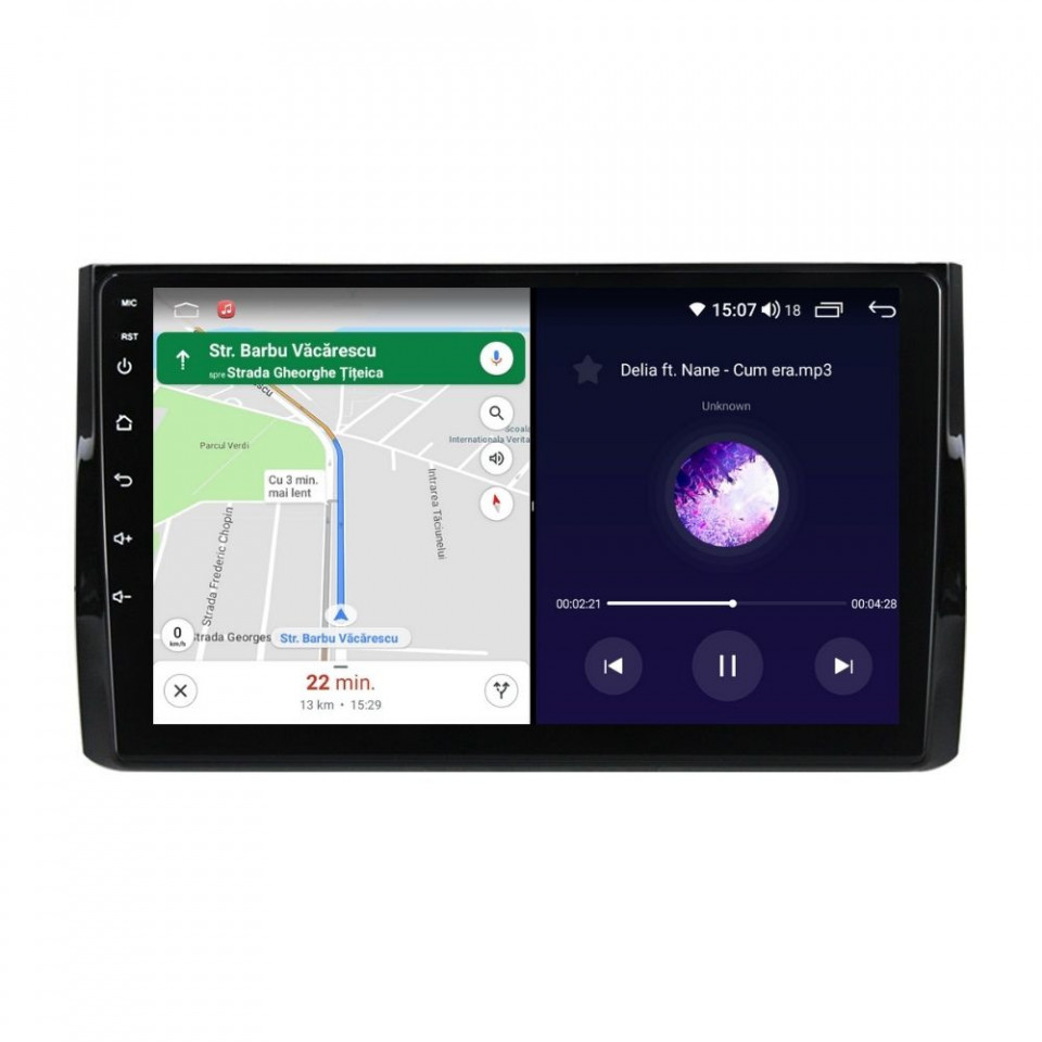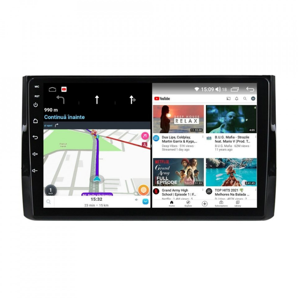 Sistem de operare: Car Android 14 cu meniu în peste 60 de limbi (inclusiv limba română) Procesor: Octa Core UIS7862S 2GHz Memorie internă: 4GB RAM + 32GB stocare (extensibilă prin 3 sloturi USB de maxim 64GB) Display: Touchscreen 10 inch QLED HD 1280x720, multi-touch, format 16:9, cu margini curbate și tehnologie 2.5D Chipset GPS: Samsung Sirf Star IV cu 48 de canale (antenă GPS inclusă) Fast Boot: Navigația pornește instant în momentul în care se pune contactul Conectivitate: Slot SIM 4G, Wi-Fi Dual Band 2.4Ghz si 5Ghz, Bluetooth, 3 x USB, RCA, AUX Plug & Play: Mufă dedicată, navigaţia preia comenzile de pe volanul maşinii şi nu descarcă bateria acesteia Cooler răcire activă: Ventilatorul integrat menține o temperatură optimă, asigurând astfel navigației o durată de viaţă mai mare Audio: 4 x 45W + ieşire subwoofer, egalizator și procesor de sunet DSP Radio: FM (87.5 - 108.0 Mhz) şi AM (522 - 1620 Khz) cu funcție RDS Dual Zone: Poţi asculta muzică şi folosi aplicaţia preferată de navigare (iGO, Waze, Maps etc.) în acelaşi timp PLUG & PLAY Navigația se potrivește perfect în bord, iar mufa este identică cu cea a maşinii. Nu ai nevoie de altă ramă şi nu trebuie să modifici instalaţia electrică. Comenzile de pe volan rămân funcţionale, iar navigaţia se va opri când iei contactul şi nu va descărca bateria maşinii. În pachet sunt incluse toate cablurile necesare montării navigaţiei, precum şi cele auxiliare (RCA, USB etc.). UNIVERSUL ANDROID ÎN CONFORTUL MAŞINII TALE Aplicaţiile preferate vin acum pe ecranul navigaţiei tale. Poţi instala orice aplicaţie din magazinul Google Play: Waze, Google Maps, YouTube, Spotify, Google Chrome, Instagram, Facebook, WhatsApp etc. Fără a mai avea nevoie de telefon, te poţi strecura prin traficul aglomerat folosind Waze sau Google Maps şi în acelaşi timp poţi asculta muzica preferată sau viziona filmele și videoclipurile favorite pe YouTube, Spotify, Apple Music etc. GPS DUAL ZONE Navigaţia dispune de un modul şi o antenă GPS de calitate superioară, care te localizează cu precizie şi te ajută să ajungi la destinaţie în cel mai scurt timp, fără a avea nevoie de telefon. Dual zone: Poţi asculta muzică în timp ce foloseşti aplicaţia preferată de navigare, vocea aplicaţiei suprapunându-se, atunci când este cazul, peste muzică. COMPATIBILĂ CU ORICE TELEFON Deşi navigaţia dispune de propriul sistem de operare Android care funcţionează independent de telefon, la aceasta se poate conecta orice telefon cu Android sau iPhone prin Bluetooth sau Wi-Fi. Poţi folosi cu uşurinţă aplicațiile instalate pe telefon prin intermediul Android Auto sau Apple CarPlay şi primeşti toate notificările de pe telefon pe ecranul navigaţiei. SLOT SIM 4G, BLUETOOTH, WI-FI ŞI MIRRORLINK INTEGRATE Spune adio amenzilor pentru folosirea telefonului la volan. Poţi descărca agenda telefonică pe navigaţie şi poţi iniţia şi prelua apeluri de pe ecranul navigaţiei, precum şi asculta muzica preferată de pe telefon. Navigaţia se conectează rapid la orice reţea wireless, inclusiv la hotspot-ul telefonului, precum și la internet 4G, introducând o cartelă cu internet în slotul SIM. Cu ajutorul tehnologiei MirrorLink poţi beneficia de funcțiile Android Auto sau Apple CarPlay. MULTIPLE INTERFEȚE DISPONIBILE Interfața navigației se poate schimba cu ușurință, aceasta având 4 teme preinstalate, astfel încat să se plieze pe stilul și gustul tau. De asemenea, o poți personaliza foarte ușor cu alte teme disponibile în aplicații de tip Car Launcher. Nu trebuie să ştii engleză pentru a putea folosi navigaţia. Poţi afişa meniul în peste 60 de limbi, inclusiv română, engleză, spaniolă sau franceză. SUPORT DVR, CAMERĂ MARȘARIER ȘI SENZORI PARCARE AFTERMARKET Niciodată nu a fost atât de simplu să parchezi. Când schimbătorul ajunge în marșarier, pe ecranul navigației se va afișa automat imaginea video din spatele mașinii, împreună cu liniile de ghidaj. Senzorii de parcare, fiind de asemenea afişaţi pe navigaţie, te vor avertiza atât vizual, cât şi acustic. Înregistrarea video realizată de camera de bord DVR te poate scăpa de amenzi sau alte situaţii neplăcute, fiind martorul tău de încredere în cazul producerii unui eveniment nedorit în trafic. SUPORT INTERFAȚĂ OBDII Un adaptor Bluetooth OBDII este de un real ajutor atunci când o eroare apare în bordul maşinii. Cu ajutorul lui poţi citi, interpreta sau șterge eventualele coduri de eroare şi îţi poţi da seama cu uşurinţă ce nu este în regulă cu maşina ta. În plus, poți afișa pe ecranul navigației informații în timp real despre starea mașinii cu ajutorul unor aplicații dedicate precum Torque sau Car Scanner. NAVIGAȚIE CU ANDROID - SISTEMUL COMPLET DE INFOTAINMENT DIN MAȘINA TA