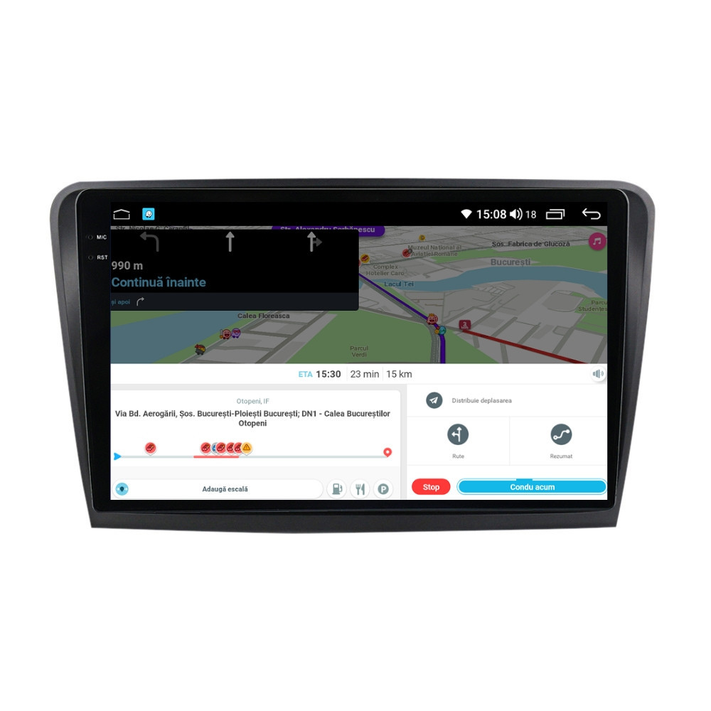 Navigatie dedicata cu Android Skoda Superb II 2008 - 2015, 8GB RAM, Radio GPS Dual Zone, Display 2K QLED 10.36 Touchscreen, Internet Wi-Fi si slot SIM 4G, Bluetooth, MirrorLink, USB, Waze
