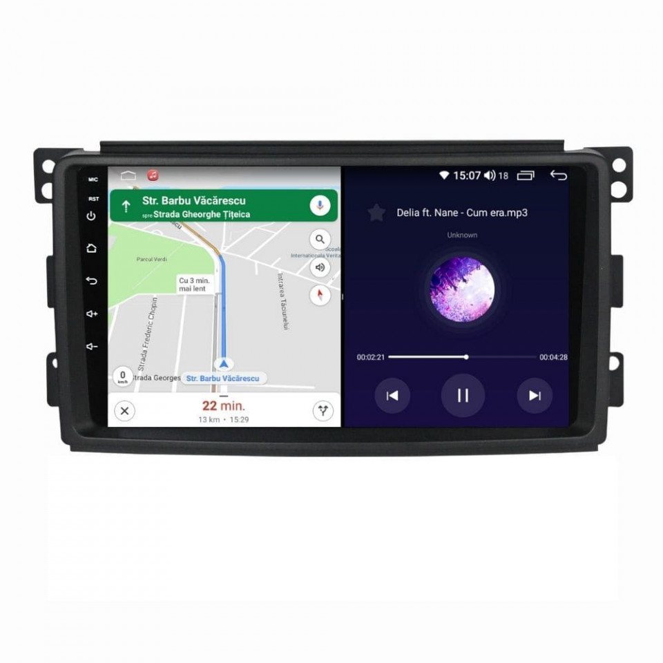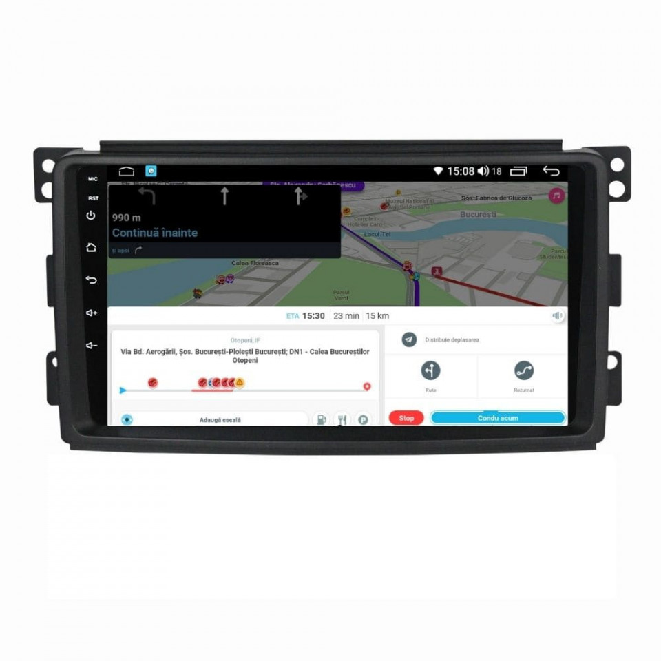 Navigatie dedicata cu Android Smart Fortwo 2007 - 2010, 6GB RAM, Radio GPS Dual Zone, Display HD QLED 9 Touchscreen, Internet Wi-Fi si slot SIM 4G, Bluetooth, MirrorLink, USB, Waze
