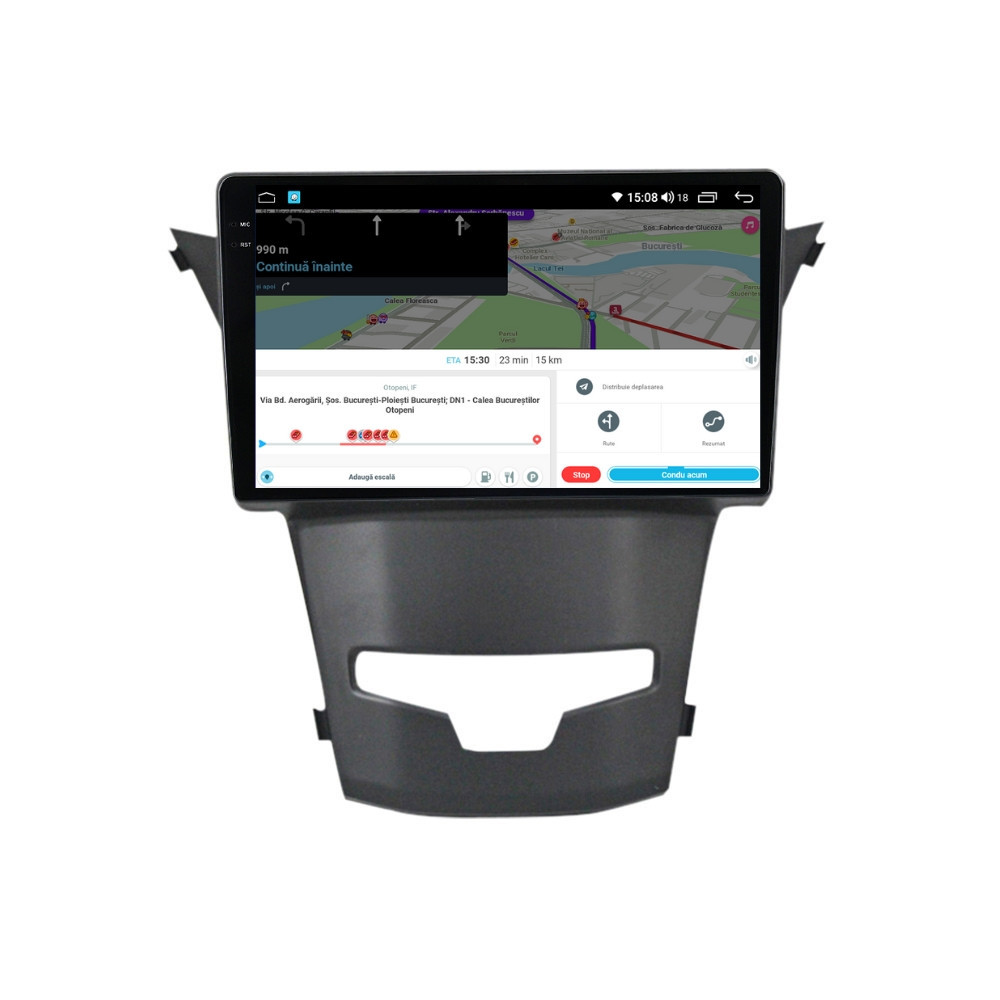 Navigatie dedicata cu Android Ssangyong Korando 2013 - 2019, 4GB RAM, Radio GPS Dual Zone, Display 2K QLED 9.5 Touchscreen, Internet Wi-Fi si slot SIM 4G, Bluetooth, MirrorLink, USB, Waze