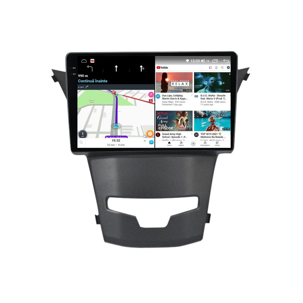 Navigatie dedicata cu Android Ssangyong Korando 2013 - 2019, 8GB RAM, Radio GPS Dual Zone, Display 2K QLED 9.5 Touchscreen, Internet Wi-Fi si slot SIM 4G, Bluetooth, MirrorLink, USB, Waze
