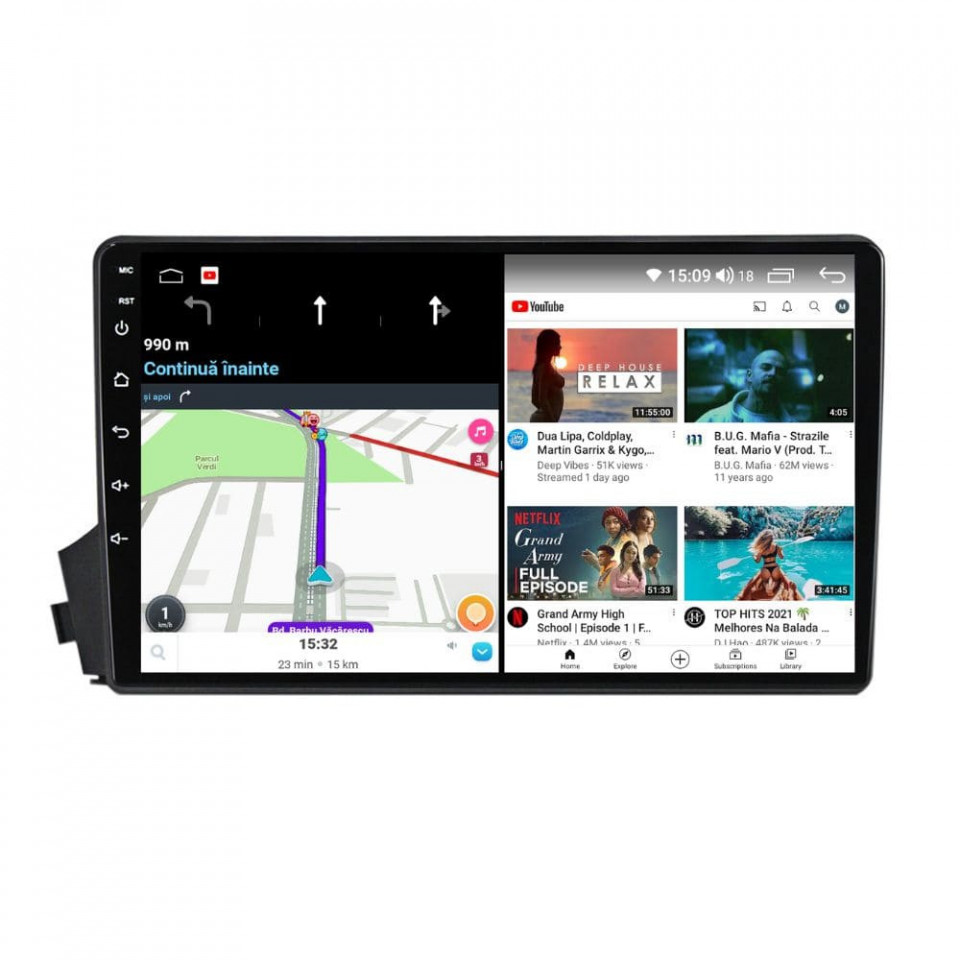 Sistem de operare: Car Android 14 cu meniu în peste 60 de limbi (inclusiv limba română) Procesor: Octa Core UIS7862S 2GHz Memorie internă: 8GB RAM + 128GB stocare (extensibilă prin 3 sloturi USB de maxim 64GB) Display: Touchscreen 9 inch QLED HD 1280x720, multi-touch, format 16:9, cu margini curbate și tehnologie 2.5D Chipset GPS: Samsung Sirf Star IV cu 48 de canale (antenă GPS inclusă) Fast Boot: Navigația pornește instant în momentul în care se pune contactul Conectivitate: Slot SIM 4G, Wi-Fi Dual Band 2.4Ghz si 5Ghz, Bluetooth, 3 x USB, RCA, AUX Plug & Play: Mufă dedicată, navigaţia preia comenzile de pe volanul maşinii şi nu descarcă bateria acesteia Cooler răcire activă: Ventilatorul integrat menține o temperatură optimă, asigurând astfel navigației o durată de viaţă mai mare Audio: 4 x 45W + ieşire subwoofer, egalizator și procesor de sunet DSP Radio: FM (87.5 - 108.0 Mhz) şi AM (522 - 1620 Khz) cu funcție RDS Dual Zone: Poţi asculta muzică şi folosi aplicaţia preferată de navigare (iGO, Waze, Maps etc.) în acelaşi timp PLUG & PLAY Navigația se potrivește perfect în bord, iar mufa este identică cu cea a maşinii. Nu ai nevoie de altă ramă şi nu trebuie să modifici instalaţia electrică. Comenzile de pe volan rămân funcţionale, iar navigaţia se va opri când iei contactul şi nu va descărca bateria maşinii. În pachet sunt incluse toate cablurile necesare montării navigaţiei, precum şi cele auxiliare (RCA, USB etc.). UNIVERSUL ANDROID ÎN CONFORTUL MAŞINII TALE Aplicaţiile preferate vin acum pe ecranul navigaţiei tale. Poţi instala orice aplicaţie din magazinul Google Play: Waze, Google Maps, YouTube, Spotify, Google Chrome, Instagram, Facebook, WhatsApp etc. Fără a mai avea nevoie de telefon, te poţi strecura prin traficul aglomerat folosind Waze sau Google Maps şi în acelaşi timp poţi asculta muzica preferată sau viziona filmele și videoclipurile favorite pe YouTube, Spotify, Apple Music etc. GPS DUAL ZONE Navigaţia dispune de un modul şi o antenă GPS de calitate superioară, care te localizează cu precizie şi te ajută să ajungi la destinaţie în cel mai scurt timp, fără a avea nevoie de telefon. Dual zone: Poţi asculta muzică în timp ce foloseşti aplicaţia preferată de navigare, vocea aplicaţiei suprapunându-se, atunci când este cazul, peste muzică. COMPATIBILĂ CU ORICE TELEFON Deşi navigaţia dispune de propriul sistem de operare Android care funcţionează independent de telefon, la aceasta se poate conecta orice telefon cu Android sau iPhone prin Bluetooth sau Wi-Fi. Poţi folosi cu uşurinţă aplicațiile instalate pe telefon prin intermediul Android Auto sau Apple CarPlay şi primeşti toate notificările de pe telefon pe ecranul navigaţiei. SLOT SIM 4G, BLUETOOTH, WI-FI ŞI MIRRORLINK INTEGRATE Spune adio amenzilor pentru folosirea telefonului la volan. Poţi descărca agenda telefonică pe navigaţie şi poţi iniţia şi prelua apeluri de pe ecranul navigaţiei, precum şi asculta muzica preferată de pe telefon. Navigaţia se conectează rapid la orice reţea wireless, inclusiv la hotspot-ul telefonului, precum și la internet 4G, introducând o cartelă cu internet în slotul SIM. Cu ajutorul tehnologiei MirrorLink poţi beneficia de funcțiile Android Auto sau Apple CarPlay. MULTIPLE INTERFEȚE DISPONIBILE Interfața navigației se poate schimba cu ușurință, aceasta având 4 teme preinstalate, astfel încat să se plieze pe stilul și gustul tau. De asemenea, o poți personaliza foarte ușor cu alte teme disponibile în aplicații de tip Car Launcher. Nu trebuie să ştii engleză pentru a putea folosi navigaţia. Poţi afişa meniul în peste 60 de limbi, inclusiv română, engleză, spaniolă sau franceză. SUPORT DVR, CAMERĂ MARȘARIER ȘI SENZORI PARCARE AFTERMARKET Niciodată nu a fost atât de simplu să parchezi. Când schimbătorul ajunge în marșarier, pe ecranul navigației se va afișa automat imaginea video din spatele mașinii, împreună cu liniile de ghidaj. Senzorii de parcare, fiind de asemenea afişaţi pe navigaţie, te vor avertiza atât vizual, cât şi acustic. Înregistrarea video realizată de camera de bord DVR te poate scăpa de amenzi sau alte situaţii neplăcute, fiind martorul tău de încredere în cazul producerii unui eveniment nedorit în trafic. SUPORT INTERFAȚĂ OBDII Un adaptor Bluetooth OBDII este de un real ajutor atunci când o eroare apare în bordul maşinii. Cu ajutorul lui poţi citi, interpreta sau șterge eventualele coduri de eroare şi îţi poţi da seama cu uşurinţă ce nu este în regulă cu maşina ta. În plus, poți afișa pe ecranul navigației informații în timp real despre starea mașinii cu ajutorul unor aplicații dedicate precum Torque sau Car Scanner. NAVIGAȚIE CU ANDROID - SISTEMUL COMPLET DE INFOTAINMENT DIN MAȘINA TA