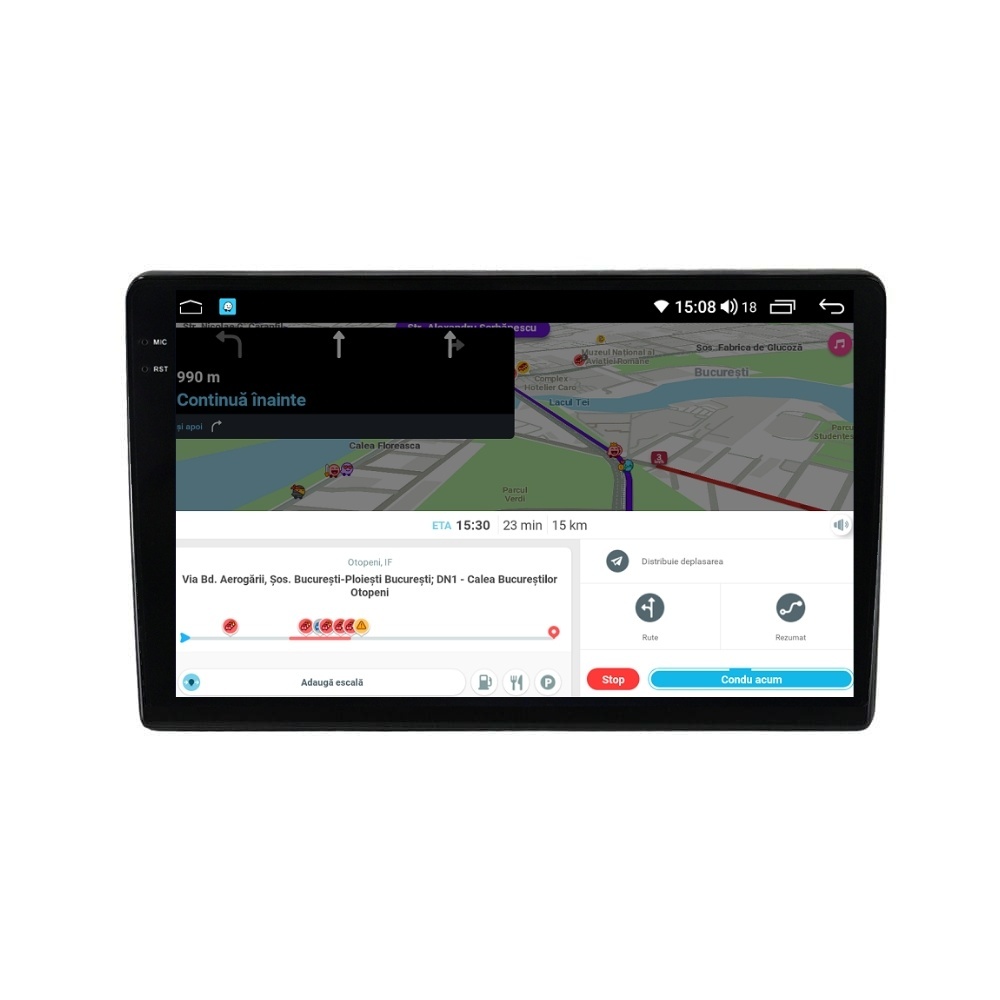 Sistem de operare: Car Android 14 cu meniu în peste 60 de limbi (inclusiv limba română) Procesor: Octa Core UIS7862S 2GHz Memorie internă: 4GB RAM + 32GB stocare (extensibilă prin 3 sloturi USB de maxim 64GB) Display: Touchscreen 9.5 inch QLED 2K 2000x1200, multi-touch, format 16:9, cu margini curbate și tehnologie 2.5D Chipset GPS: Samsung Sirf Star IV cu 48 de canale (antenă GPS inclusă) Fast Boot: Navigația pornește instant în momentul în care se pune contactul Conectivitate: Slot SIM 4G, Wi-Fi Dual Band 2.4Ghz si 5Ghz, Bluetooth, 3 x USB, RCA, AUX Plug & Play: Mufă dedicată, navigaţia preia comenzile de pe volanul maşinii şi nu descarcă bateria acesteia Cooler răcire activă: Ventilatorul integrat menține o temperatură optimă, asigurând astfel navigației o durată de viaţă mai mare Control prin gesturi: Glisezi cu 2 degete în sus sau în jos pentru a modifica volumul sau în lateral pentru schimbarea melodiei Audio: 4 x 45W + ieşire subwoofer, egalizator și procesor de sunet DSP Radio: FM (87.5 - 108.0 Mhz) şi AM (522 - 1620 Khz) cu funcție RDS Dual Zone: Poţi asculta muzică şi folosi aplicaţia preferată de navigare (iGO, Waze, Maps etc.) în acelaşi timp PLUG & PLAY Navigația se potrivește perfect în bord, iar mufa este identică cu cea a maşinii. Nu ai nevoie de altă ramă şi nu trebuie să modifici instalaţia electrică. Comenzile de pe volan rămân funcţionale, iar navigaţia se va opri când iei contactul şi nu va descărca bateria maşinii. În pachet sunt incluse toate cablurile necesare montării navigaţiei, precum şi cele auxiliare (RCA, USB etc.). UNIVERSUL ANDROID ÎN CONFORTUL MAŞINII TALE Aplicaţiile preferate vin acum pe ecranul navigaţiei tale. Poţi instala orice aplicaţie din magazinul Google Play: Waze, Google Maps, YouTube, Spotify, Google Chrome, Instagram, Facebook, WhatsApp etc. Fără a mai avea nevoie de telefon, te poţi strecura prin traficul aglomerat folosind Waze sau Google Maps şi în acelaşi timp poţi asculta muzica preferată sau viziona filmele și videoclipurile favorite pe YouTube, Spotify, Apple Music etc. GPS DUAL ZONE Navigaţia dispune de un modul şi o antenă GPS de calitate superioară, care te localizează cu precizie şi te ajută să ajungi la destinaţie în cel mai scurt timp, fără a avea nevoie de telefon. Dual zone: Poţi asculta muzică în timp ce foloseşti aplicaţia preferată de navigare, vocea aplicaţiei suprapunându-se, atunci când este cazul, peste muzică. COMPATIBILĂ CU ORICE TELEFON Deşi navigaţia dispune de propriul sistem de operare Android care funcţionează independent de telefon, la aceasta se poate conecta orice telefon cu Android sau iPhone prin Bluetooth sau Wi-Fi. Poţi folosi cu uşurinţă aplicațiile instalate pe telefon prin intermediul Android Auto sau Apple CarPlay şi primeşti toate notificările de pe telefon pe ecranul navigaţiei. SLOT SIM 4G, BLUETOOTH, WI-FI ŞI MIRRORLINK INTEGRATE Spune adio amenzilor pentru folosirea telefonului la volan. Poţi descărca agenda telefonică pe navigaţie şi poţi iniţia şi prelua apeluri de pe ecranul navigaţiei, precum şi asculta muzica preferată de pe telefon. Navigaţia se conectează rapid la orice reţea wireless, inclusiv la hotspot-ul telefonului, precum și la internet 4G, introducând o cartelă cu internet în slotul SIM. Cu ajutorul tehnologiei MirrorLink poţi beneficia de funcțiile Android Auto sau Apple CarPlay. MULTIPLE INTERFEȚE DISPONIBILE Interfața navigației se poate schimba cu ușurință, aceasta având 4 teme preinstalate, astfel încat să se plieze pe stilul și gustul tau. De asemenea, o poți personaliza foarte ușor cu alte teme disponibile în aplicații de tip Car Launcher. Nu trebuie să ştii engleză pentru a putea folosi navigaţia. Poţi afişa meniul în peste 60 de limbi, inclusiv română, engleză, spaniolă sau franceză. SUPORT DVR, CAMERĂ MARȘARIER ȘI SENZORI PARCARE AFTERMARKET Niciodată nu a fost atât de simplu să parchezi. Când schimbătorul ajunge în marșarier, pe ecranul navigației se va afișa automat imaginea video din spatele mașinii, împreună cu liniile de ghidaj. Senzorii de parcare, fiind de asemenea afişaţi pe navigaţie, te vor avertiza atât vizual, cât şi acustic. Înregistrarea video realizată de camera de bord DVR te poate scăpa de amenzi sau alte situaţii neplăcute, fiind martorul tău de încredere în cazul producerii unui eveniment nedorit în trafic. SUPORT INTERFAȚĂ OBDII Un adaptor Bluetooth OBDII este de un real ajutor atunci când o eroare apare în bordul maşinii. Cu ajutorul lui poţi citi, interpreta sau șterge eventualele coduri de eroare şi îţi poţi da seama cu uşurinţă ce nu este în regulă cu maşina ta. În plus, poți afișa pe ecranul navigației informații în timp real despre starea mașinii cu ajutorul unor aplicații dedicate precum Torque sau Car Scanner. NAVIGAȚIE CU ANDROID - SISTEMUL COMPLET DE INFOTAINMENT DIN MAȘINA TA