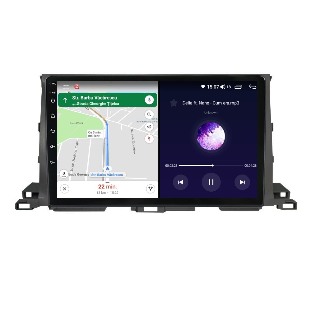 Navigatie dedicata cu Android Toyota Highlander 2013 - 2021, 8GB RAM, Radio GPS Dual Zone, Display HD QLED 10 Touchscreen, Internet Wi-Fi si slot SIM 4G, Bluetooth, MirrorLink, USB, Waze