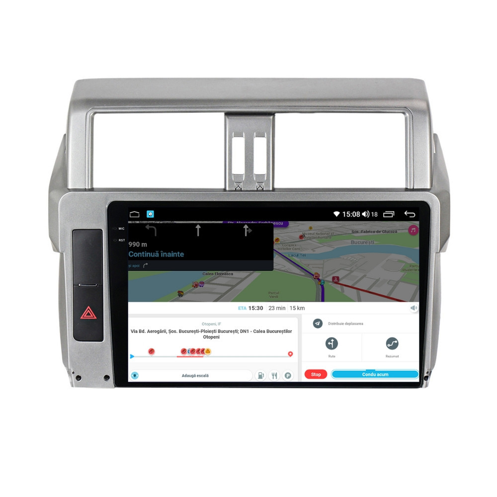 Navigatie dedicata cu Android Toyota Land Cruiser Prado J150 2013 - 2017, 8GB RAM, Radio GPS Dual Zone, Display 2K QLED 10.36 Touchscreen, Internet Wi-Fi si slot SIM 4G, Bluetooth, MirrorLink, USB, Waze