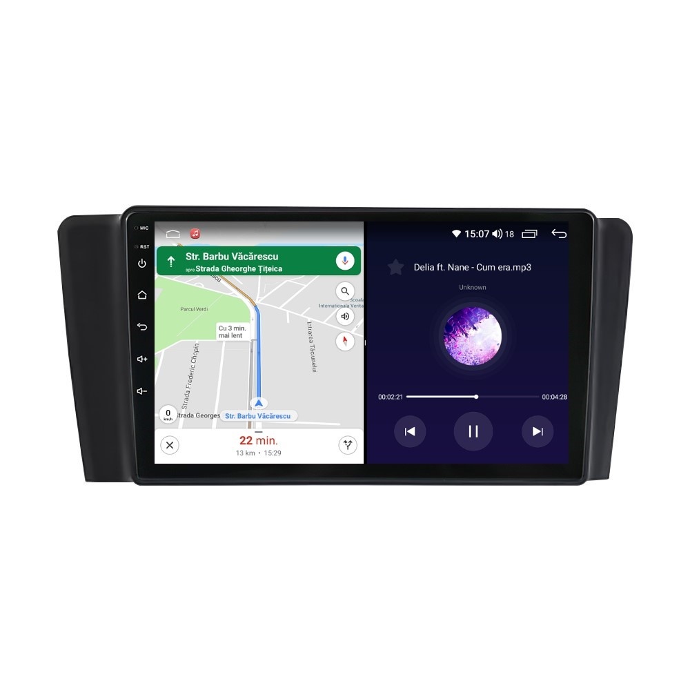 Sistem de operare: Car Android 14 cu meniu în peste 60 de limbi (inclusiv limba română) Procesor: Octa Core UIS7862S 2GHz Memorie internă: 4GB RAM + 32GB stocare (extensibilă prin 3 sloturi USB de maxim 64GB) Display: Touchscreen 9 inch QLED HD 1280x720, multi-touch, format 16:9, cu margini curbate și tehnologie 2.5D Chipset GPS: Samsung Sirf Star IV cu 48 de canale (antenă GPS inclusă) Fast Boot: Navigația pornește instant în momentul în care se pune contactul Conectivitate: Slot SIM 4G, Wi-Fi Dual Band 2.4Ghz si 5Ghz, Bluetooth, 3 x USB, RCA, AUX Plug & Play: Mufă dedicată, navigaţia preia comenzile de pe volanul maşinii şi nu descarcă bateria acesteia Cooler răcire activă: Ventilatorul integrat menține o temperatură optimă, asigurând astfel navigației o durată de viaţă mai mare Audio: 4 x 45W + ieşire subwoofer, egalizator și procesor de sunet DSP Radio: FM (87.5 - 108.0 Mhz) şi AM (522 - 1620 Khz) cu funcție RDS Dual Zone: Poţi asculta muzică şi folosi aplicaţia preferată de navigare (iGO, Waze, Maps etc.) în acelaşi timp PLUG & PLAY Navigația se potrivește perfect în bord, iar mufa este identică cu cea a maşinii. Nu ai nevoie de altă ramă şi nu trebuie să modifici instalaţia electrică. Comenzile de pe volan rămân funcţionale, iar navigaţia se va opri când iei contactul şi nu va descărca bateria maşinii. În pachet sunt incluse toate cablurile necesare montării navigaţiei, precum şi cele auxiliare (RCA, USB etc.). UNIVERSUL ANDROID ÎN CONFORTUL MAŞINII TALE Aplicaţiile preferate vin acum pe ecranul navigaţiei tale. Poţi instala orice aplicaţie din magazinul Google Play: Waze, Google Maps, YouTube, Spotify, Google Chrome, Instagram, Facebook, WhatsApp etc. Fără a mai avea nevoie de telefon, te poţi strecura prin traficul aglomerat folosind Waze sau Google Maps şi în acelaşi timp poţi asculta muzica preferată sau viziona filmele și videoclipurile favorite pe YouTube, Spotify, Apple Music etc. GPS DUAL ZONE Navigaţia dispune de un modul şi o antenă GPS de calitate superioară, care te localizează cu precizie şi te ajută să ajungi la destinaţie în cel mai scurt timp, fără a avea nevoie de telefon. Dual zone: Poţi asculta muzică în timp ce foloseşti aplicaţia preferată de navigare, vocea aplicaţiei suprapunându-se, atunci când este cazul, peste muzică. COMPATIBILĂ CU ORICE TELEFON Deşi navigaţia dispune de propriul sistem de operare Android care funcţionează independent de telefon, la aceasta se poate conecta orice telefon cu Android sau iPhone prin Bluetooth sau Wi-Fi. Poţi folosi cu uşurinţă aplicațiile instalate pe telefon prin intermediul Android Auto sau Apple CarPlay şi primeşti toate notificările de pe telefon pe ecranul navigaţiei. SLOT SIM 4G, BLUETOOTH, WI-FI ŞI MIRRORLINK INTEGRATE Spune adio amenzilor pentru folosirea telefonului la volan. Poţi descărca agenda telefonică pe navigaţie şi poţi iniţia şi prelua apeluri de pe ecranul navigaţiei, precum şi asculta muzica preferată de pe telefon. Navigaţia se conectează rapid la orice reţea wireless, inclusiv la hotspot-ul telefonului, precum și la internet 4G, introducând o cartelă cu internet în slotul SIM. Cu ajutorul tehnologiei MirrorLink poţi beneficia de funcțiile Android Auto sau Apple CarPlay. MULTIPLE INTERFEȚE DISPONIBILE Interfața navigației se poate schimba cu ușurință, aceasta având 4 teme preinstalate, astfel încat să se plieze pe stilul și gustul tau. De asemenea, o poți personaliza foarte ușor cu alte teme disponibile în aplicații de tip Car Launcher. Nu trebuie să ştii engleză pentru a putea folosi navigaţia. Poţi afişa meniul în peste 60 de limbi, inclusiv română, engleză, spaniolă sau franceză. SUPORT DVR, CAMERĂ MARȘARIER ȘI SENZORI PARCARE AFTERMARKET Niciodată nu a fost atât de simplu să parchezi. Când schimbătorul ajunge în marșarier, pe ecranul navigației se va afișa automat imaginea video din spatele mașinii, împreună cu liniile de ghidaj. Senzorii de parcare, fiind de asemenea afişaţi pe navigaţie, te vor avertiza atât vizual, cât şi acustic. Înregistrarea video realizată de camera de bord DVR te poate scăpa de amenzi sau alte situaţii neplăcute, fiind martorul tău de încredere în cazul producerii unui eveniment nedorit în trafic. SUPORT INTERFAȚĂ OBDII Un adaptor Bluetooth OBDII este de un real ajutor atunci când o eroare apare în bordul maşinii. Cu ajutorul lui poţi citi, interpreta sau șterge eventualele coduri de eroare şi îţi poţi da seama cu uşurinţă ce nu este în regulă cu maşina ta. În plus, poți afișa pe ecranul navigației informații în timp real despre starea mașinii cu ajutorul unor aplicații dedicate precum Torque sau Car Scanner. NAVIGAȚIE CU ANDROID - SISTEMUL COMPLET DE INFOTAINMENT DIN MAȘINA TA