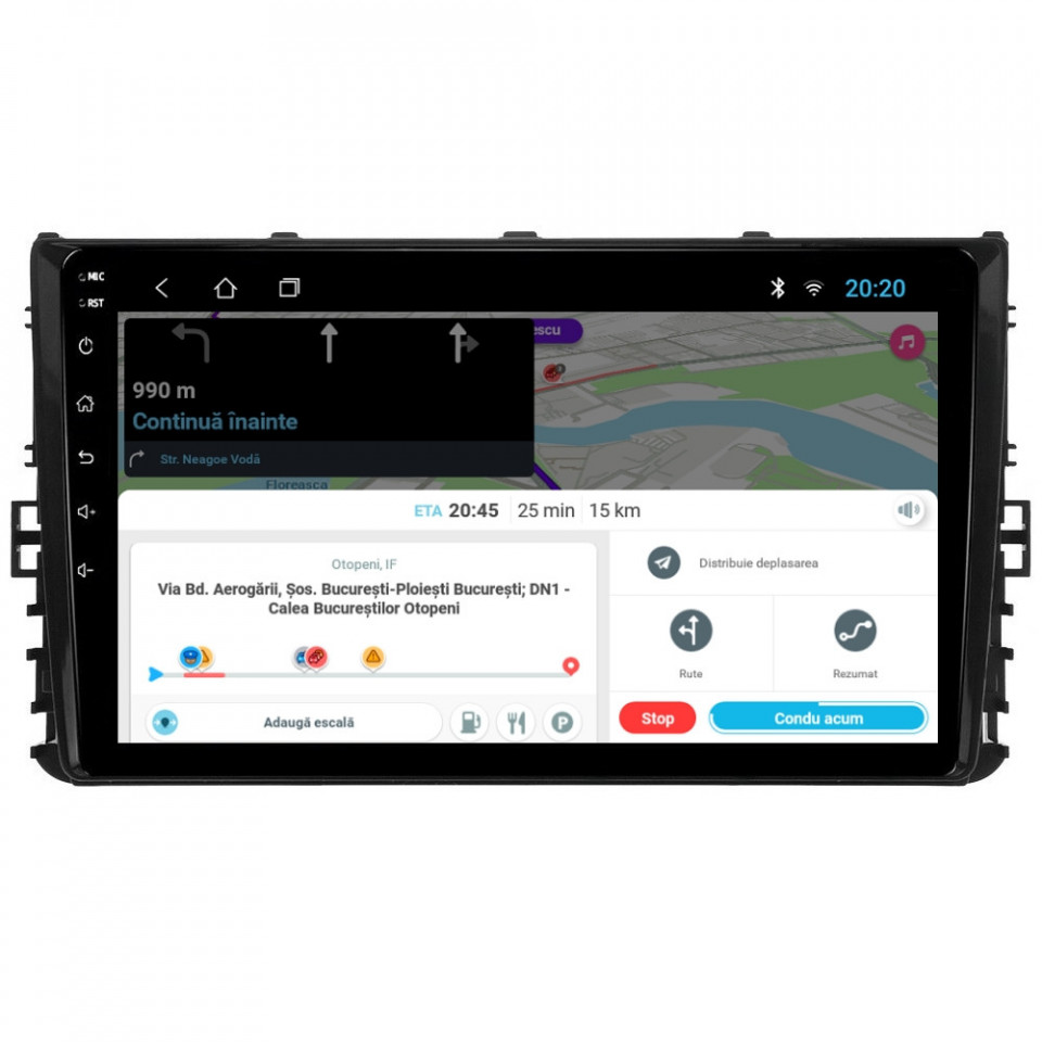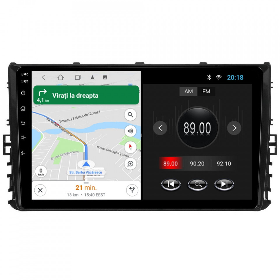 Sistem de operare: Car Android 14 cu meniu în peste 60 de limbi (inclusiv limba română) Procesor: Quad Core ARM Cortex-A7 1.3Ghz Memorie internă: 1GB RAM + 32GB stocare (extensibilă prin 2 sloturi USB de maxim 64GB) Display: Touchscreen 9 inch IPS HD 1280x720, multi-touch, format 16:9, cu margini curbate și tehnologie 2.5D Chipset GPS: Samsung Sirf Star IV cu 48 de canale (antenă GPS inclusă) Conectivitate: Wi-Fi, Bluetooth, 2 x USB, RCA, AUX Plug & Play: Mufă dedicată, navigaţia preia comenzile de pe volanul maşinii şi nu descarcă bateria acesteia Cooler răcire activă: Ventilatorul integrat menține o temperatură optimă, asigurând astfel navigației o durată de viaţă mai mare Audio: 4 x 45W + ieşire subwoofer Radio: FM 87.5 - 108.0 Mhz Dual Zone: Poţi asculta muzică şi folosi aplicaţia preferată de navigare (iGO, Waze, Maps etc.) în acelaşi timp PLUG & PLAY Navigația se potrivește perfect în bord, iar mufa este identică cu cea a maşinii. Nu ai nevoie de altă ramă şi nu trebuie să modifici instalaţia electrică. Comenzile de pe volan rămân funcţionale, iar navigaţia se va opri când iei contactul şi nu va descărca bateria maşinii. În pachet sunt incluse toate cablurile necesare montării navigaţiei, precum şi cele auxiliare (RCA, USB etc.). UNIVERSUL ANDROID ÎN CONFORTUL MAŞINII TALE Aplicaţiile preferate vin acum pe ecranul navigaţiei tale. Poţi instala orice aplicaţie din magazinul Google Play: Waze, Google Maps, YouTube, Spotify, Google Chrome, Instagram, Facebook, WhatsApp etc. Fără a mai avea nevoie de telefon, te poţi strecura prin traficul aglomerat folosind Waze sau Google Maps şi în acelaşi timp poţi asculta muzica preferată sau viziona filmele și videoclipurile favorite pe YouTube, Spotify, Apple Music etc. GPS DUAL ZONE Navigaţia dispune de un modul şi o antenă GPS de calitate superioară, care te localizează cu precizie şi te ajută să ajungi la destinaţie în cel mai scurt timp, fără a avea nevoie de telefon. Dual zone: Poţi asculta muzică în timp ce foloseşti aplicaţia preferată de navigare, vocea aplicaţiei suprapunându-se, atunci când este cazul, peste muzică. COMPATIBILĂ CU ORICE TELEFON Deşi navigaţia dispune de propriul sistem de operare Android care funcţionează independent de telefon, la aceasta se poate conecta orice telefon cu Android sau iPhone prin Bluetooth sau Wi-Fi. Poţi folosi cu uşurinţă orice aplicaţie instalată pe telefon fără a o instala şi pe navigaţie şi primeşti toate notificările de pe telefon direct pe ecranul navigaţiei. BLUETOOTH, WI-FI ŞI MIRRORLINK INTEGRATE Spune adio amenzilor pentru folosirea telefonului la volan. Poţi descărca contactele din telefon pe navigaţie şi poţi iniţia şi prelua apeluri direct de pe ecranul navigaţiei, precum şi asculta muzica preferată de pe telefon. Navigaţia se conectează rapid la orice reţea wireless, inclusiv la hotspot-ul telefonului, iar cu ajutorul tehnologiei MirrorLink poţi oglindi imaginea telefonului pe navigaţie. MULTIPLE INTERFEȚE DISPONIBILE Interfața navigației se poate schimba cu ușurință, aceasta având 4 teme preinstalate, astfel încat să se plieze pe stilul și gustul tau. De asemenea, o poți personaliza foarte ușor cu alte teme disponibile în aplicații de tip Car Launcher. Nu trebuie să ştii engleză pentru a putea folosi navigaţia. Poţi afişa meniul în peste 60 de limbi, inclusiv română, engleză, spaniolă sau franceză. SUPORT DVR, CAMERĂ MARȘARIER ȘI SENZORI PARCARE AFTERMARKET Niciodată nu a fost atât de simplu să parchezi. Când schimbătorul ajunge în marșarier, pe ecranul navigației se va afișa automat imaginea video din spatele mașinii, împreună cu liniile de ghidaj. Senzorii de parcare, fiind de asemenea afişaţi pe navigaţie, te vor avertiza atât vizual, cât şi acustic. Înregistrarea video realizată de camera de bord DVR te poate scăpa de amenzi sau alte situaţii neplăcute, fiind martorul tău de încredere în cazul producerii unui eveniment nedorit în trafic. SUPORT INTERFAȚĂ OBDII Un adaptor Bluetooth OBDII este de un real ajutor atunci când o eroare apare în bordul maşinii. Cu ajutorul lui poţi citi, interpreta sau șterge eventualele coduri de eroare şi îţi poţi da seama cu uşurinţă ce nu este în regulă cu maşina ta. În plus, poți afișa pe ecranul navigației informații în timp real despre starea mașinii cu ajutorul unor aplicații dedicate precum Torque sau Car Scanner. NAVIGAȚIE CU ANDROID - SISTEMUL COMPLET DE INFOTAINMENT DIN MAȘINA TA