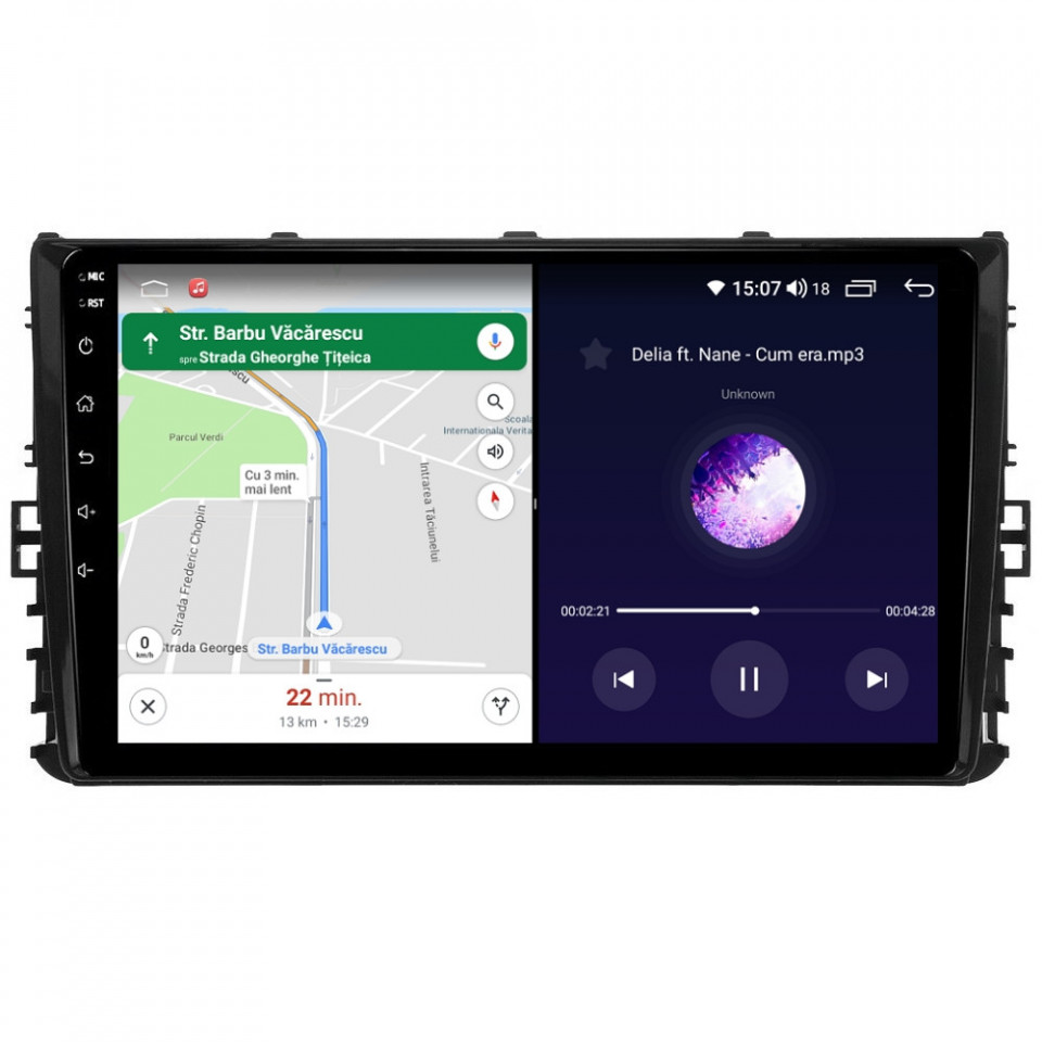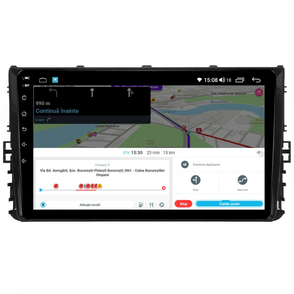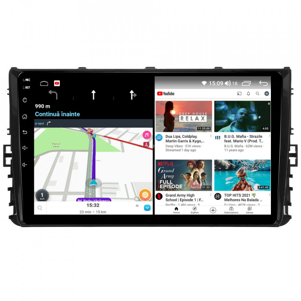 Navigatie dedicata cu Android VW T-Cross dupa 2018, 4GB RAM, Radio GPS Dual Zone, Display HD QLED 9 Touchscreen, Internet Wi-Fi si slot SIM 4G, Bluetooth, MirrorLink, USB, Waze