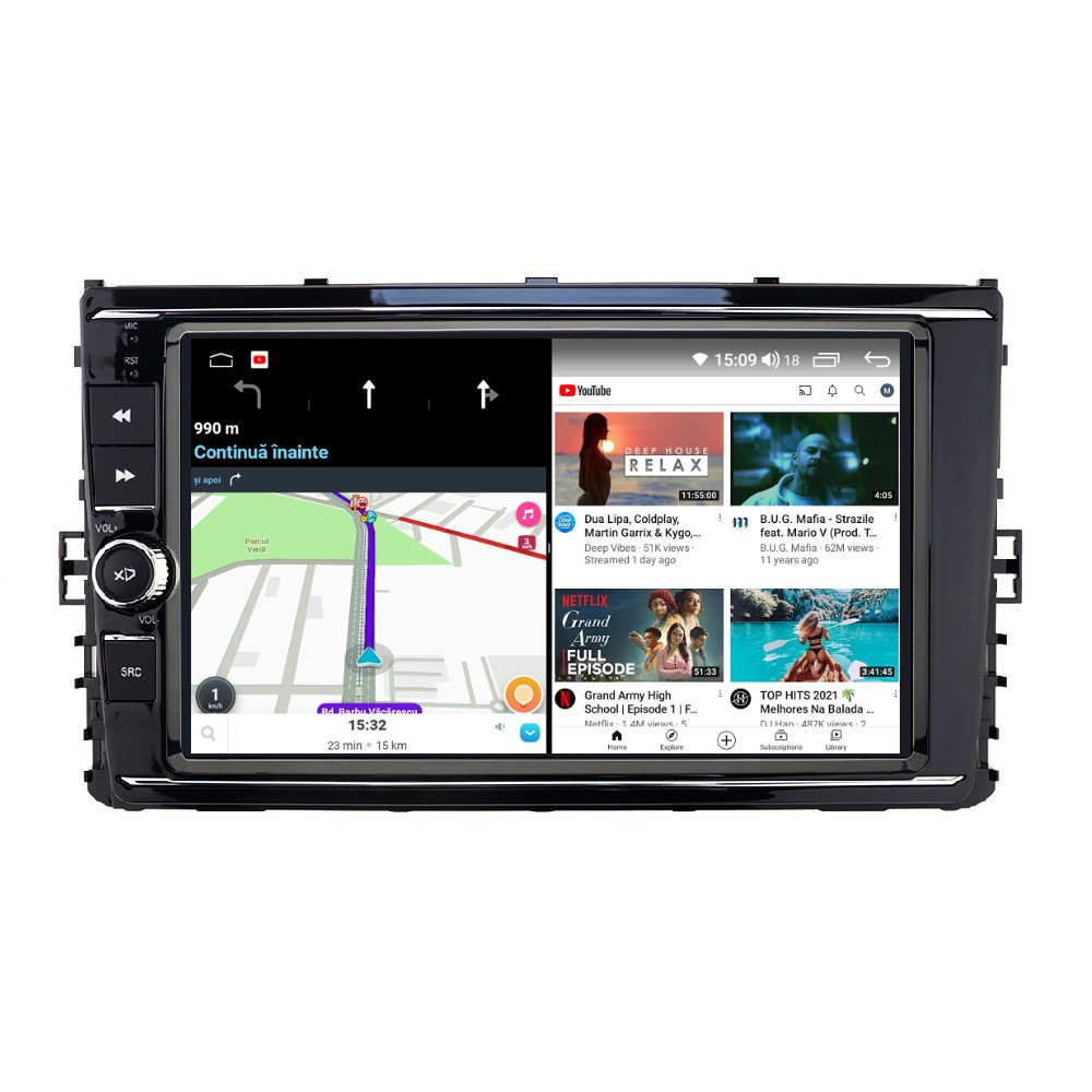 Navigatie dedicata cu Android VW Taigo dupa 2021, 6GB RAM, Radio GPS Dual Zone, Display HD QLED 9 Touchscreen, Internet Wi-Fi si slot SIM 4G, Bluetooth, MirrorLink, USB, Waze