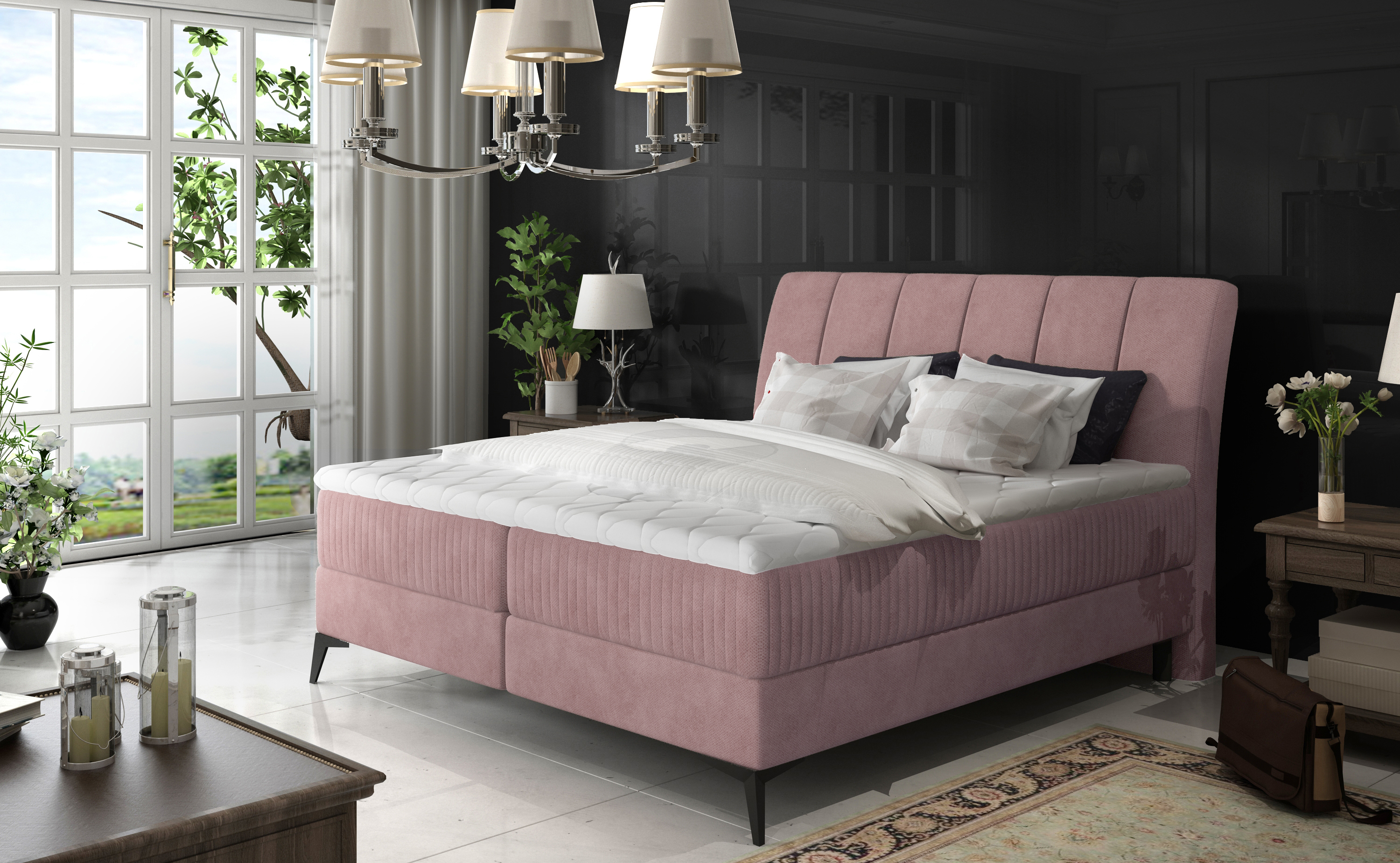 Patul boxspring Aderito este o combinatie perfecta de design modern si rafinat, ideal pentru dormitoarele stilate. Acesta vine cu o tablie inalta, usor inclinata, si picioare metalice negre de 13 cm, care adauga o nota de eleganta. Tapitat intr-o tesatura moale, placuta la atingere si rezistenta, patul este disponibil intr-o gama larga de culori, permitandu-ti sa-l personalizezi in functie de stilul dormitorului tau, fie ca optezi pentru un decor scandinav, glamour sau retro. Dimensiun