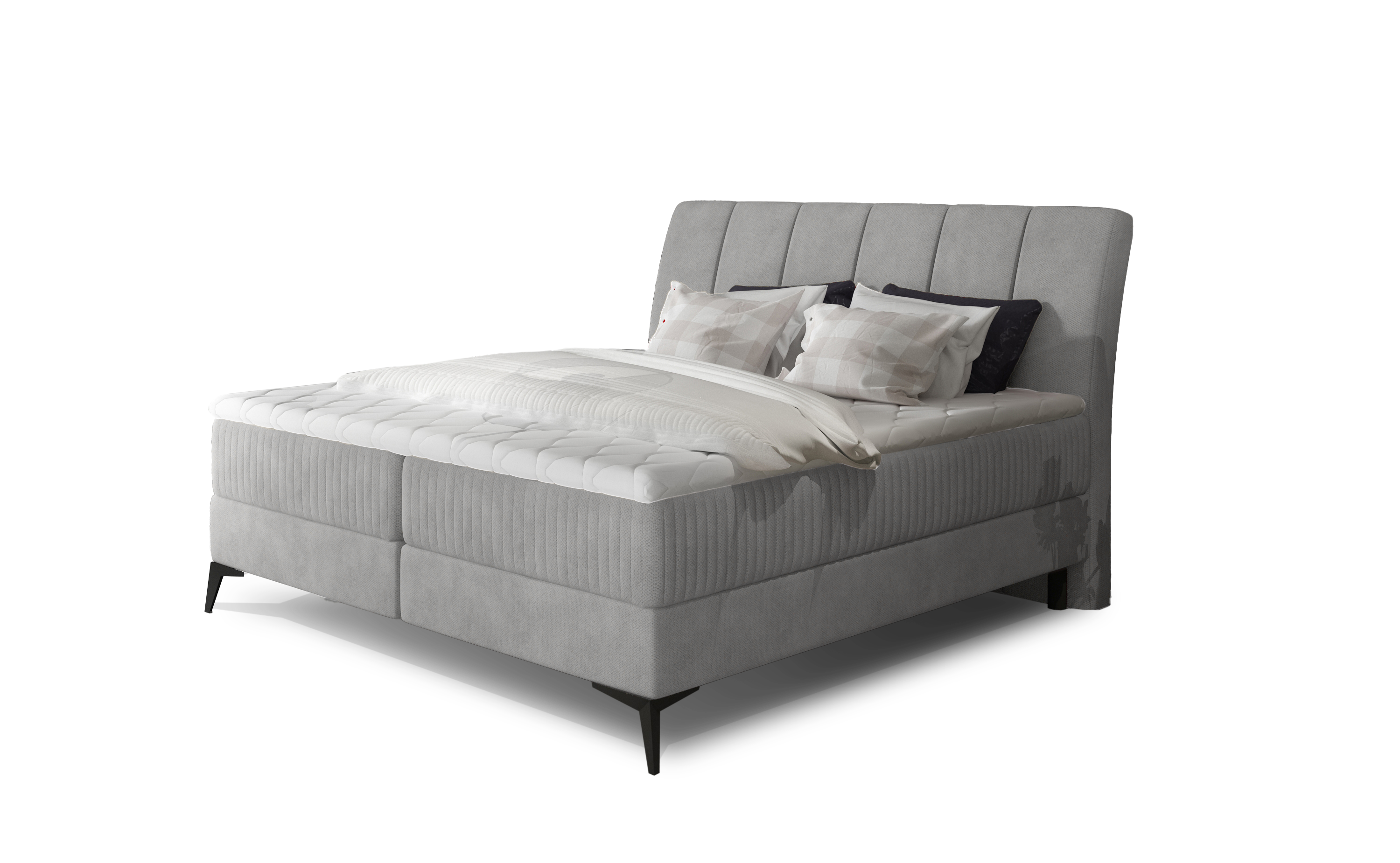 Patul boxspring Aderito este o combinatie perfecta de design modern si rafinat, ideal pentru dormitoarele stilate. Acesta vine cu o tablie inalta, usor inclinata, si picioare metalice negre de 13 cm, care adauga o nota de eleganta. Tapitat intr-o tesatura moale, placuta la atingere si rezistenta, patul este disponibil intr-o gama larga de culori, permitandu-ti sa-l personalizezi in functie de stilul dormitorului tau, fie ca optezi pentru un decor scandinav, glamour sau retro. Dimensiun