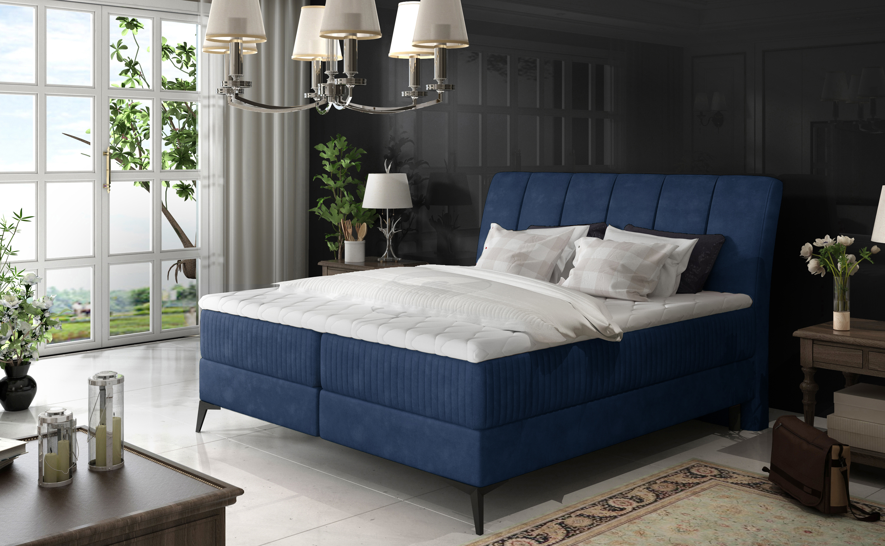 Patul boxspring Aderito este o combinatie perfecta de design modern si rafinat, ideal pentru dormitoarele stilate. Acesta vine cu o tablie inalta, usor inclinata, si picioare metalice negre de 13 cm, care adauga o nota de eleganta. Tapitat intr-o tesatura moale, placuta la atingere si rezistenta, patul este disponibil intr-o gama larga de culori, permitandu-ti sa-l personalizezi in functie de stilul dormitorului tau, fie ca optezi pentru un decor scandinav, glamour sau retro. Dimensiun