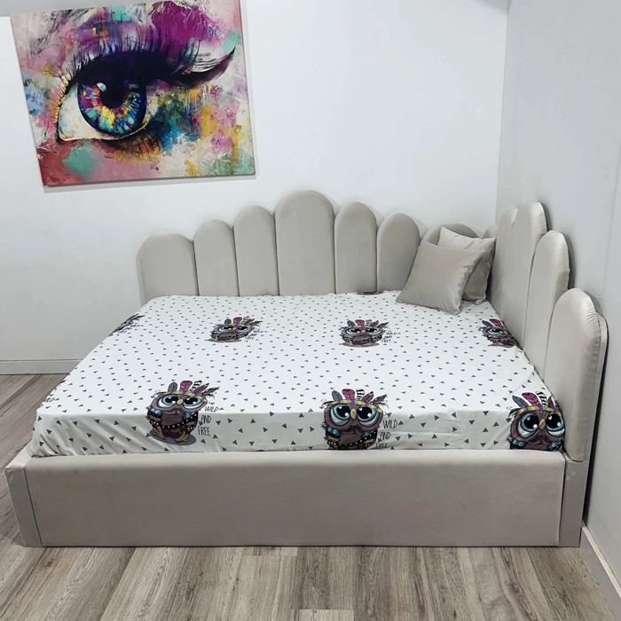 Pat de colt tapitat din catifea bej - model LUNA