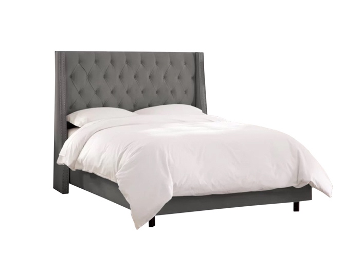 Pat cu somiera rabatabila, rama metalica si lamele din lemn, tapiterie din stofa de calitate superioara, tablie inalta model Chesterfield, cuie ornamentale vintage aplicate manual, nasturi imbracati in material (la comanda nasturii pot fi si din sticla),structura lemn si PAL. Acest pat tapitat defineste decorul dormitorului dumneavoastra si ii confera o nota eleganta prin modelul Chesterfield regasit pe tablia inalta lucrata manual, cu nasturi imbracati in material. Liniile clasice se