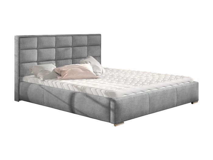 Pat tapitat material plusat, dimensiune totala 220 x 175 cm, model tip cusatura pe tablia inalta, structura lemn si PAL, picioare crom, lada pentru depozitare.somiera metalica rabatabila. Salteaua nu este inclusa in pret. Cu linii bine definite si conturarea minimalista, acest pat deosebit va redefini confortul din dormitorului dumneavoastra. Prin nuanta gri placuta si stofa catifelata in care este tapitat patul, imbina intr-un mod armonios si atractiv intreg designul,