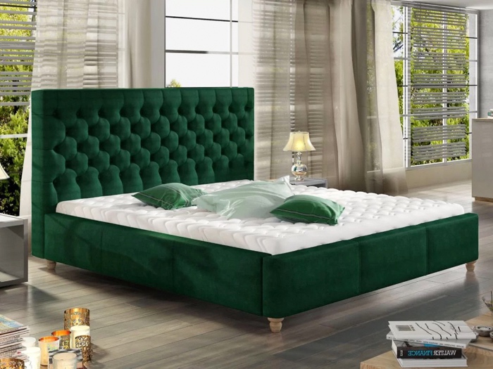Pat tapitat dimensiune totala 222 x 155 cm, tablie inalta 130 cm model tip Chesterfiled, somiera metalica rabatabila, lada pentru depozitare, tapiterie material plusat. Salteaua nu este inclusa in pret. La comanda se poate realiza si fara somiera, suportul pentru saltea fiind drept, din PAL nemelaminat, sustinut de un sistem tip fagure, foarte rezistent. Patul tapitat Kaan imbina confortul cu rafinamentul intr-un design special ce va aduce unicitate dormitorului matrim