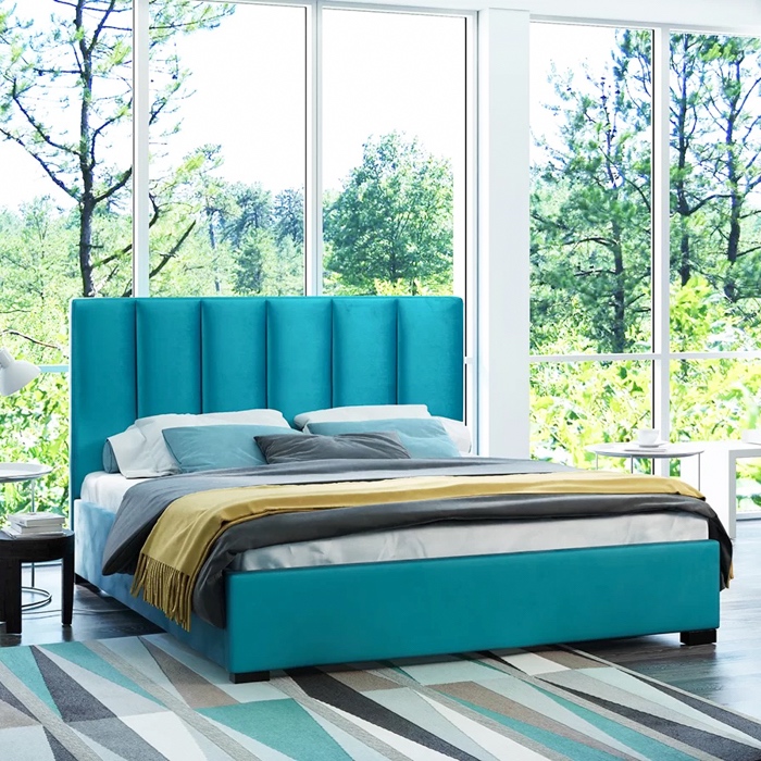 Pat tapitat in stofa catifelata cu dimensiunea totala de 217 x 155 cm, somiera metalica rabatabila si lada pentru depozitare, cadru pat din lemn si PAL de 18 mm. La comanda se poate realiza si fara somiera, suportul pentru saltea fiind drept, din PAL nemelaminat, sustinut de un sistem tip fagure, foarte rezistent. Salteaua nu este inclusa in pret. Creat intr-un design distins si modern, patul ENIS reprezinta un must-have pentru orice dormitor matrimonial cu stil. Ta