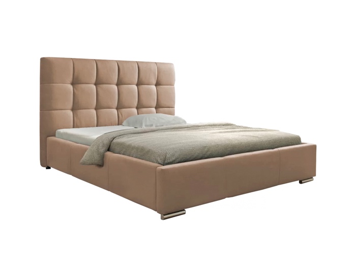 Pat matrimonial cu tablie inalta tip nasturi, tapiterie material plusat, structura lemn si PAL, lada pentru depozitare, picioare crom. La comanda se poate realiza si fara somiera, suportul pentru saltea fiind drept, din PAL nemelaminat, sustinut de un sistem tip fagure, foarte rezistent. Naturaletea, simplitatea si functionalitatea sunt principalele calitati ale acestui pat destinat dormitoarelor matrimoniale. Elementul principal al acestui pat il reprezinta tablia inal