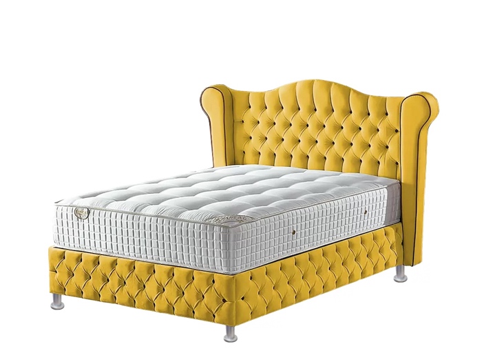 Pat Matrimonial, cu Lada de Depozitare, pentru Saltea de 180x200cm, Tapitat Galben, Catifea - model GLAMOUR - cu Somiera Rabatabila