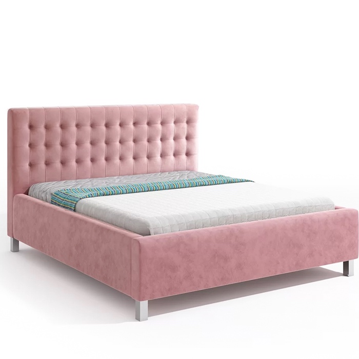 Pat Matrimonial, cu Lada de Depozitare, pentru Saltea de 180x200cm, Tapitat, Stofa Roz - model IRIS - cu Somiera Rabatabila