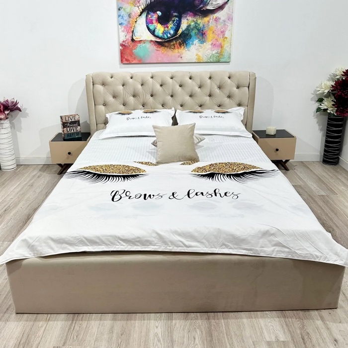 Pat tapitat cu tablie stil Chesterfield din material plusat cu nasturi de sticla, somiera fixa, cadru rezistent realizat din lemn si PAL, pentru saltea de 140 x 200 cm. Acest pat tapitat, cu tablie in stil Chesterfield, este o alegere ideala pentru un dormitor elegant si luxuriant. Tapiteria din material plusat in nuanta calda de crem, impreuna cu nasturii de sticla, adauga un plus de rafinament si stil. Cadrul rezistent al patului, realizat din lemn si PAL, asigura d